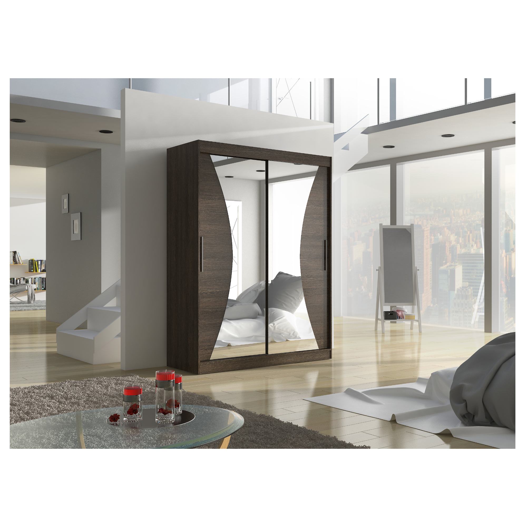 Disponuje posuvnými dveřmi s hliníkovými vodicími lištami pro pohodlné otevírání, které zároveň šetří místo. Dveře skříně jsou doplněny zrcadlovou plochou, jež usnadní vaše přípravy při ranním shonu.