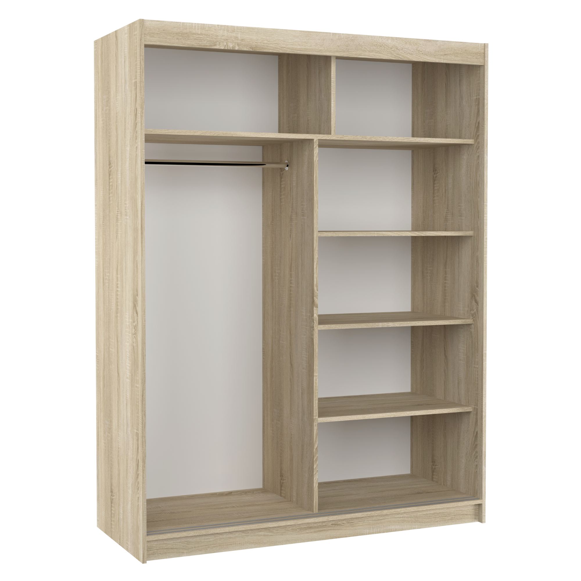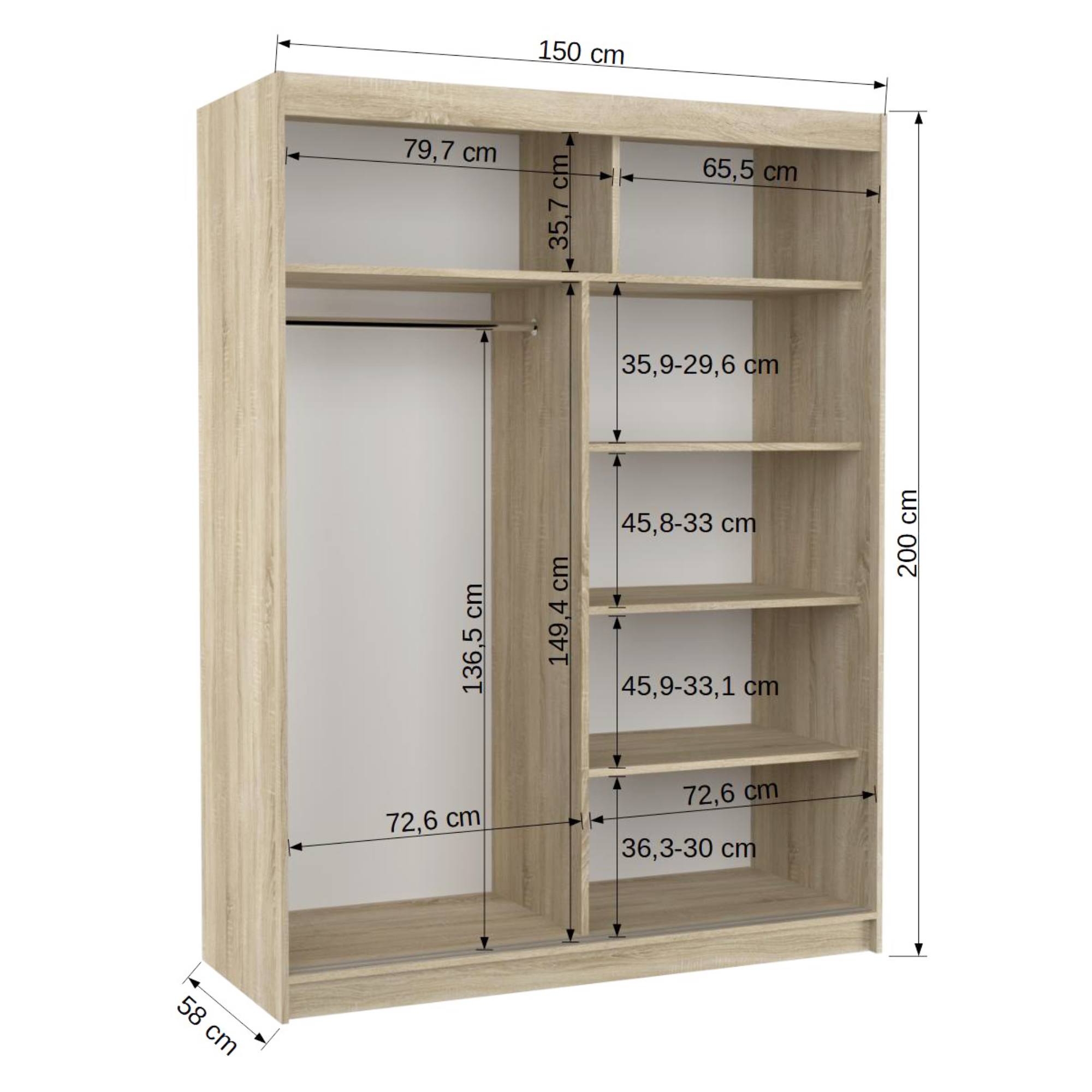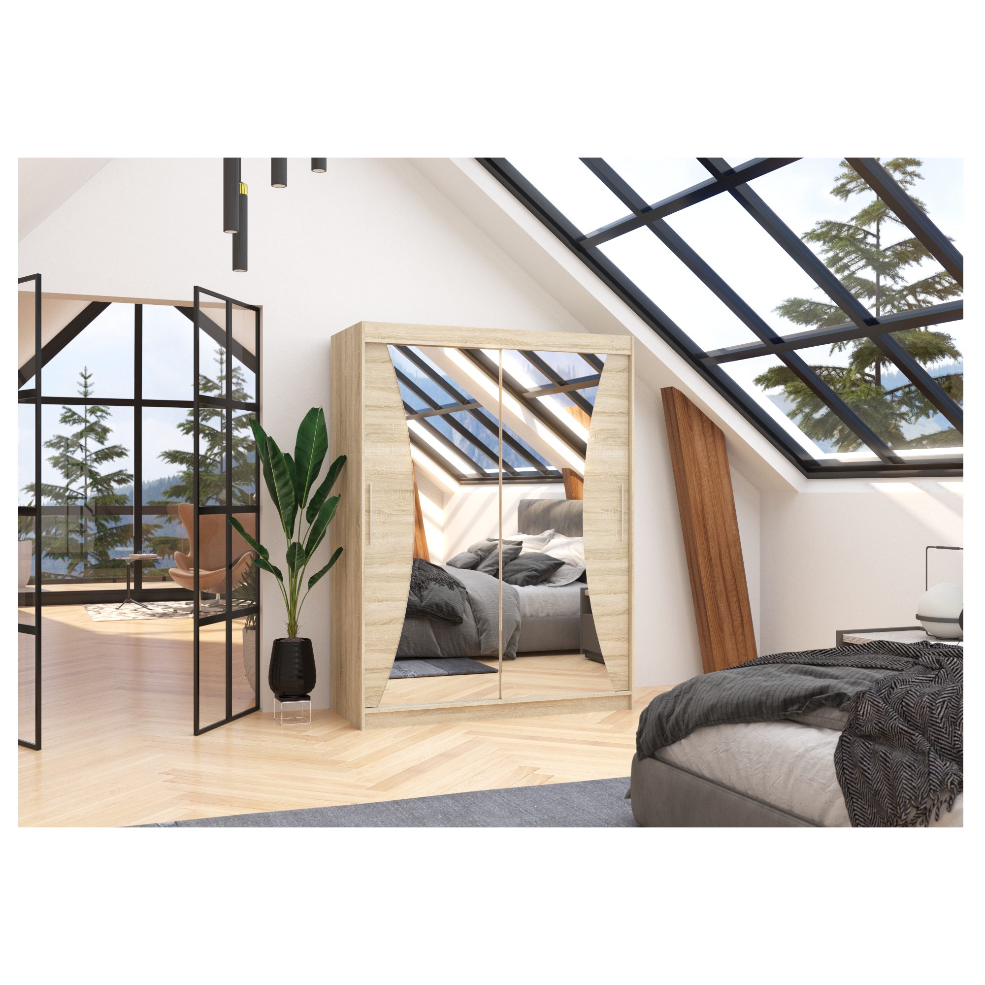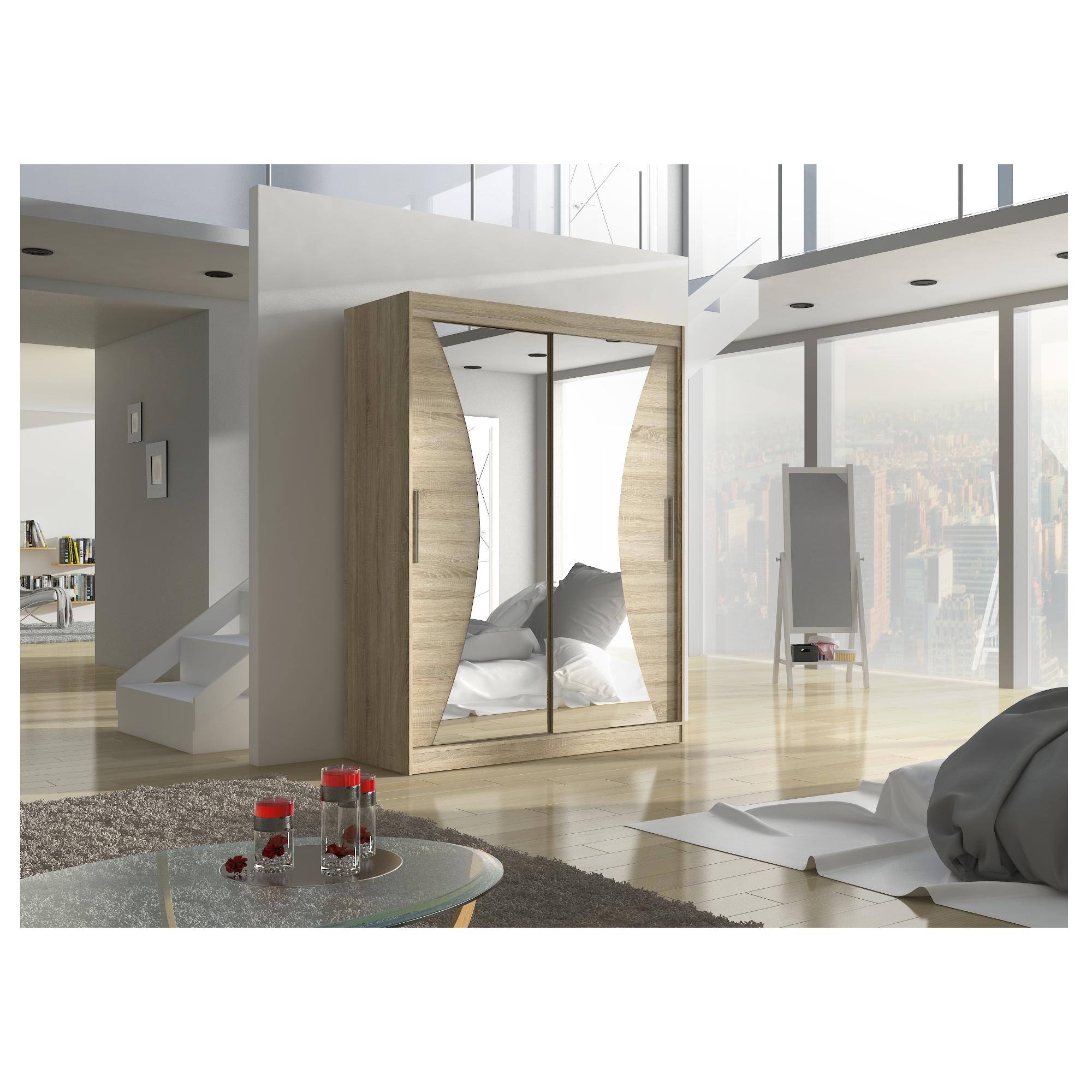 Disponuje posuvnými dveřmi s hliníkovými vodicími lištami pro pohodlné otevírání, které zároveň šetří místo. Dveře skříně jsou doplněny zrcadlovou plochou, jež usnadní vaše přípravy při ranním shonu.