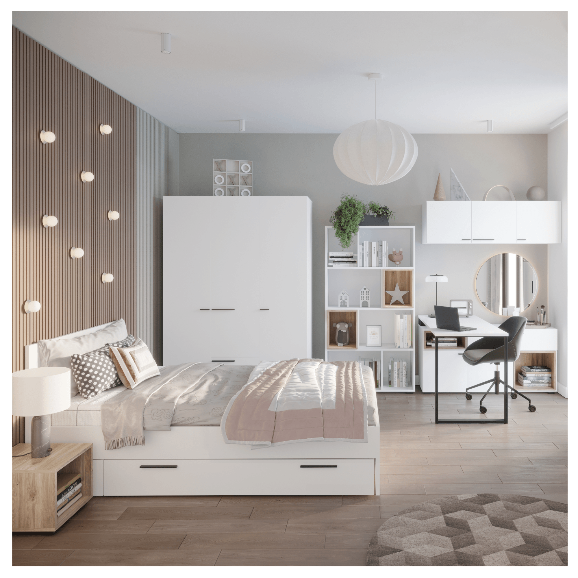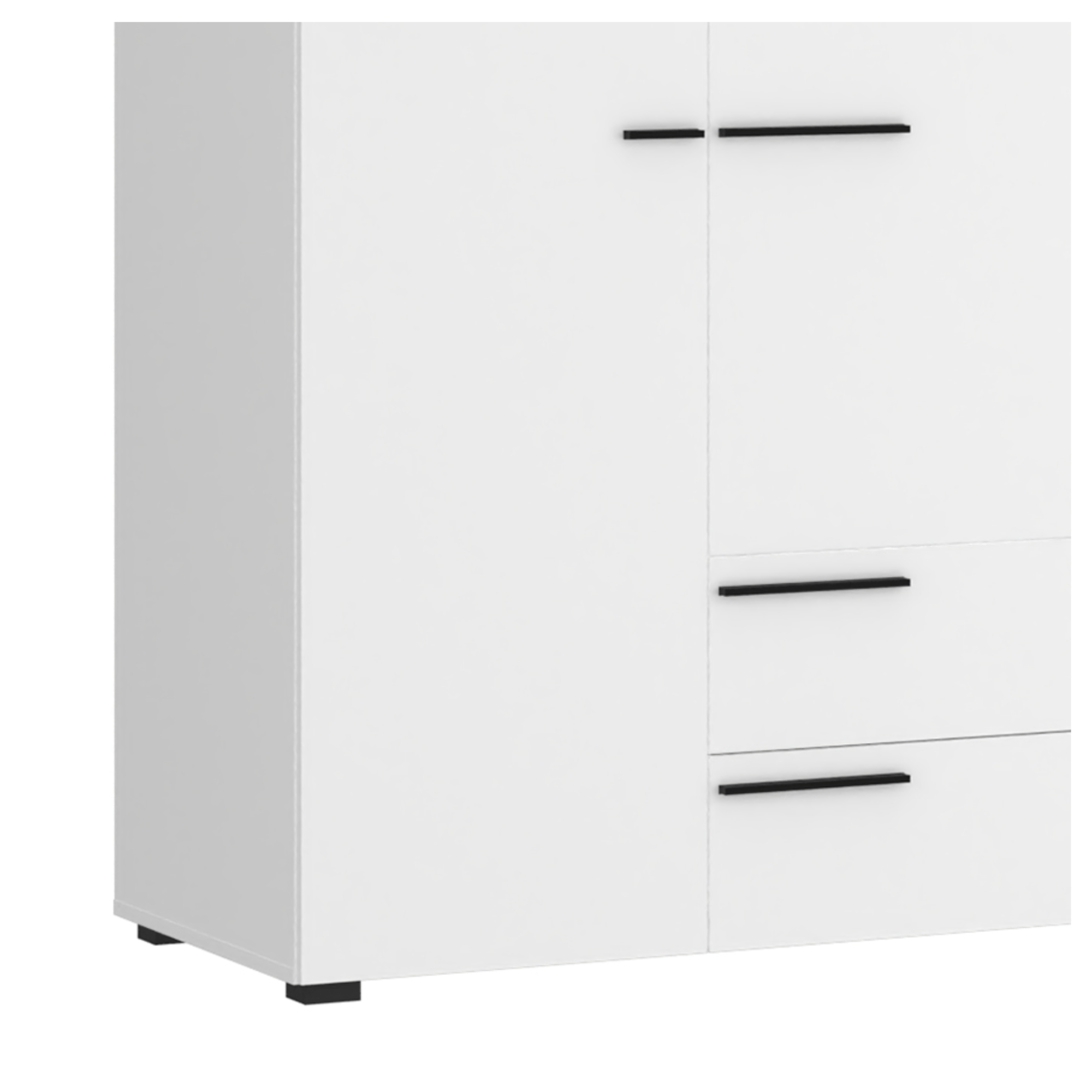 Šatní skříň MARLOW v klasické bílé barvě s kontrastními úchyty vytváří atraktivní minimalistický vzhled a dokonale tak doplní moderní interiéry o stylový úložný prostor.