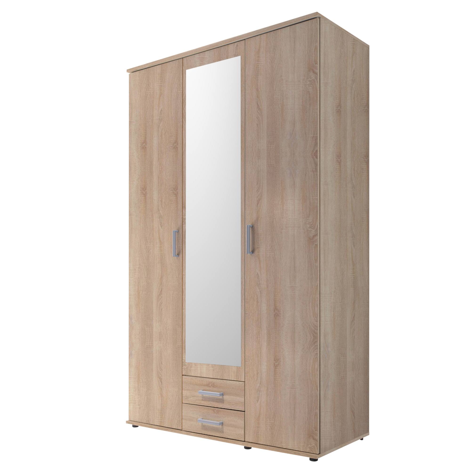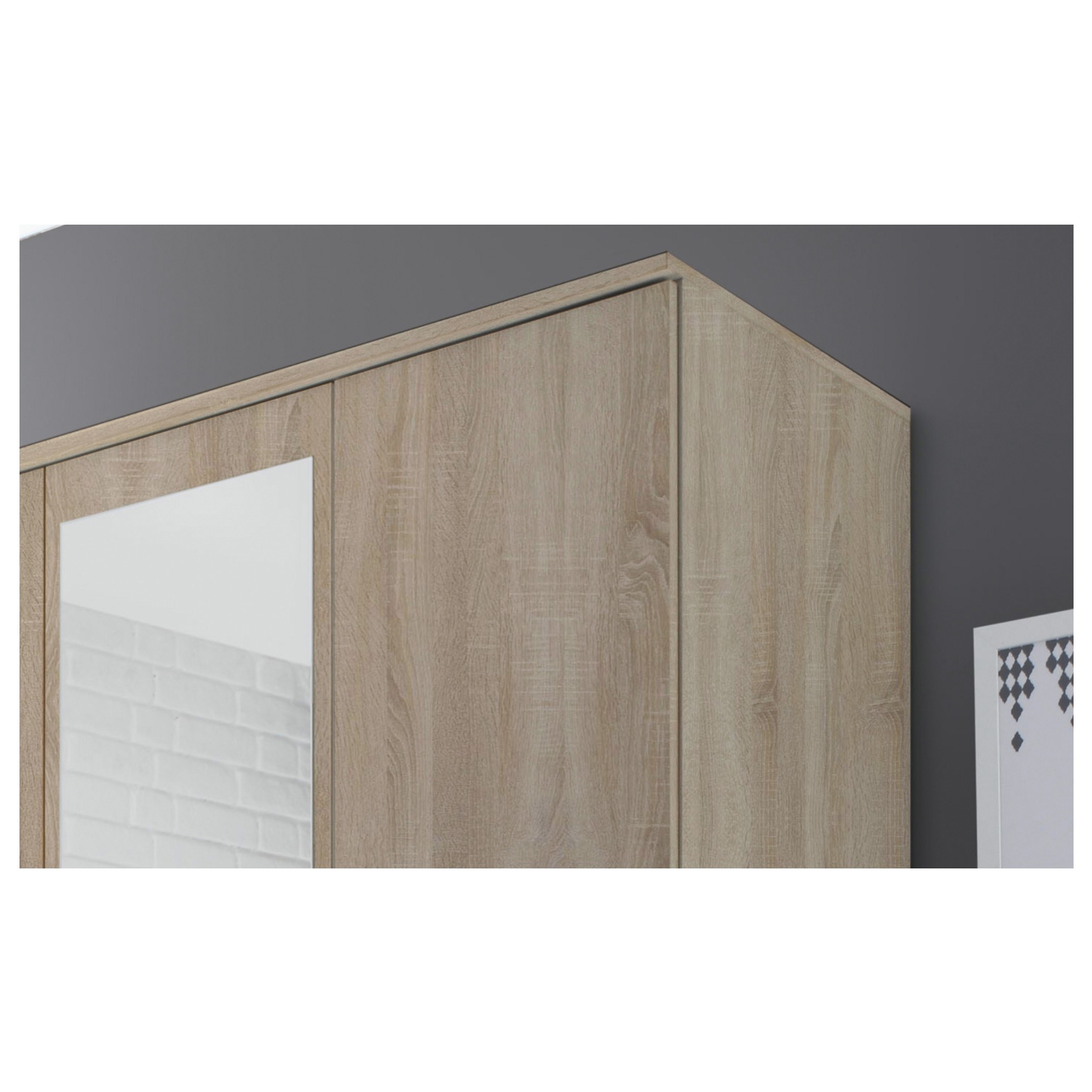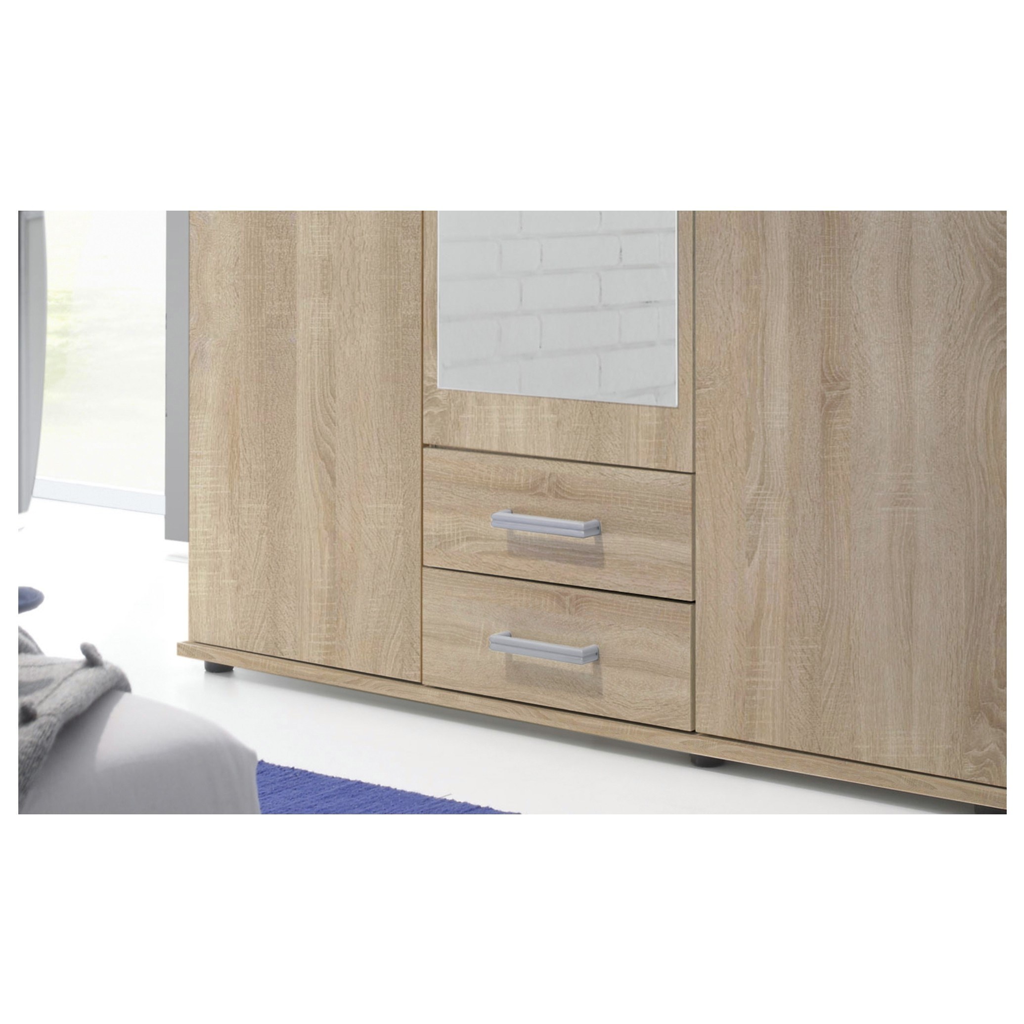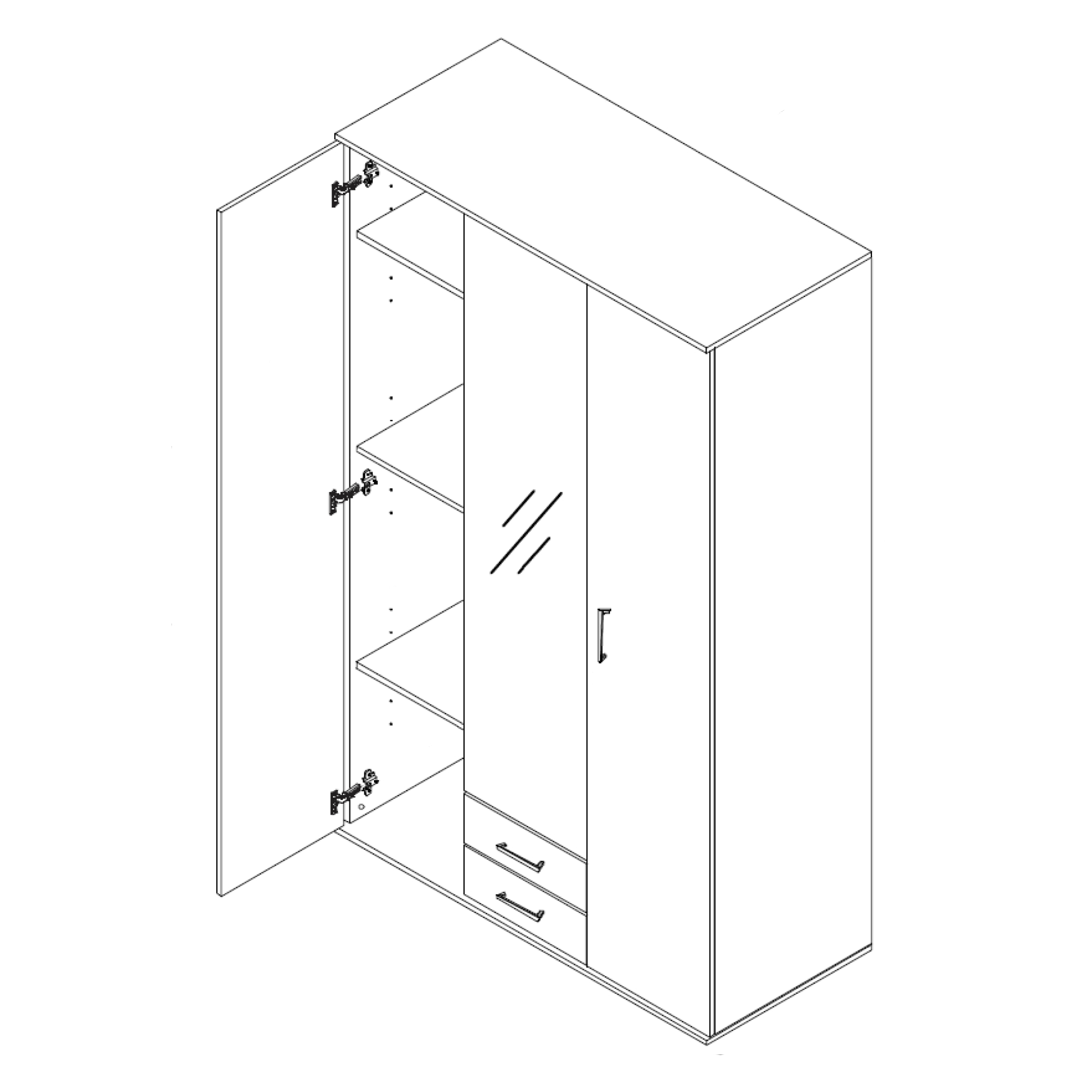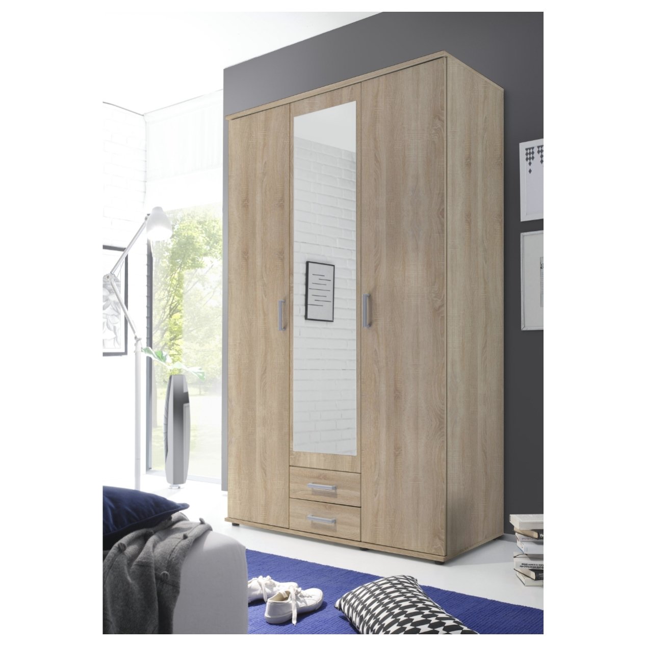 Praktická šatní skříň OTMAR v moderním designu se díky svým rozměrům hodí i do menších ložnic. Určitě oceníte zrcadlo z vnější strany dveří skříně, které se nachází přímo uprostřed a pod ním se v dolní části zároveň nachází 2 zásuvky. Úložný prostor o hloubce 53 cm je uvnitř systematicky rozčleněn – v jednom oddíle se nachází šatní tyč a nad ní vložená police, v druhém oddíle jsou vloženy celkem 3 police. Decentní úchytky usnadňují otevírání. Skříň je vyrobena z laminovaného dřevěného materiálu, který je odolný a nenáročný na údržbu.