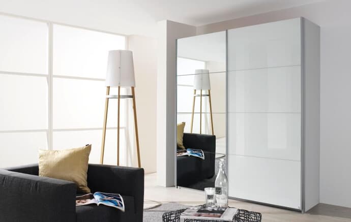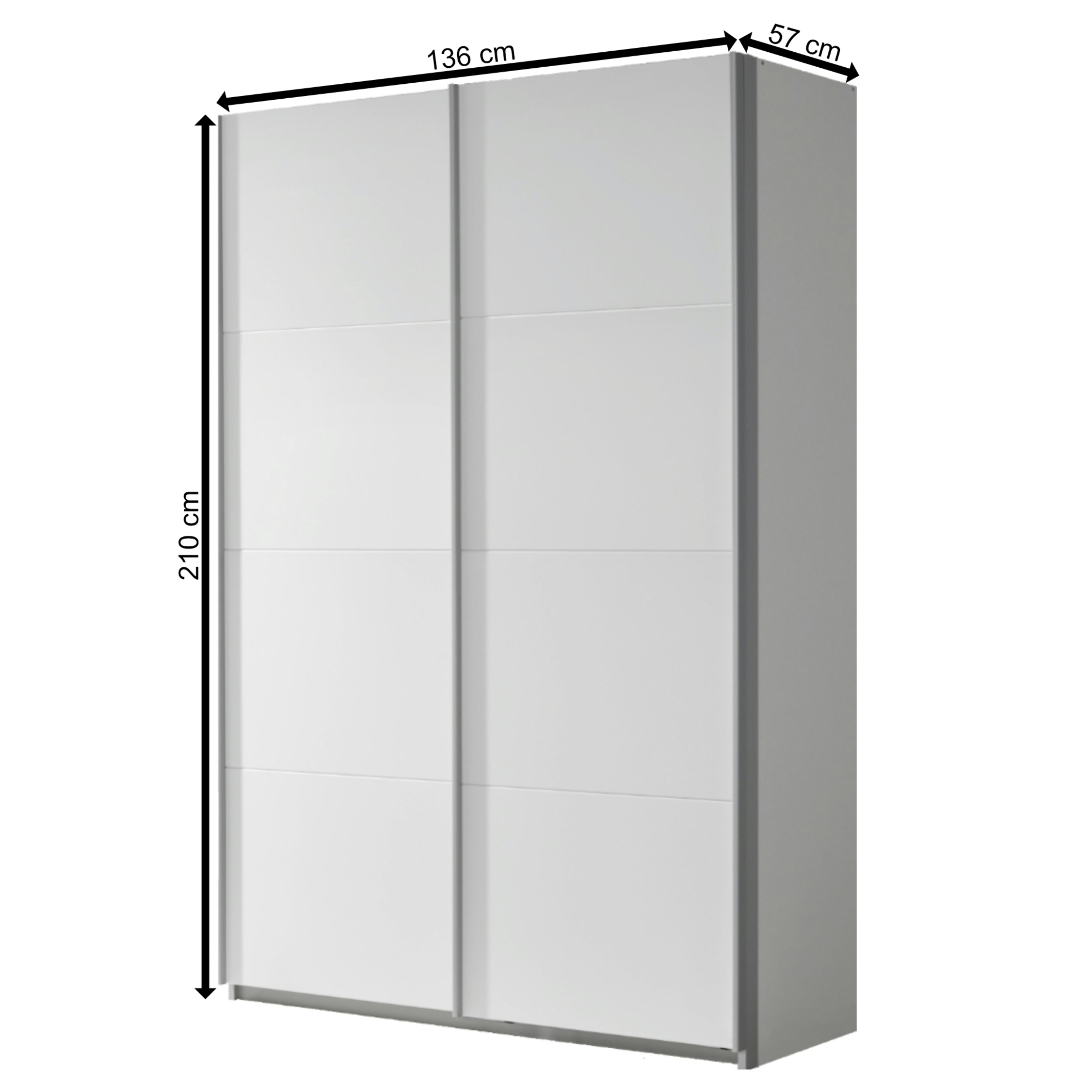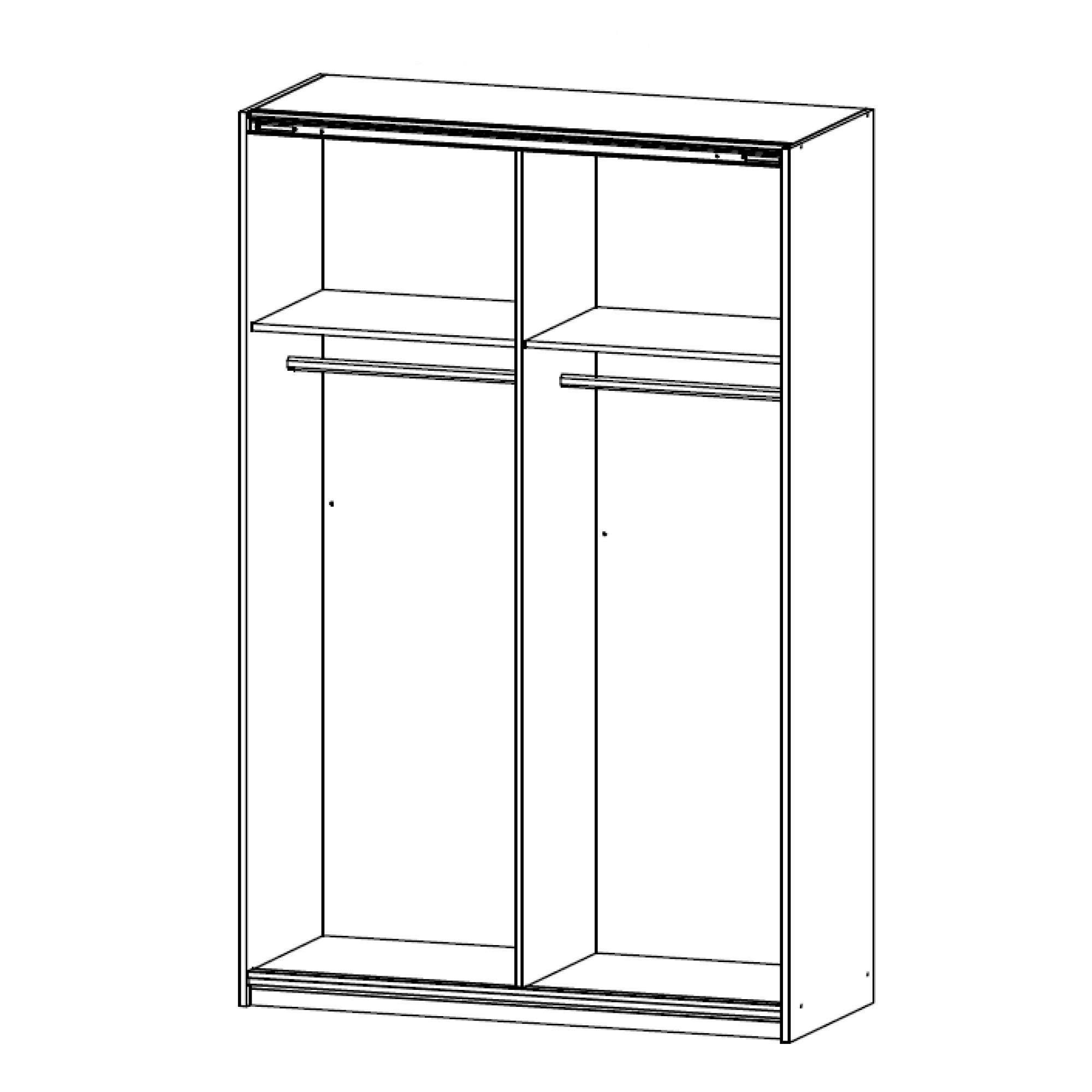 Moderní šatní skříň QUADRA disponuje 2 posuvnými dveřmi, které se neotvírají do prostoru a šetří tak spoustu cenného místa vně skříně. Prakticky řešené vnitřní vybavení skříně je členěno do 2 stejných bloků. V každém bloku se nachází 1 vložená police a 1 šatní tyč. Materiál jednoduše udržovatelné lamino. Na našich obchodních domech lze objednat různá barevná provedení.