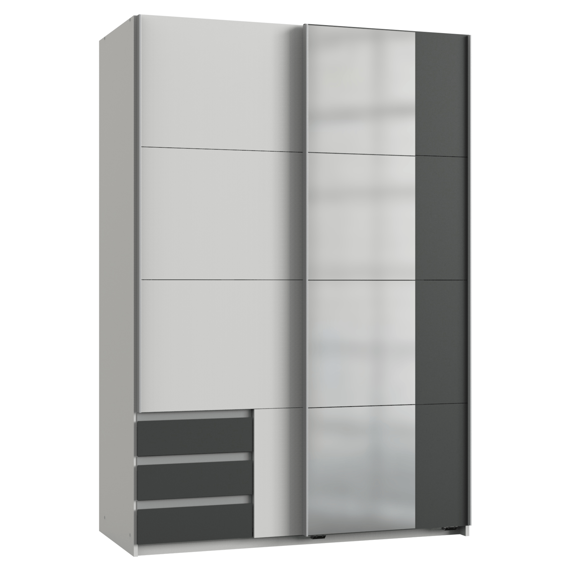 Šatní skříň se zrcadlem ERICA - grafitová/bílá, šířka 135 cm