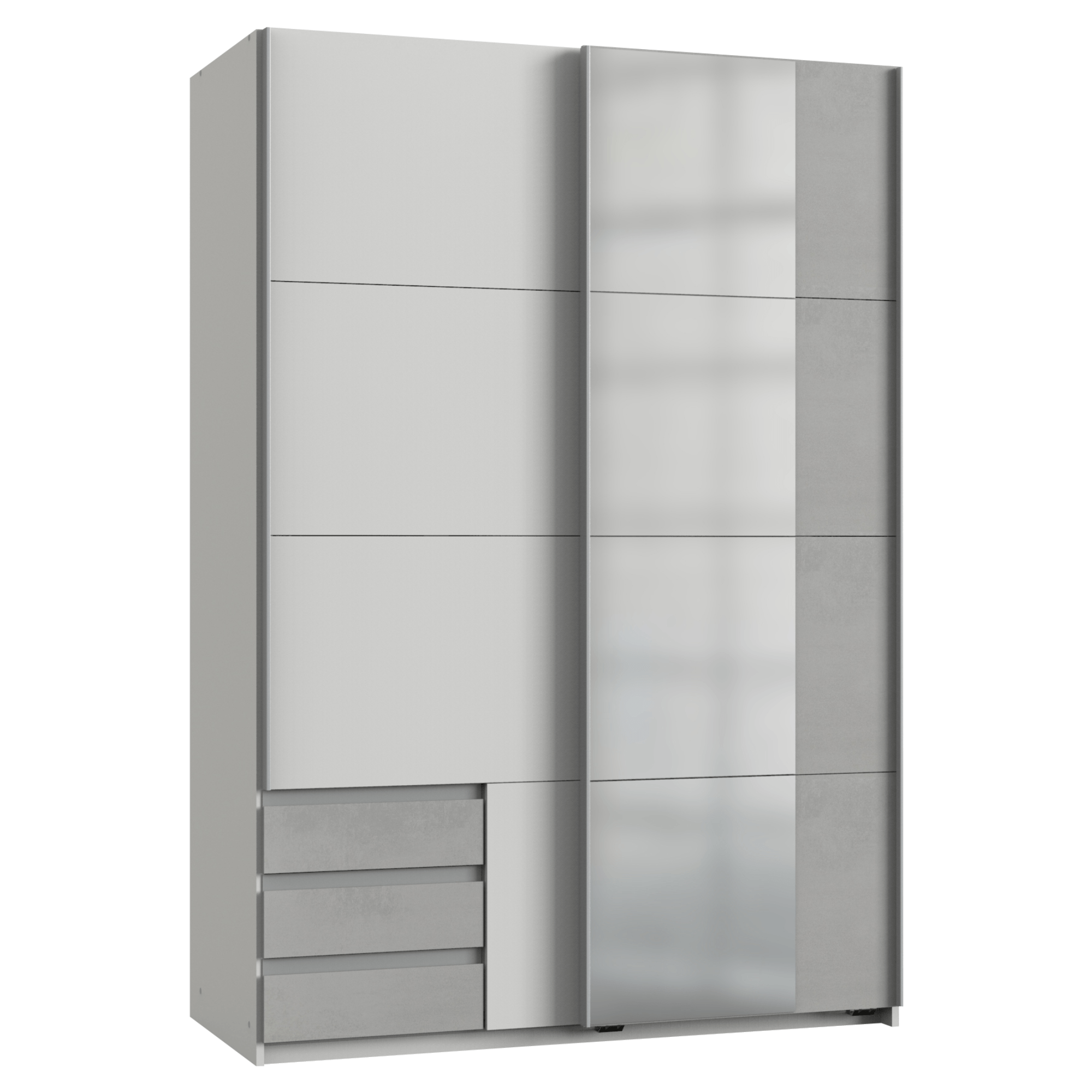 Šatní skříň se zrcadlem ERICA - šedá/bílá, šířka 135 cm