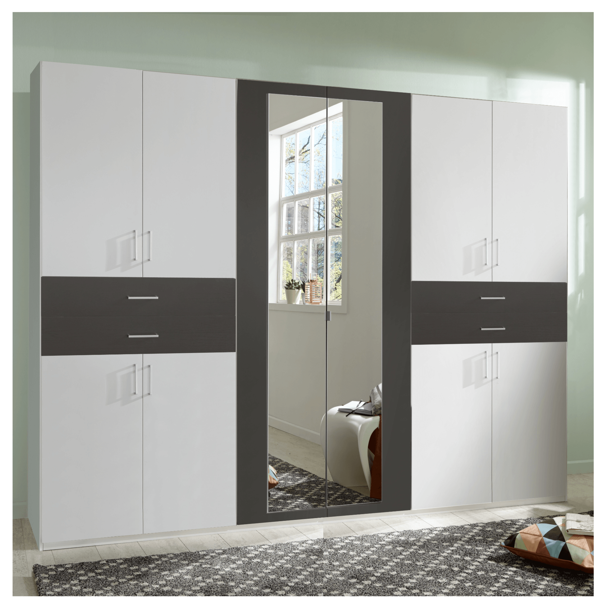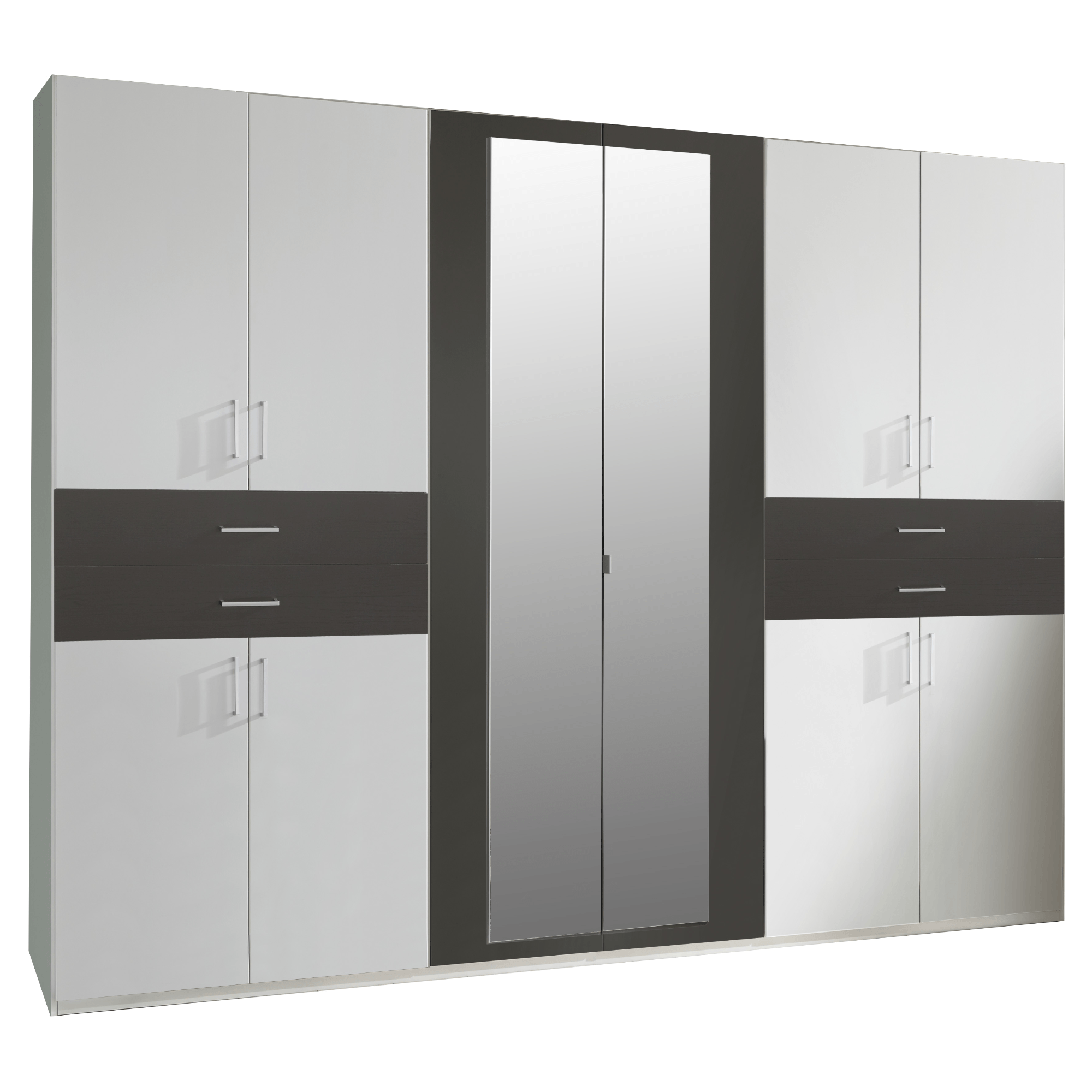 Šatní skříň se zrcadly TERENCE - bílá/grafitová