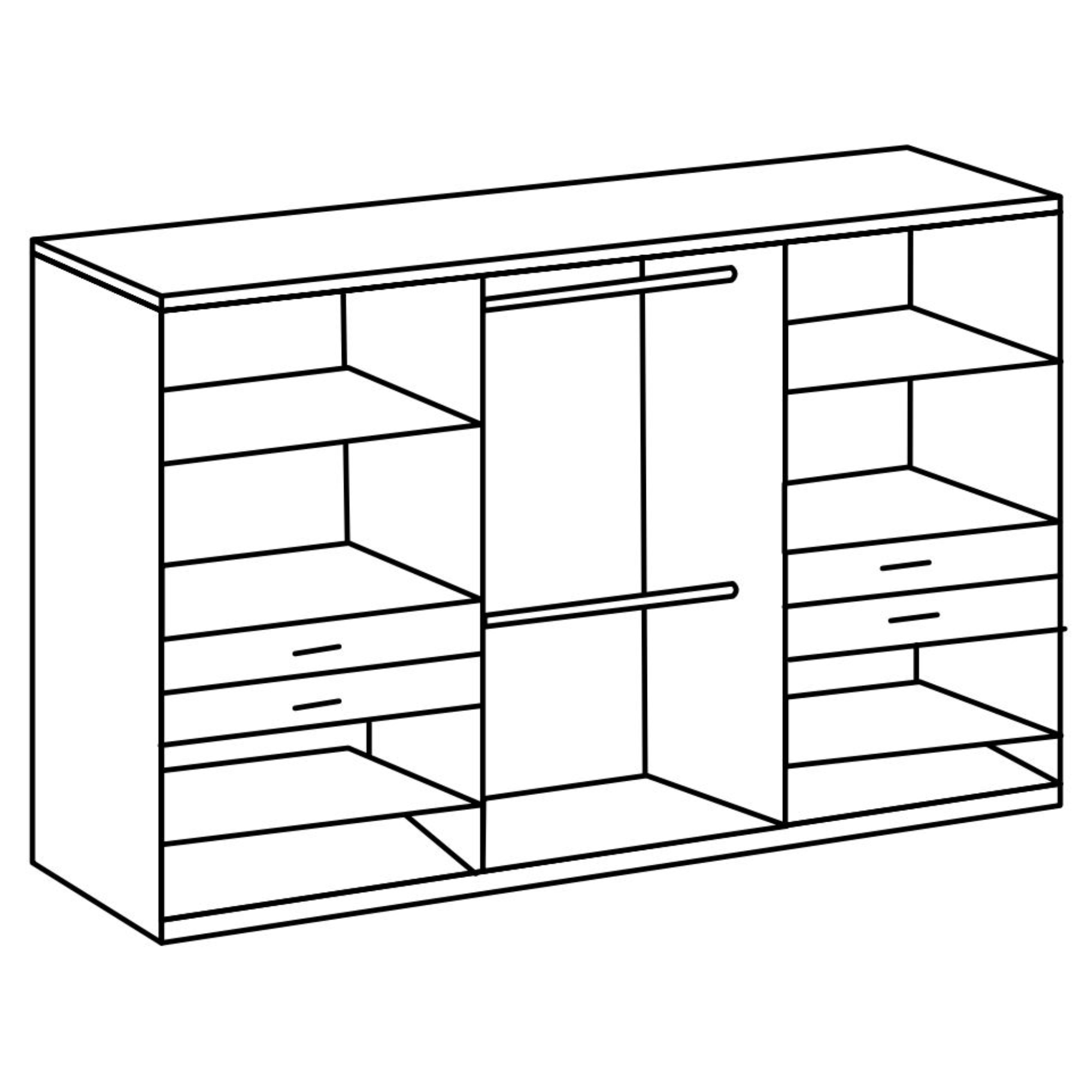 - 4 vložené police, 2 šatní tyče a 4 zásuvky