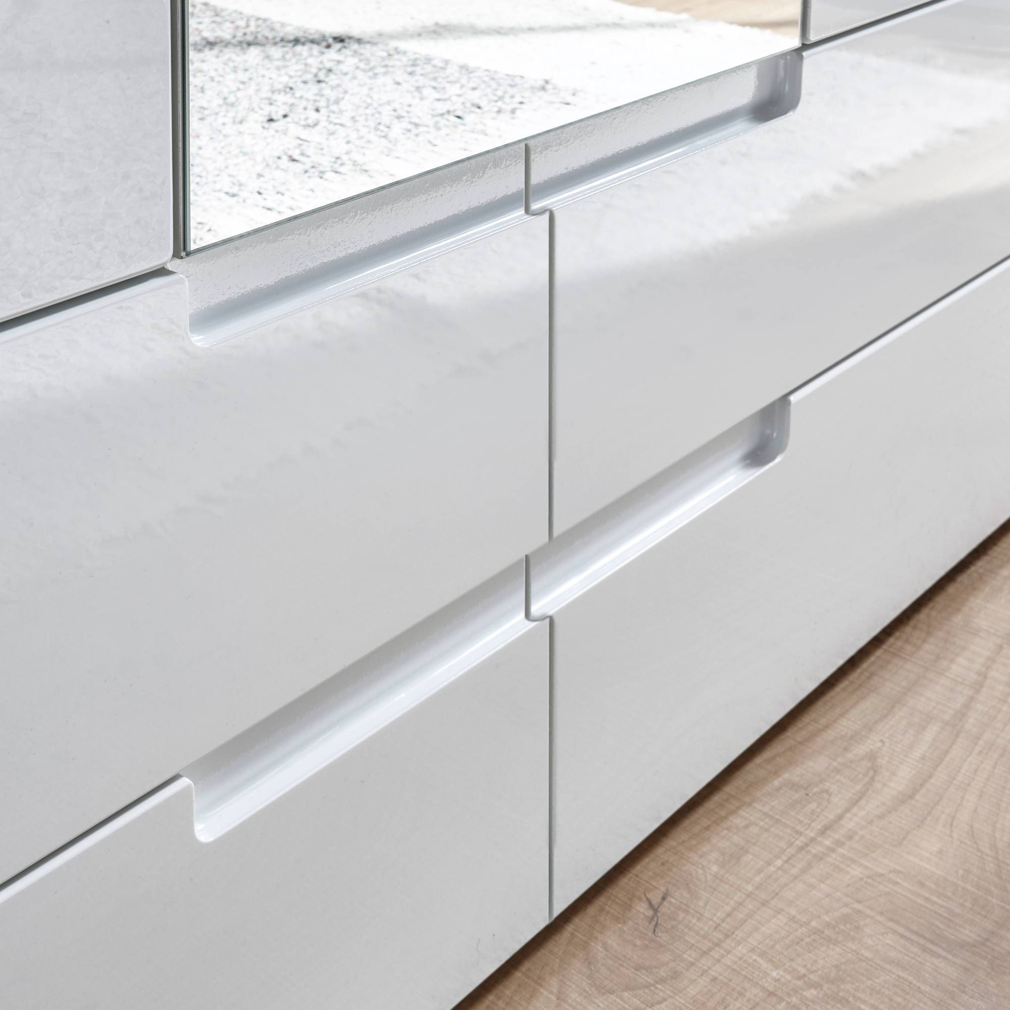 Šatní skříň TEAGAN 2 je tvořena v bílém vysokém lesku a díky tomu dodá vašemu interiéru na luxusu. Skříň je multifunkční, a proto se hodí do ložnice i šatny.