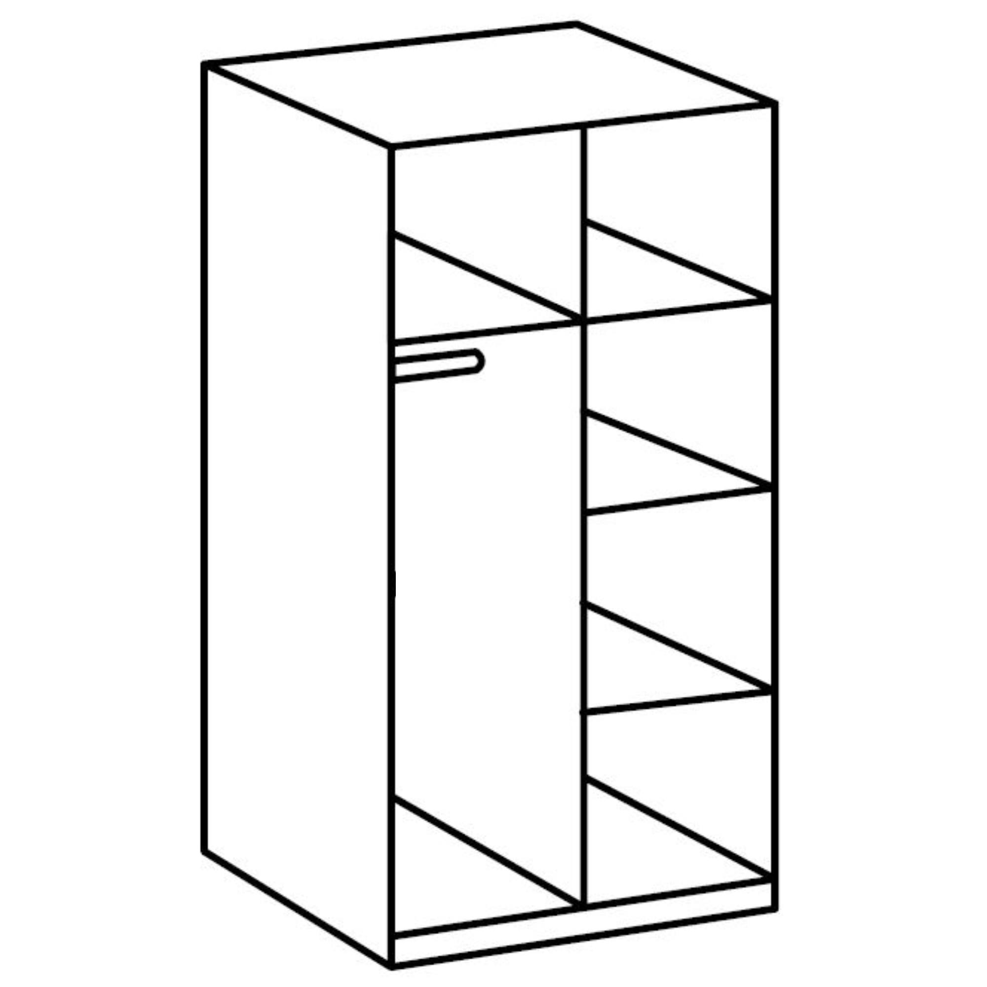 Skříň má 2 otočné dveře, za nimiž se nachází vnitřní vybavení sestaveno z 4 vložených polic a 1 šatní tyče. Decentní úchytky usnadňují otevírání jednotlivých částí skříně. Šatní skříň je vyrobena z laminovaného dřevěného materiálu, který je nenáročný na údržbu. Chcete mít ložnici sjednocenou do jednoho stylu? Podívejte se na další nábytek ze stejnojmenného nábytkového programu VANNES.