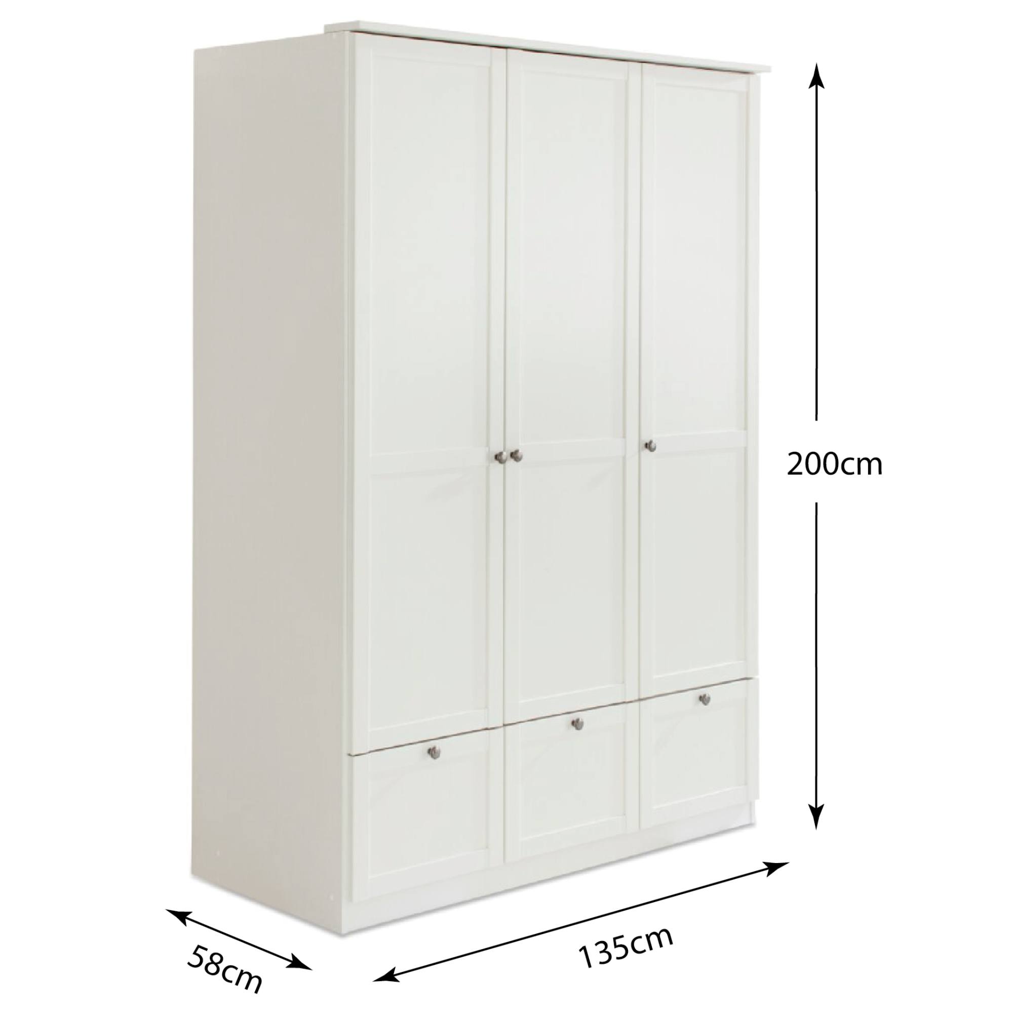 Šatní skříň VANNES - bílá, 3dvéřová, 3 zásuvky