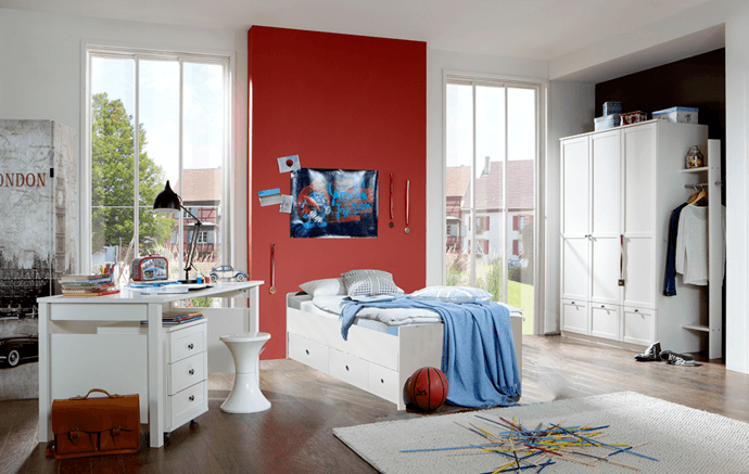 Šatní skříň VANNES představuje jednoduchý moderní styl v podobě bílé neutrální barvy. Díky svému praktickému designu se hodí jak do dětského, tak do studentského pokoje.