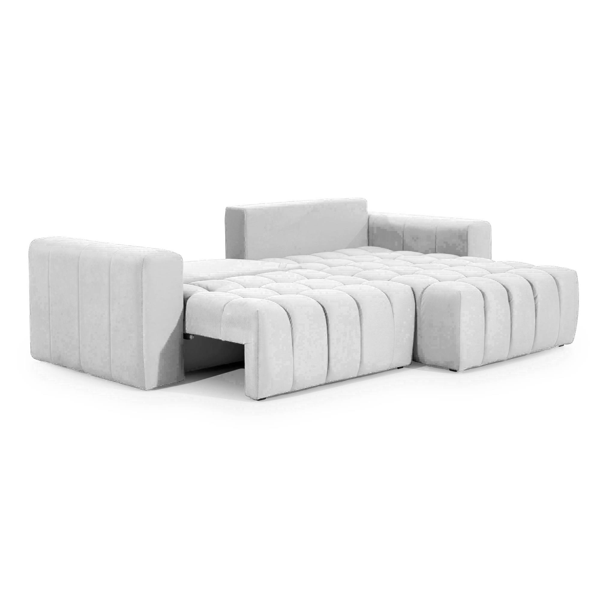 Svou velikostí krásně zapadne do nevelkých interiérů, ale slušet bude i prostornějším obývacím pokojům. Efektní prošívání na sedáku s pěnovým jádrem, velké zádové polštáře a široké područky nabízí nevídaný komfort. Velkou předností této sedačky je její potahová tkanina, jejíž vlastnosti ocení nejen rodiče malých dětí nebo milovníci zvířecích mazlíčků. Tkanina je pokryta speciální ochrannou hydrofobní vrstvou, která chrání před rychlým prosakováním kapalin. Gauč nabízí i další funkci, a tou je funkce příležitostného lůžka. Výsuvný sedák a sklápěcí záda poskytnou rovný povrch pro spaní. Pod sedákem je k dispozici větratelný úložný prostor, který můžete využít k uložení lůžkovin. Sedací souprava je velice variabilní i co se umístění týče. Originální tkaninou jsou potažena i záda sedačky, takže souprava může stát i volně v místnosti.
