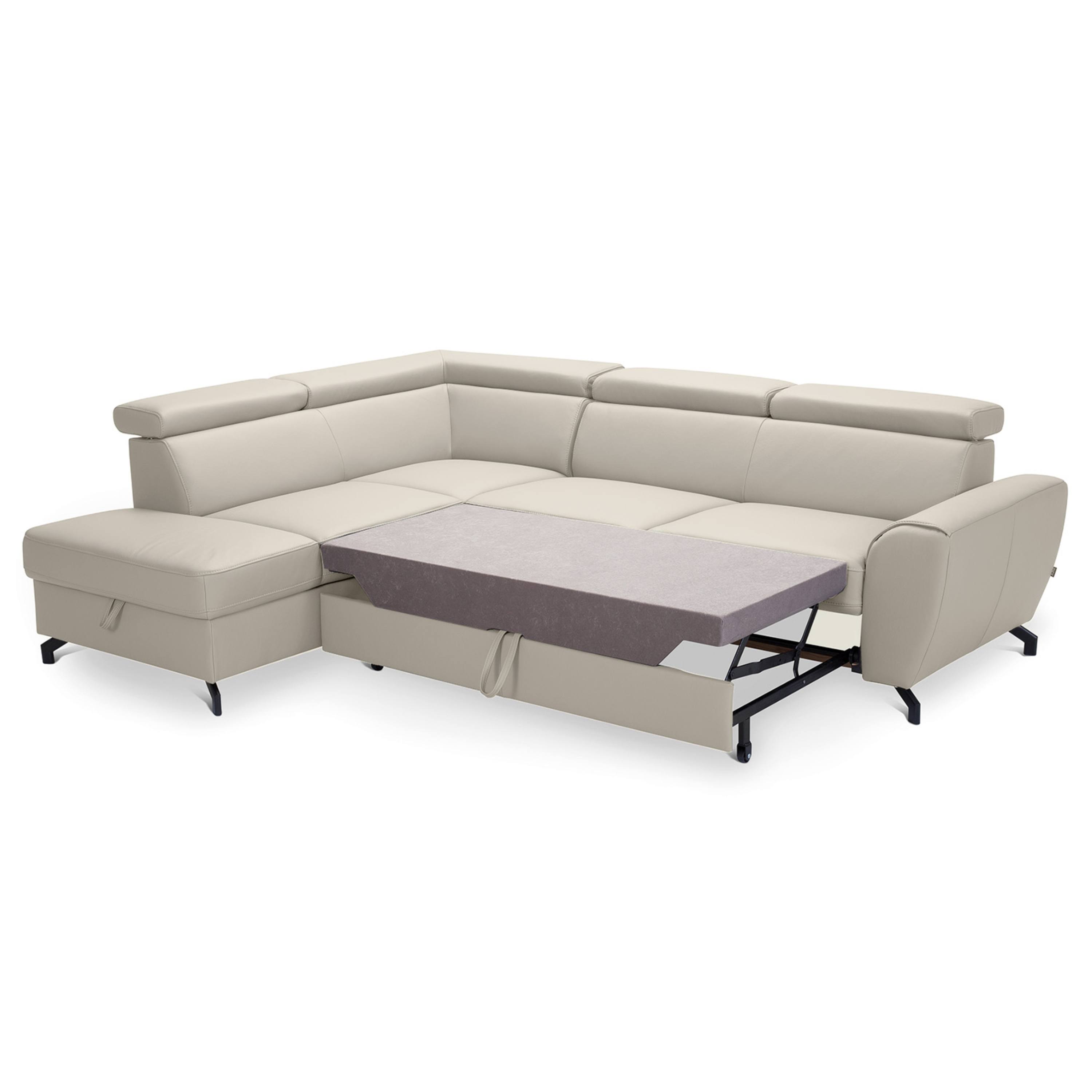 Maximální komfort je dosažen použitím kombinace pěny a vlnových pružin. Souprava je pak potažená na dotek příjemnou kůží. Už tak nadstandartní pohodlí je ještě navýšeno o nastavitelné opěrky na hlavu. Souprava rovněž nabízí funkci rozložení na lůžko pro příležitostné přespání. Doplněna je navíc o praktický úložný prostor na lůžkoviny. Stabilitu celé soupravy pak zajišťují kovové nohy.