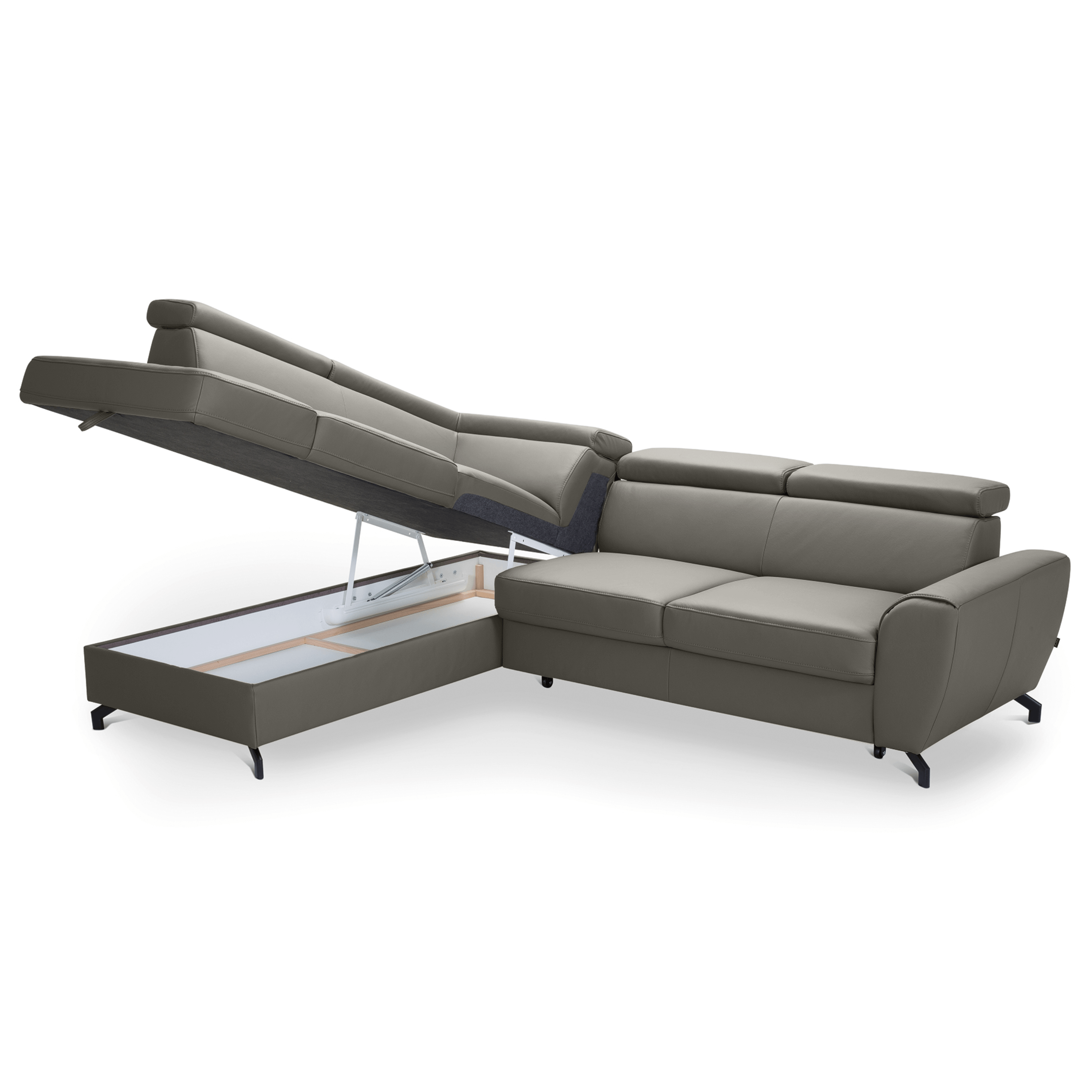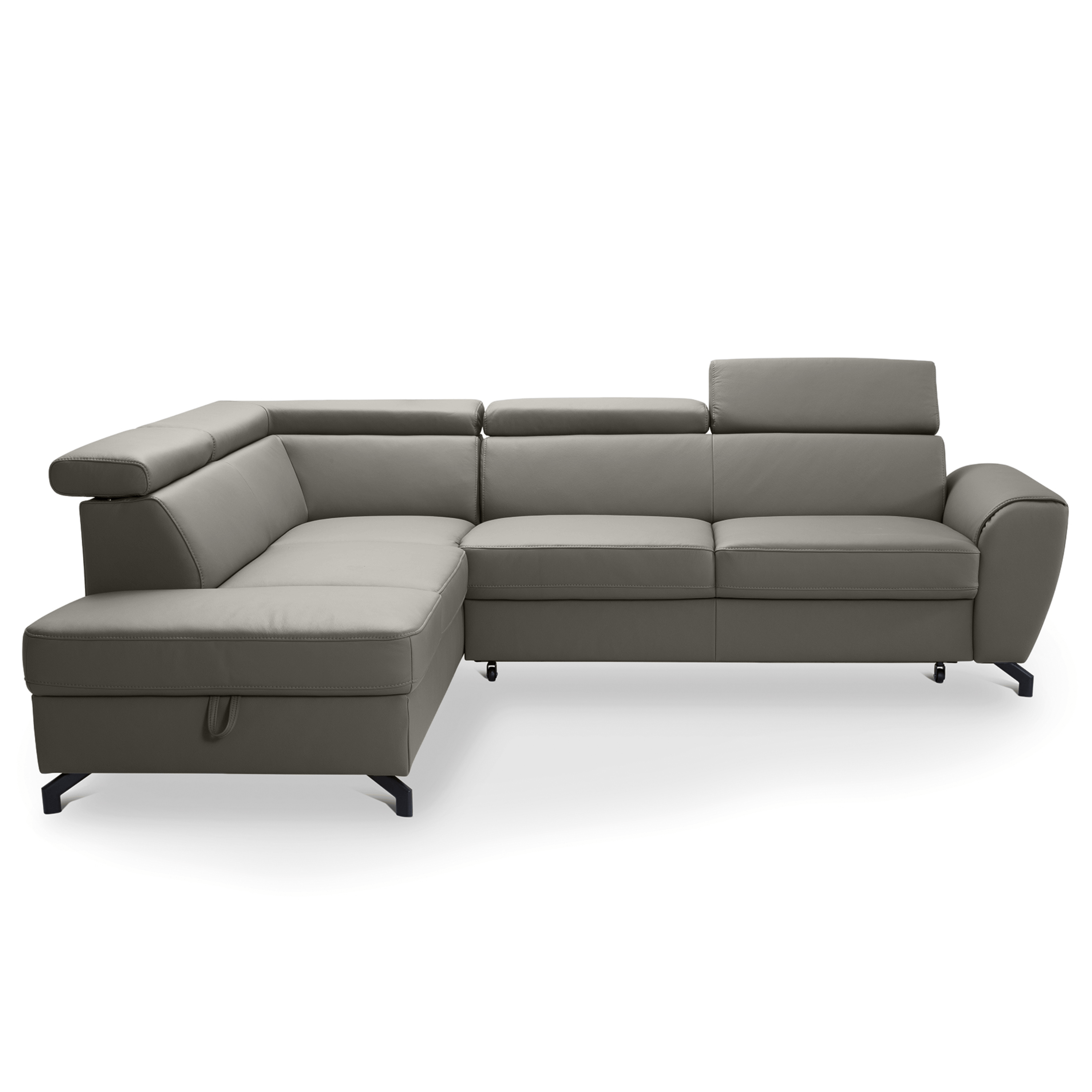 Maximální komfort je dosažen použitím kombinace pěny a vlnových pružin. Souprava je pak potažená na dotek příjemnou kůží. Už tak nadstandartní pohodlí je ještě navýšeno o nastavitelné opěrky na hlavu. Souprava rovněž nabízí funkci rozložení na lůžko pro příležitostné přespání. Doplněna je navíc o praktický úložný prostor na lůžkoviny. Stabilitu celé soupravy pak zajišťují kovové nohy.