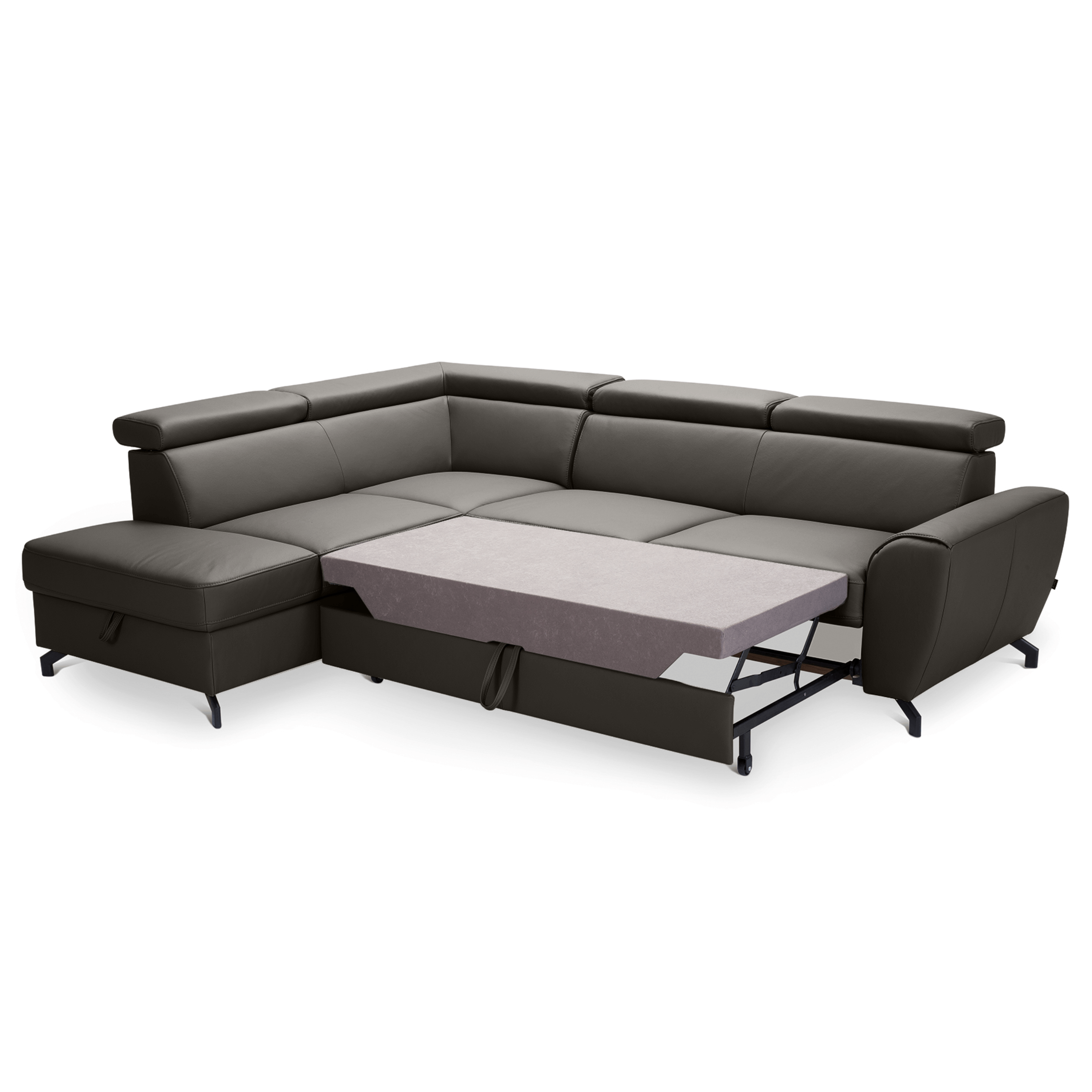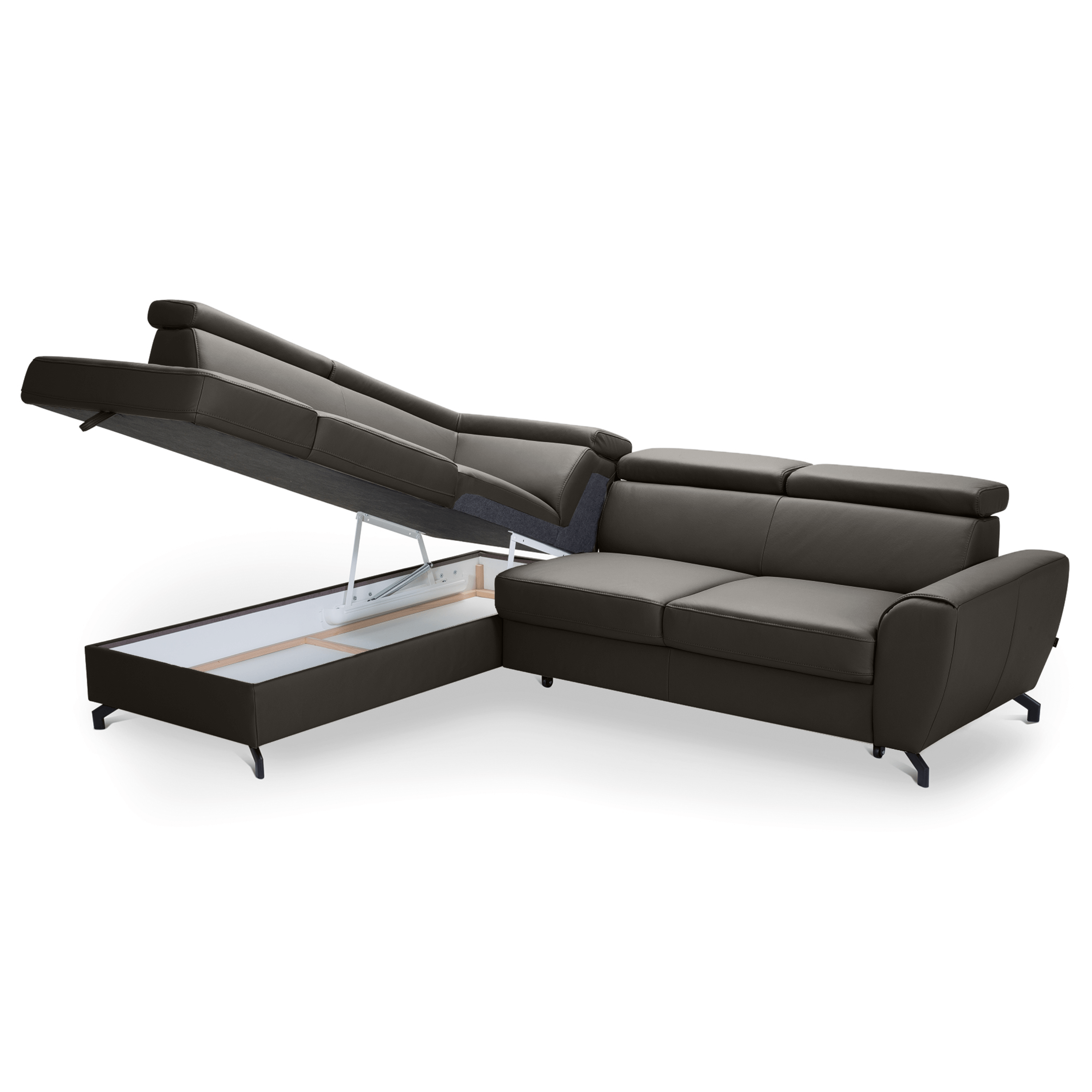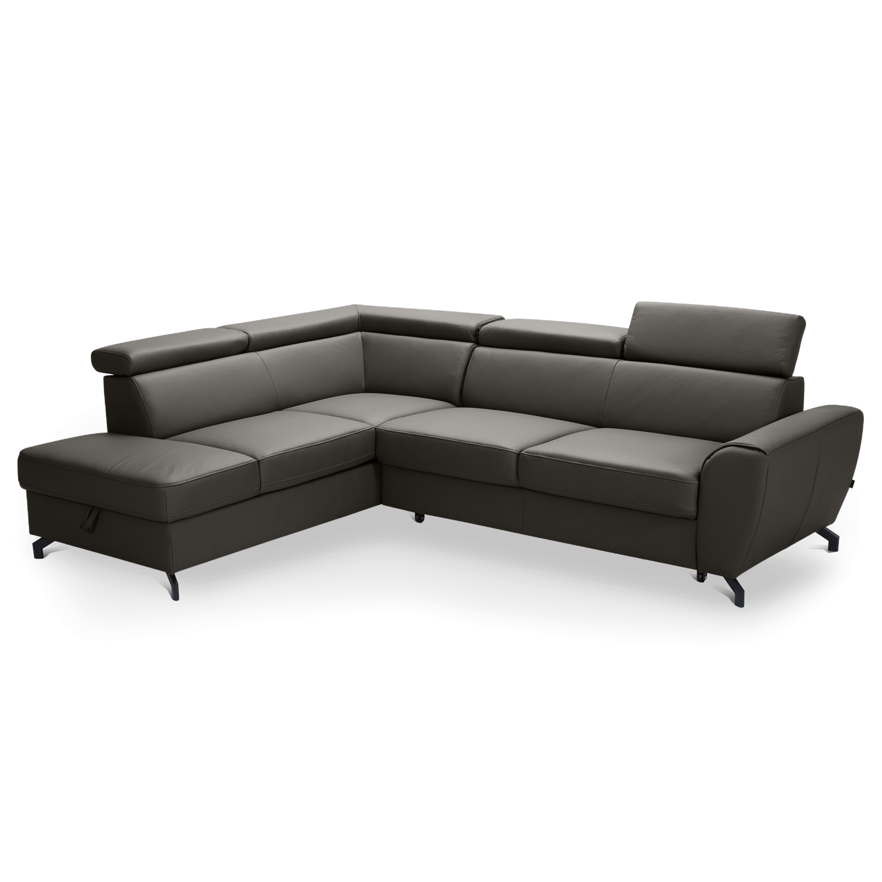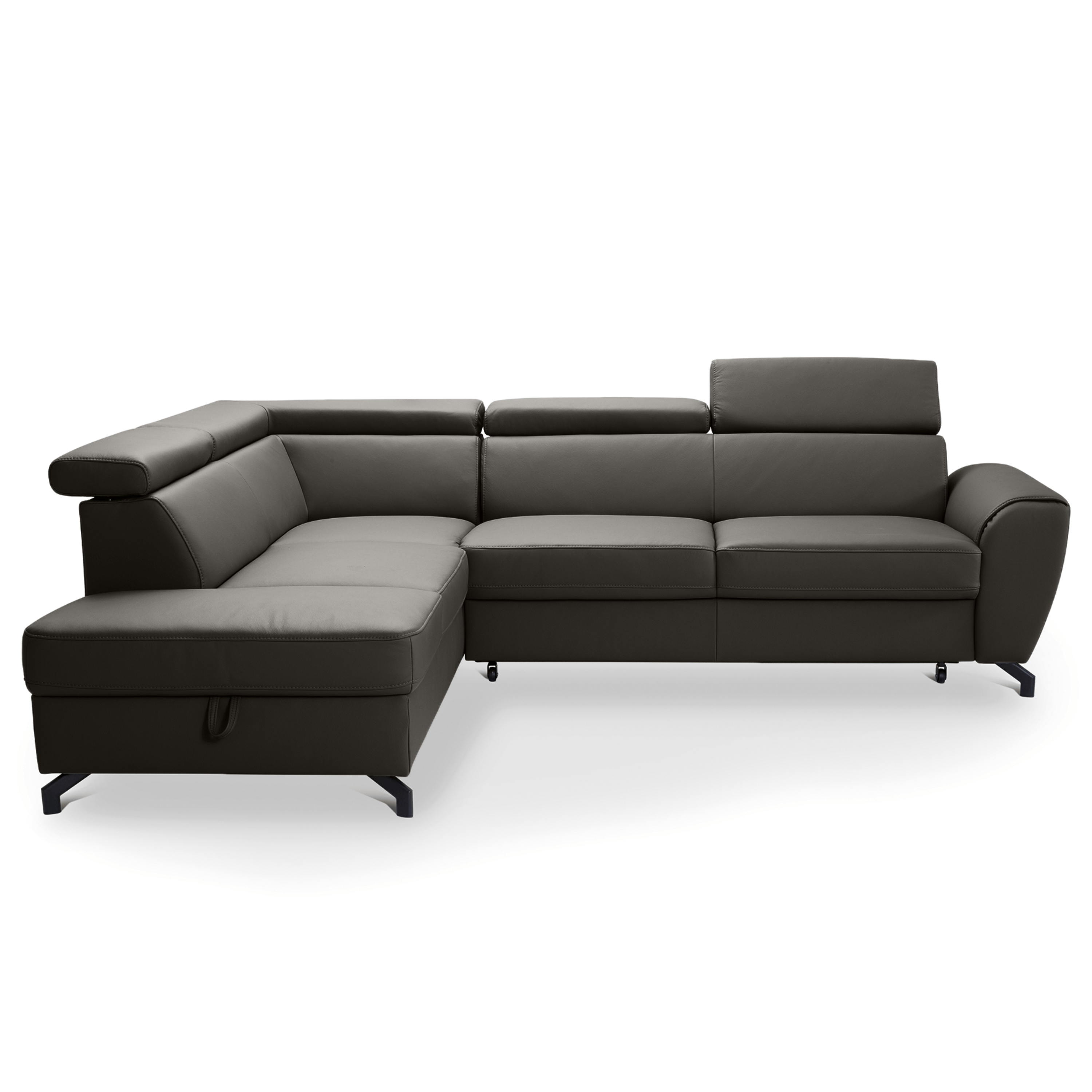 Maximální komfort je dosažen použitím kombinace pěny a vlnových pružin. Souprava je pak potažená na dotek příjemnou kůží. Už tak nadstandartní pohodlí je ještě navýšeno o nastavitelné opěrky na hlavu. Souprava rovněž nabízí funkci rozložení na lůžko pro příležitostné přespání. Doplněna je navíc o praktický úložný prostor na lůžkoviny. Stabilitu celé soupravy pak zajišťují kovové nohy.