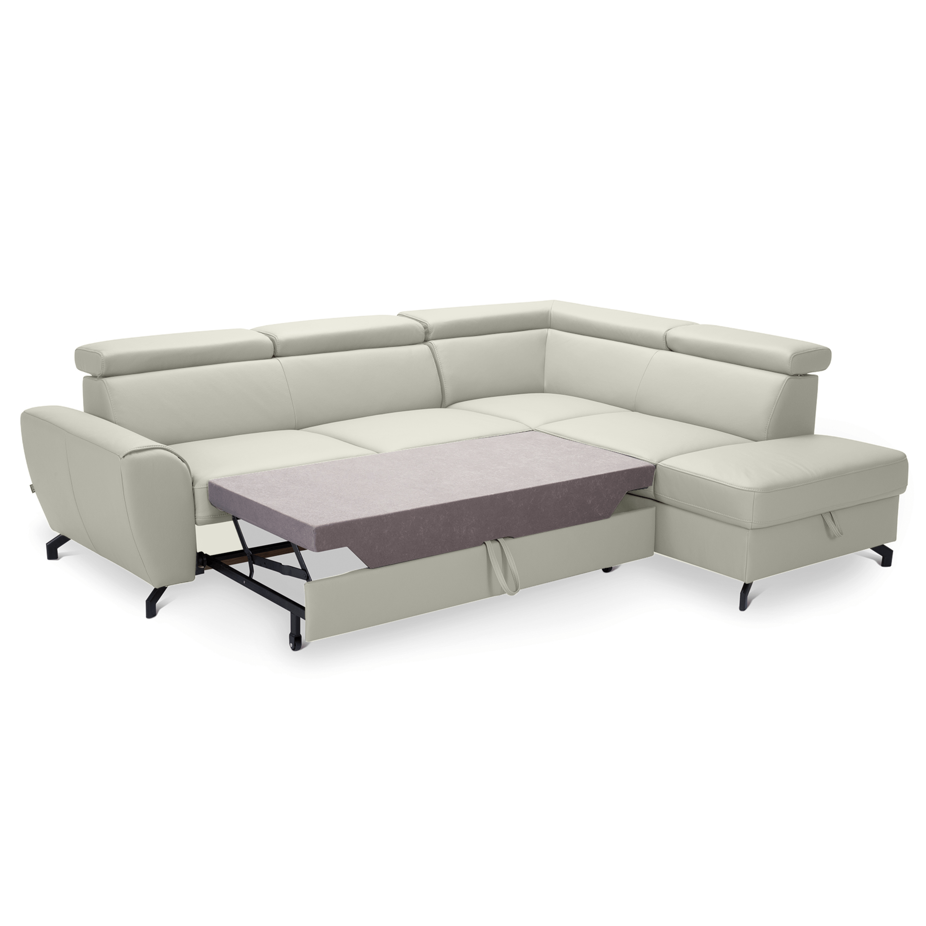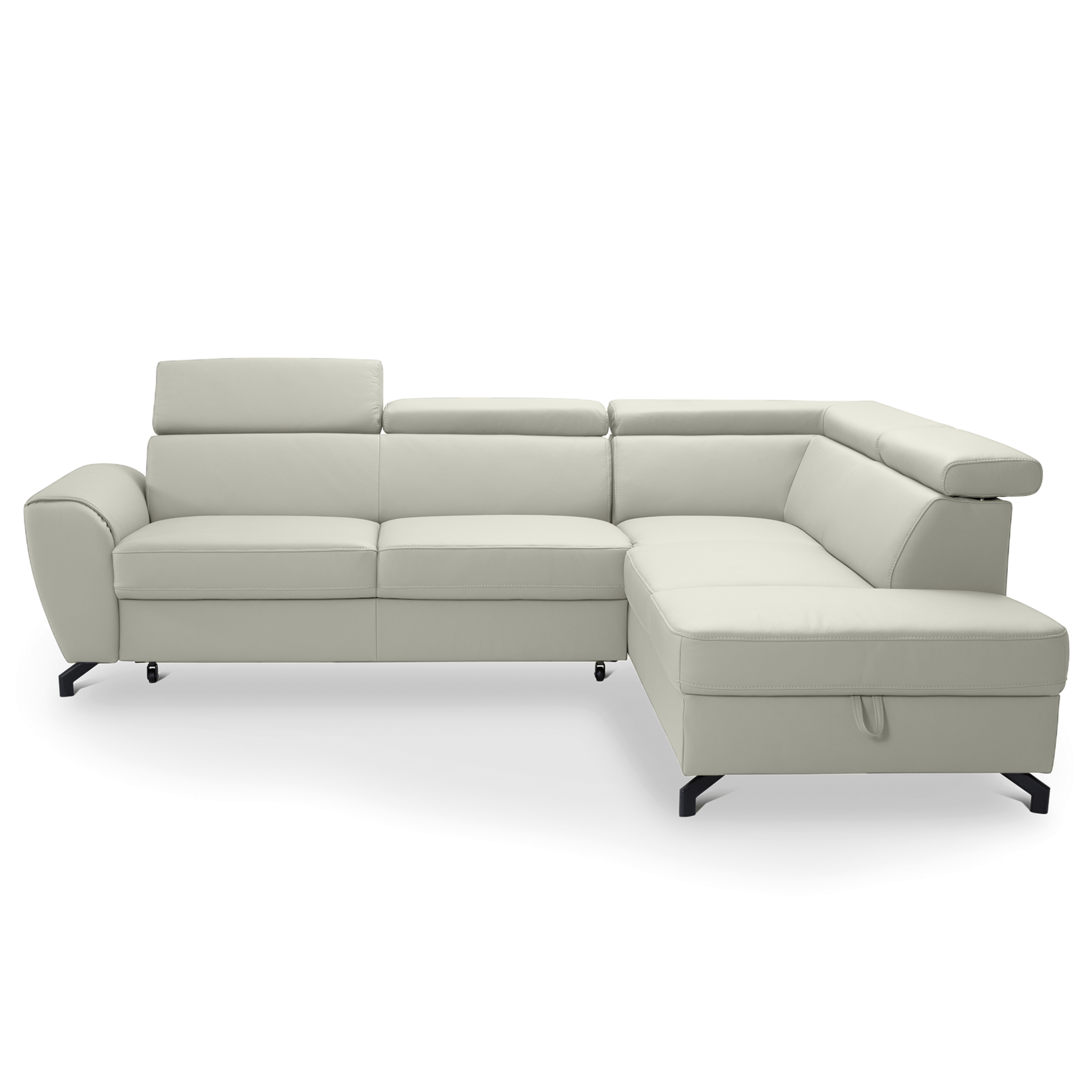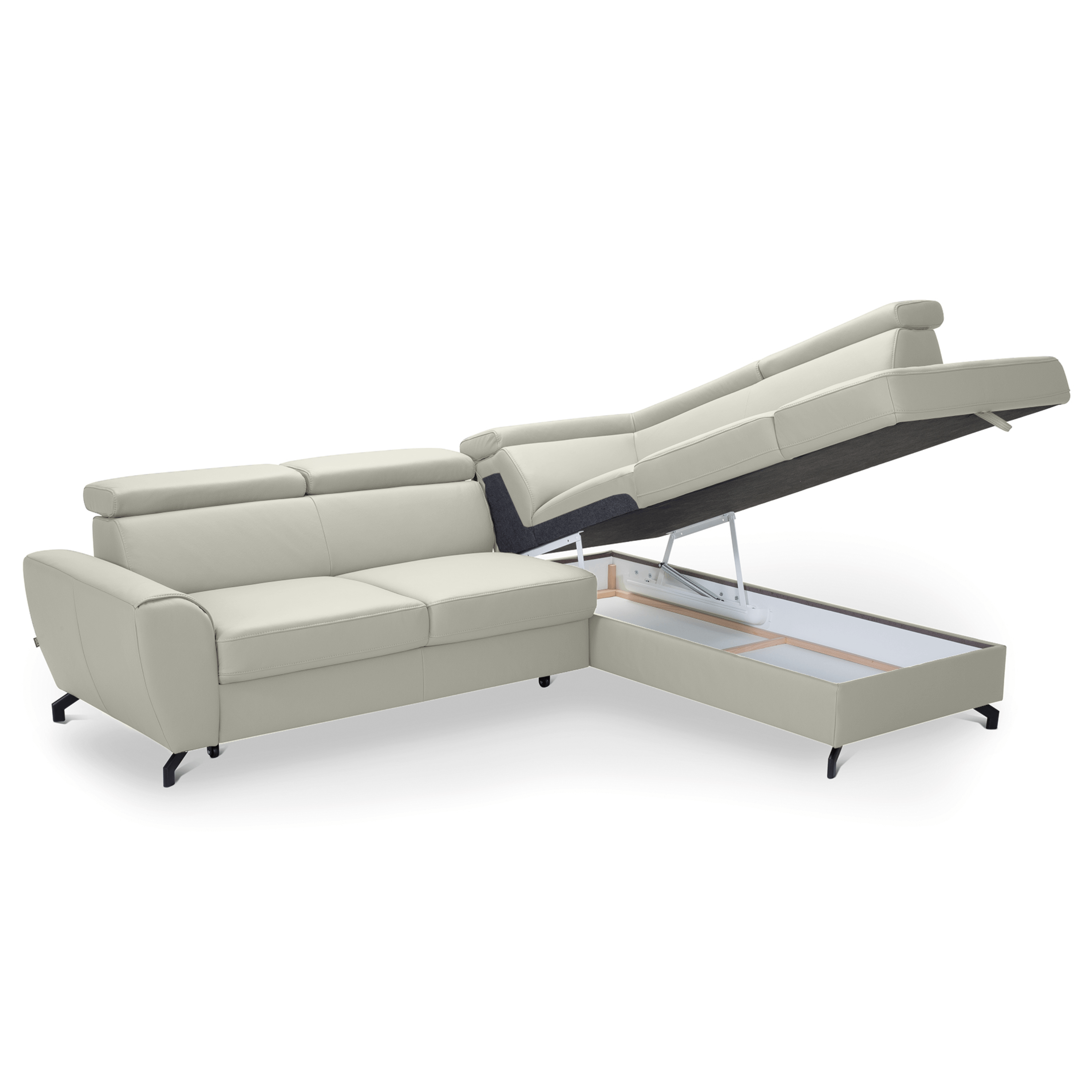 Maximální komfort je dosažen použitím kombinace pěny a vlnových pružin. Souprava je pak potažená na dotek příjemnou kůží. Už tak nadstandartní pohodlí je ještě navýšeno o nastavitelné opěrky na hlavu. Souprava rovněž nabízí funkci rozložení na lůžko pro příležitostné přespání. Doplněna je navíc o praktický úložný prostor na lůžkoviny. Stabilitu celé soupravy pak zajišťují kovové nohy.