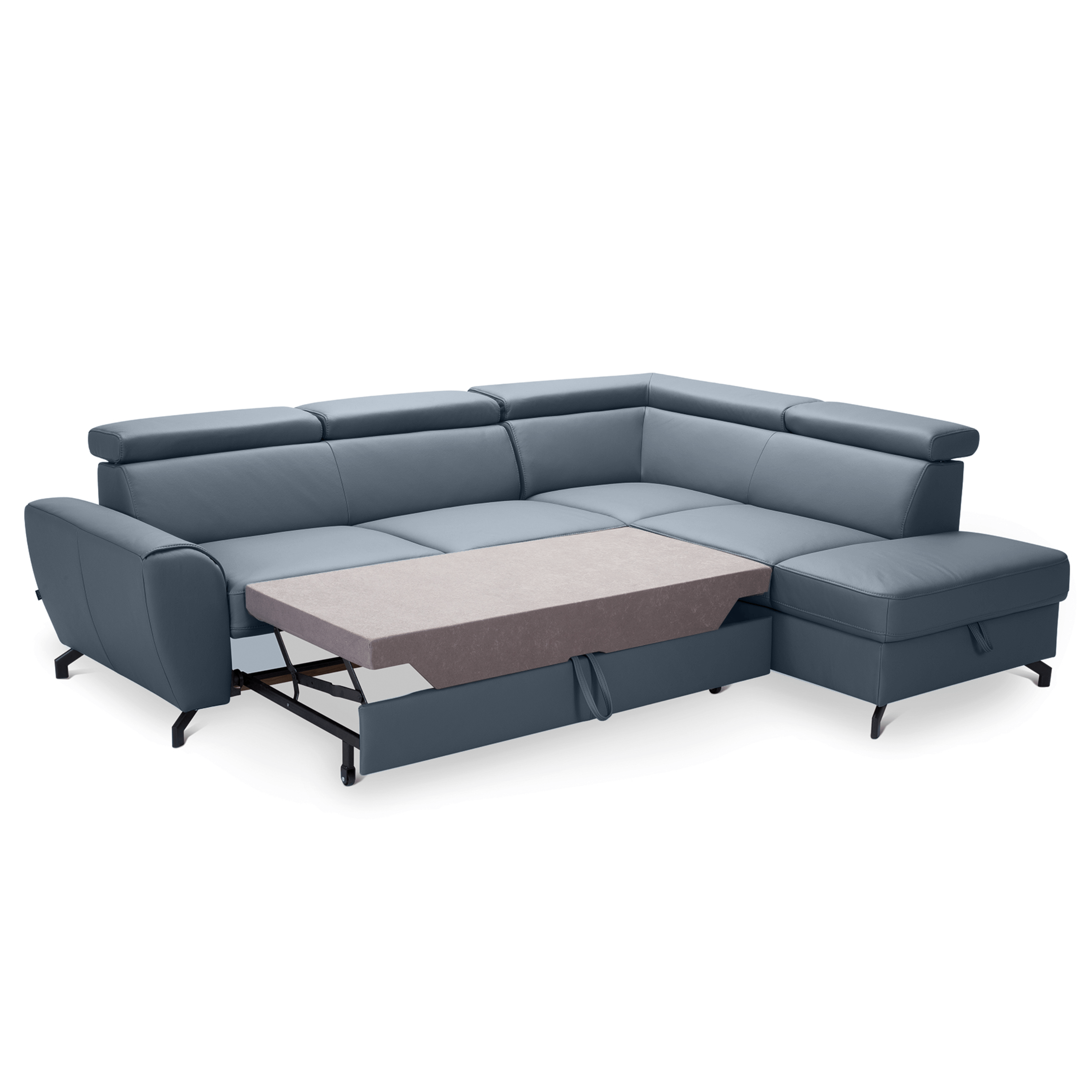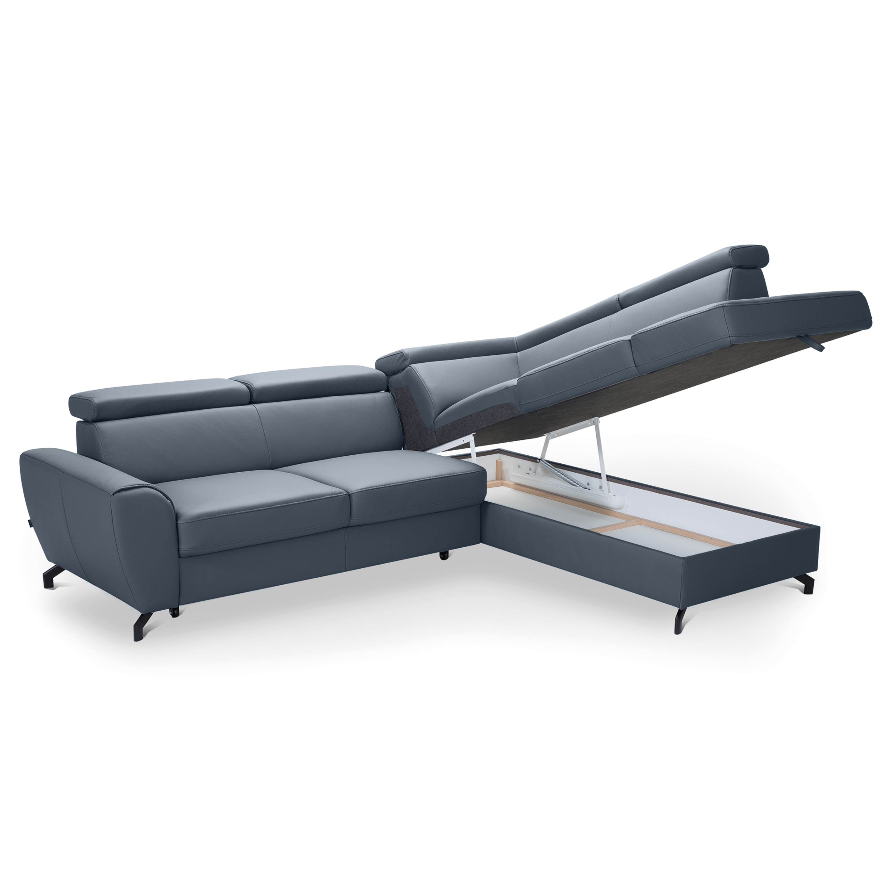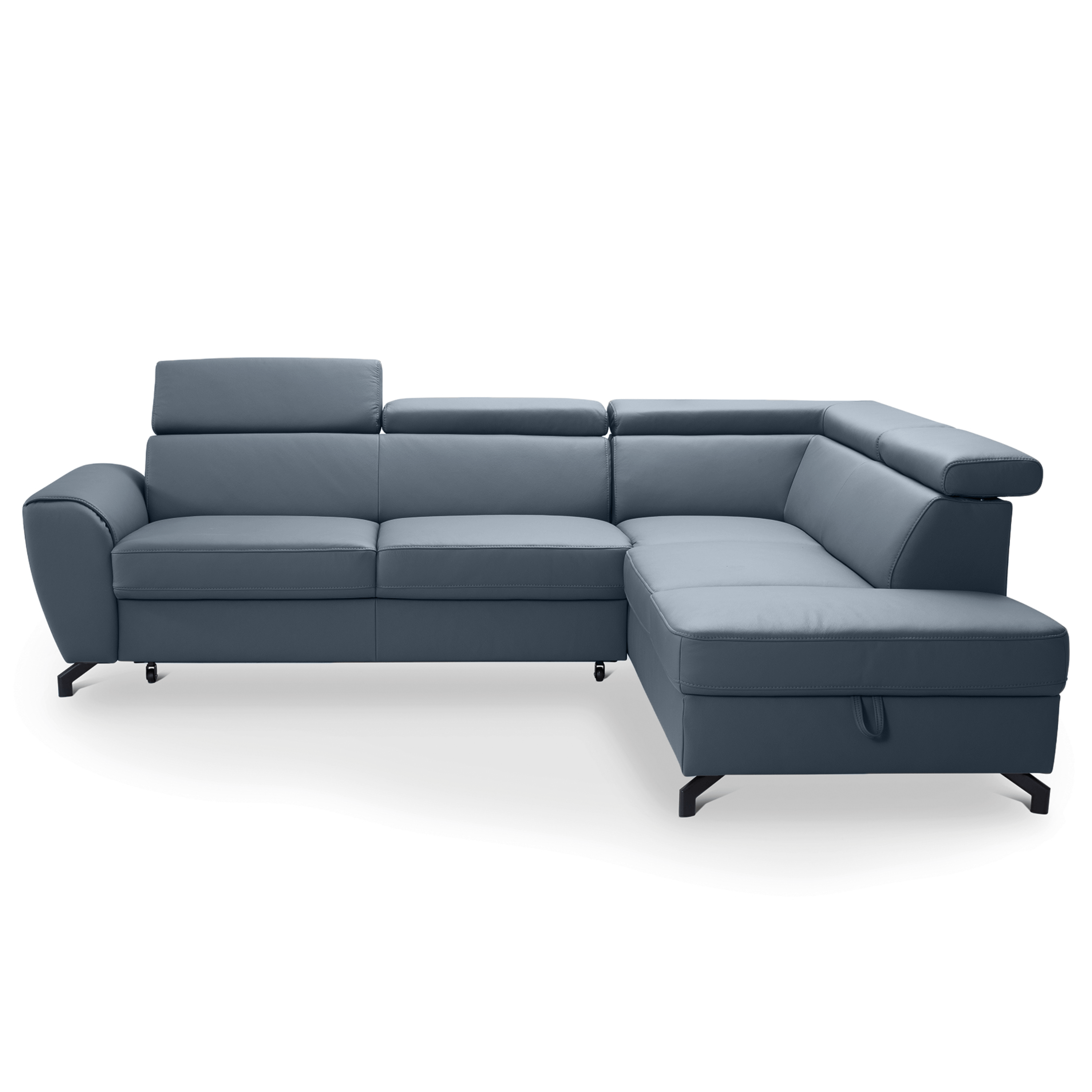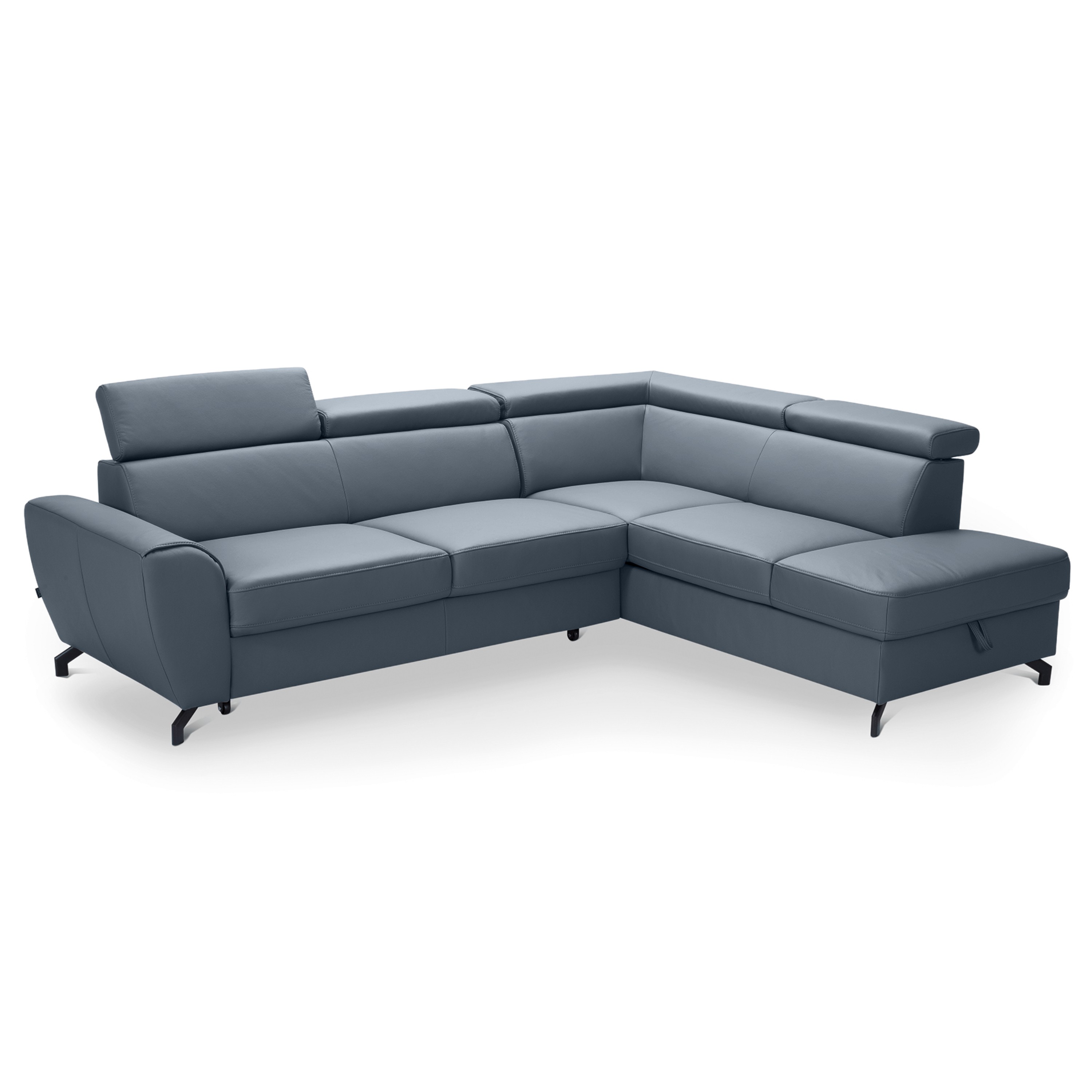 Maximální komfort je dosažen použitím kombinace pěny a vlnových pružin. Souprava je pak potažená na dotek příjemnou kůží. Už tak nadstandartní pohodlí je ještě navýšeno o nastavitelné opěrky na hlavu. Souprava rovněž nabízí funkci rozložení na lůžko pro příležitostné přespání. Doplněna je navíc o praktický úložný prostor na lůžkoviny. Stabilitu celé soupravy pak zajišťují kovové nohy.