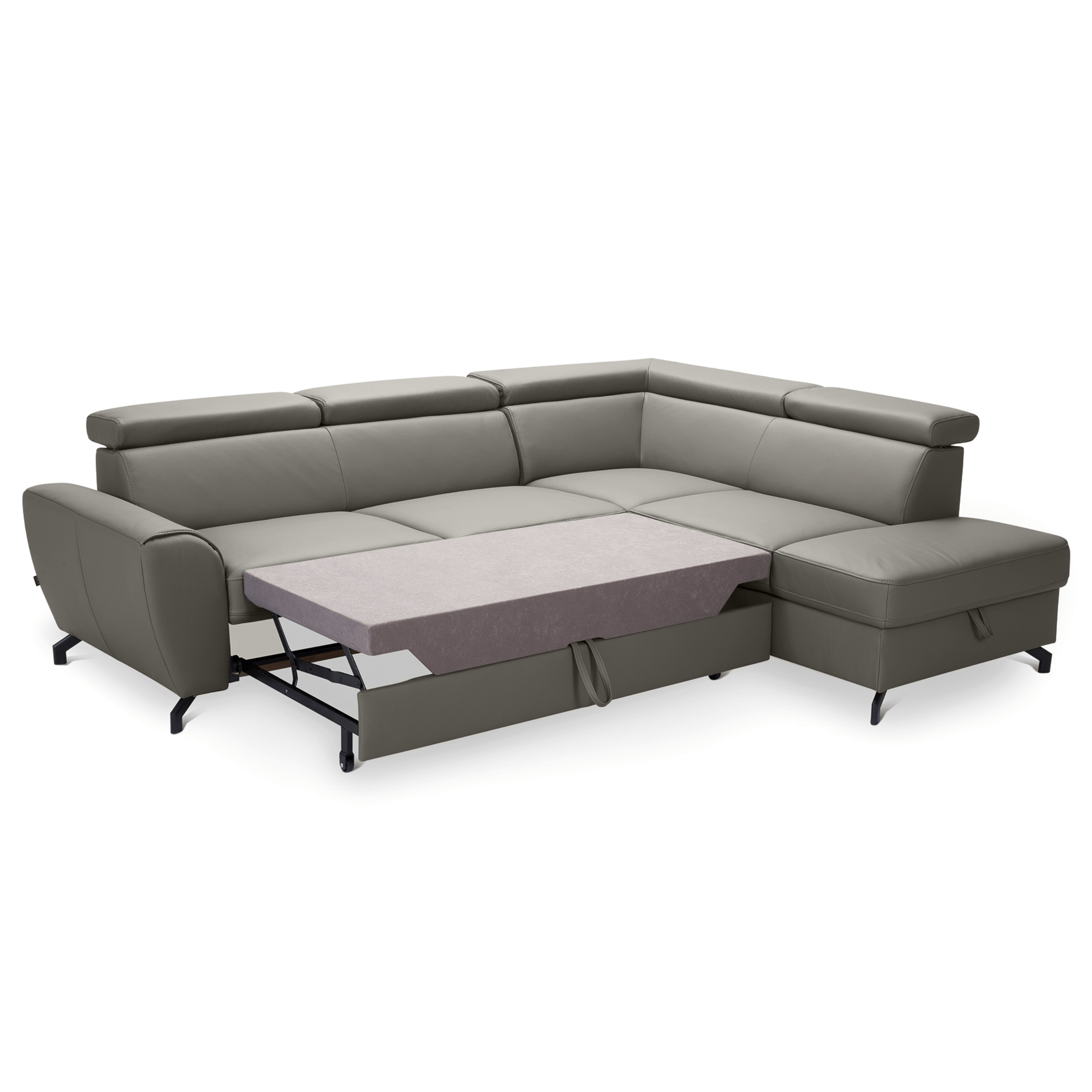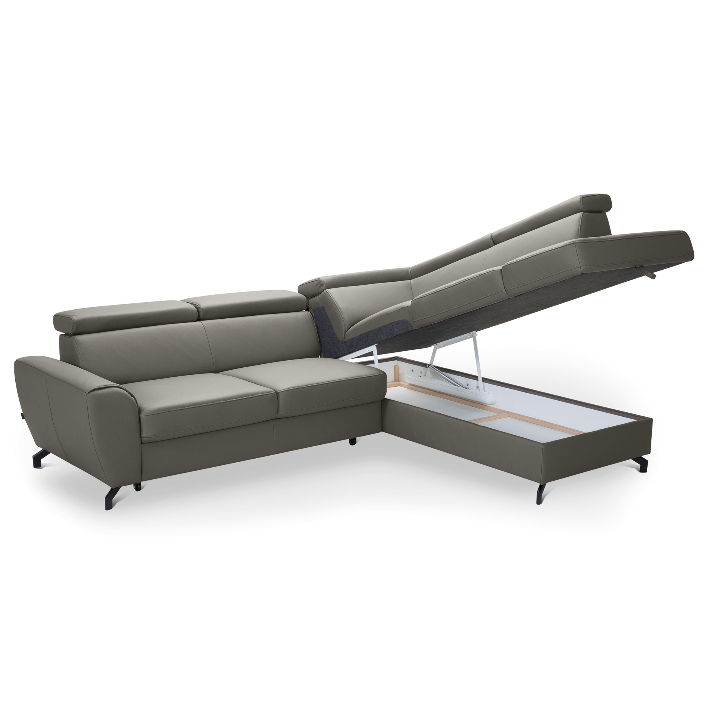 Maximální komfort je dosažen použitím kombinace pěny a vlnových pružin. Souprava je pak potažená na dotek příjemnou kůží. Už tak nadstandartní pohodlí je ještě navýšeno o nastavitelné opěrky na hlavu. Souprava rovněž nabízí funkci rozložení na lůžko pro příležitostné přespání. Doplněna je navíc o praktický úložný prostor na lůžkoviny. Stabilitu celé soupravy pak zajišťují kovové nohy.