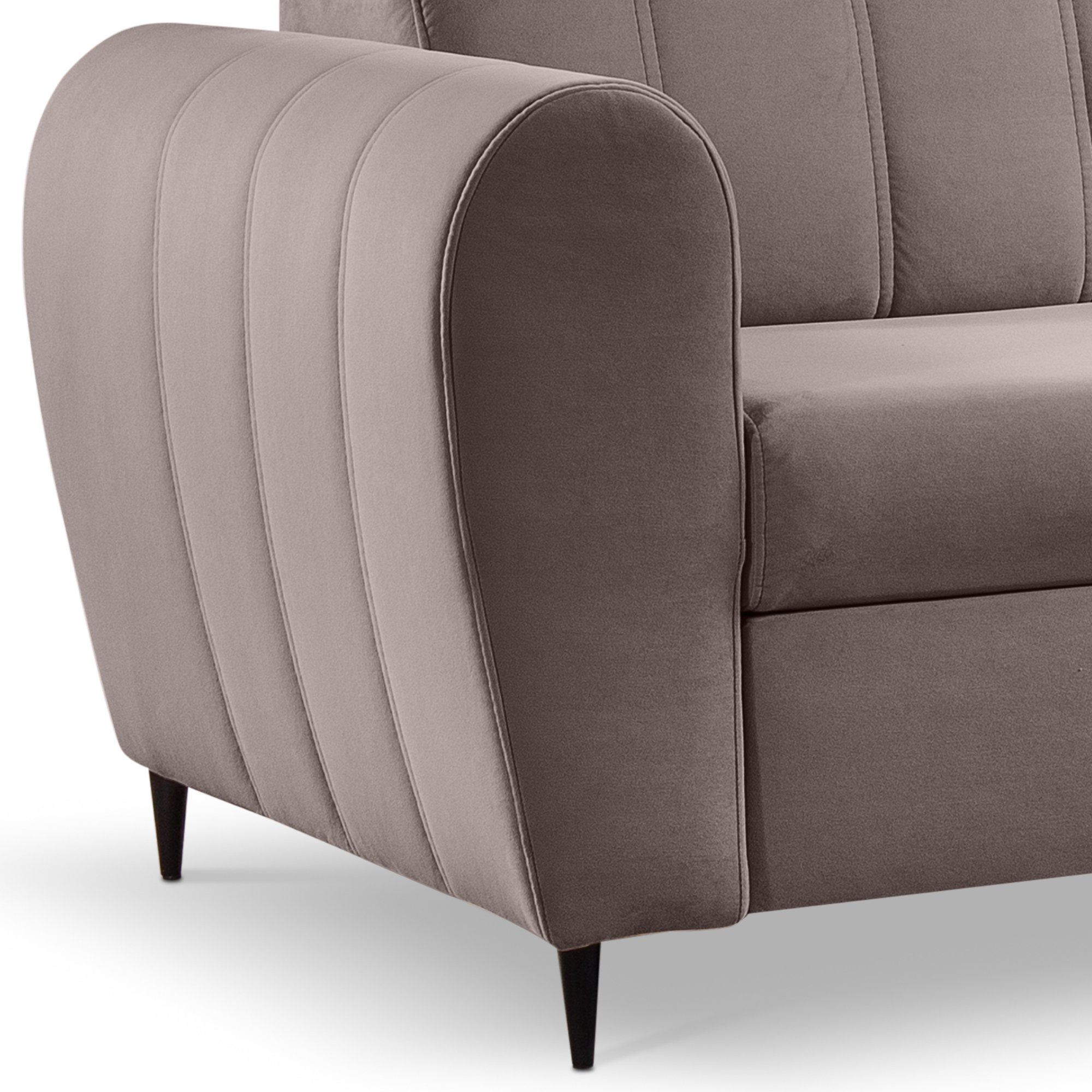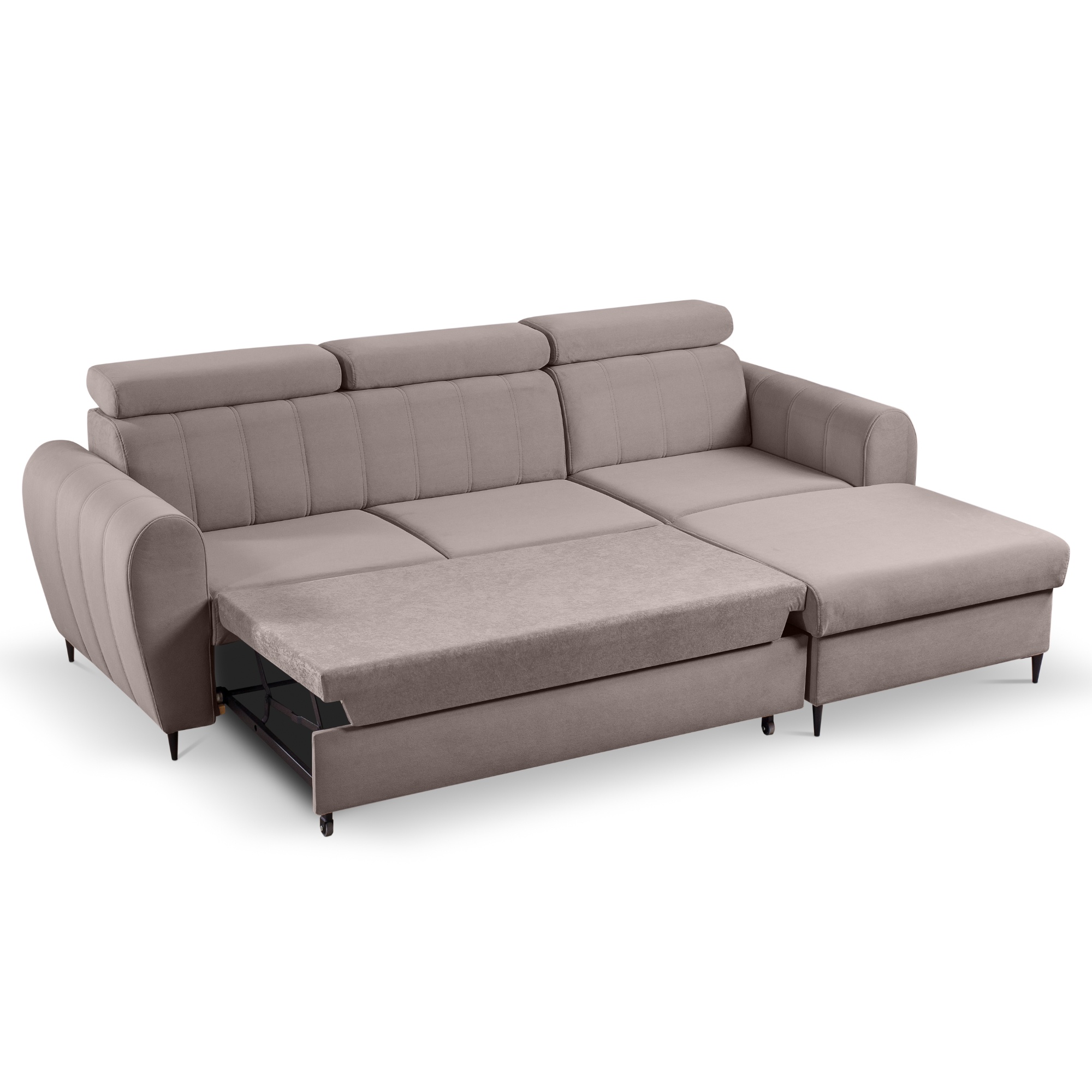 Reprezentativní vzhled a praktické funkce, které snadno přizpůsobíte aktuálním potřebám, jsou největšími přednostmi této sedačky. Oblé tvary v kombinaci s polohovacími podhlavníky umocní příjemný pocit z relaxace. Sedačka se během chvilky promění v lůžko pro příležitostné přespání. Integrovaný úložný prostor v otomanu poskytne útočiště pro lůžkoviny. Díky nožkám působí sedačka lehce, a navíc se pod ní snadno bude udržovat pořádek. Celočalouněné provedení vám dává možnost umístit sedací soupravu ke stěně nebo do prostoru.