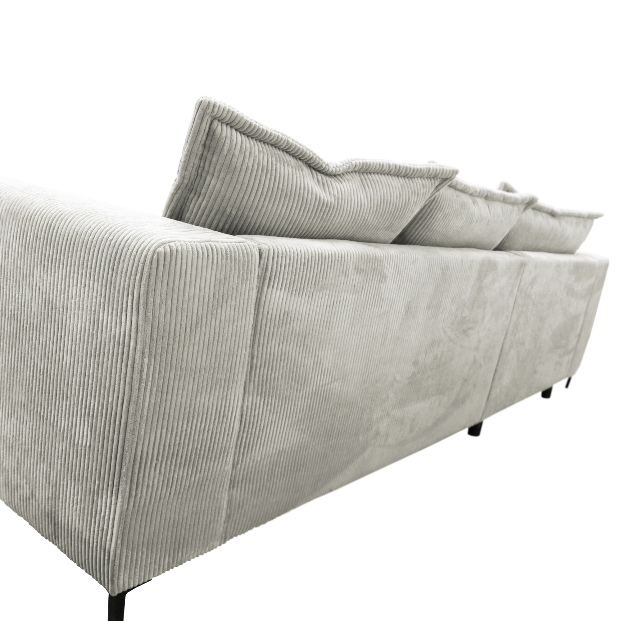 Potah jemně sametového vzhledu s manšestrovou strukturou je příjemný na dotek a vy si tak můžete užívat optimální pohodlí. V případě potřeby je možné vytvořit z gauče příležitostné lůžko k přespání. Integrovaný úložný prostor v otomanu poskytne útočiště nejen pro lůžkoviny, které budete mít v případě potřeby hned po ruce, ale můžete ho využít variabilně podle potřeby. Deky, sezónní dekorace i hračky budou ve větratelném prostoru bezpečně uloženy. Celočalouněné provedení sedačky vám dopřeje luxus, zvolit si, zda ji umístíte ke zdi nebo do prostoru. Šířka otomanu je 126 cm.