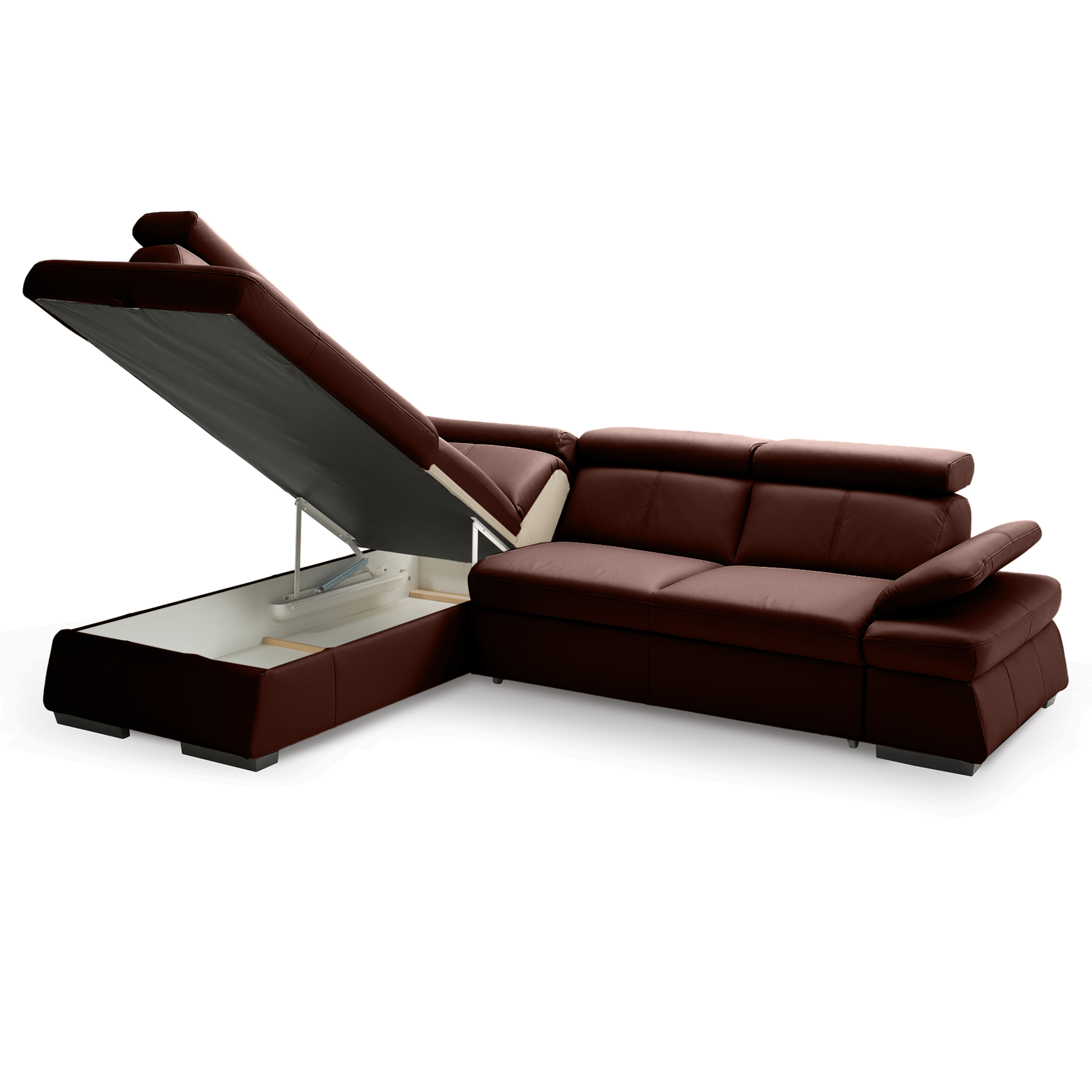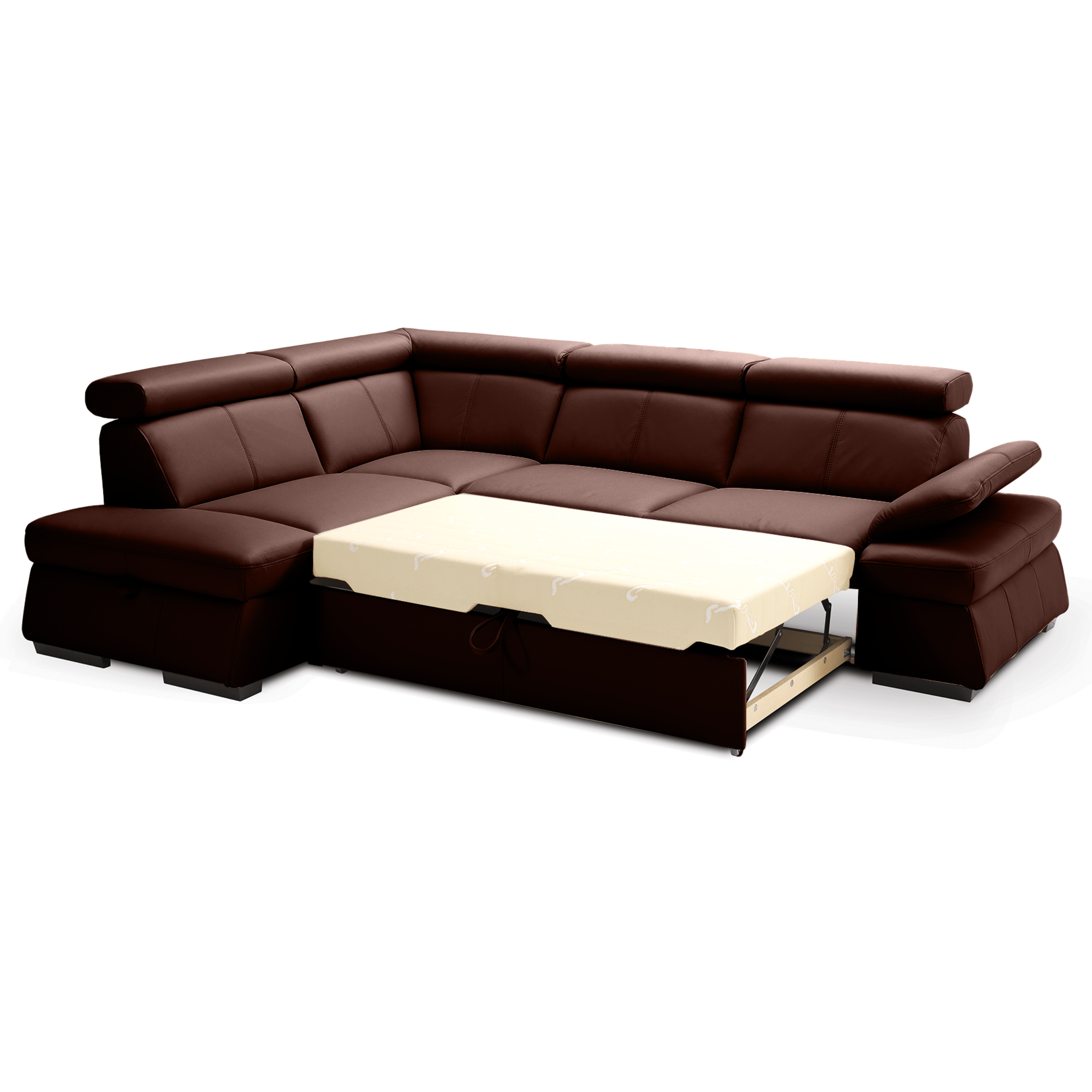 Maximální komfort je dosažen použitím kombinace pěny a vlnových pružin. Souprava je pak potažená na dotek příjemnou kůží. Už tak nadstandartní pohodlí je ještě navýšeno o nastavitelné područky a opěrky na hlavu. Souprava rovněž nabízí funkci rozložení na lůžko pro příležitostné přespání. Doplněna je navíc o praktický úložný prostor na lůžkoviny. Stabilitu celé soupravy pak zajišťují dřevěné nohy.
