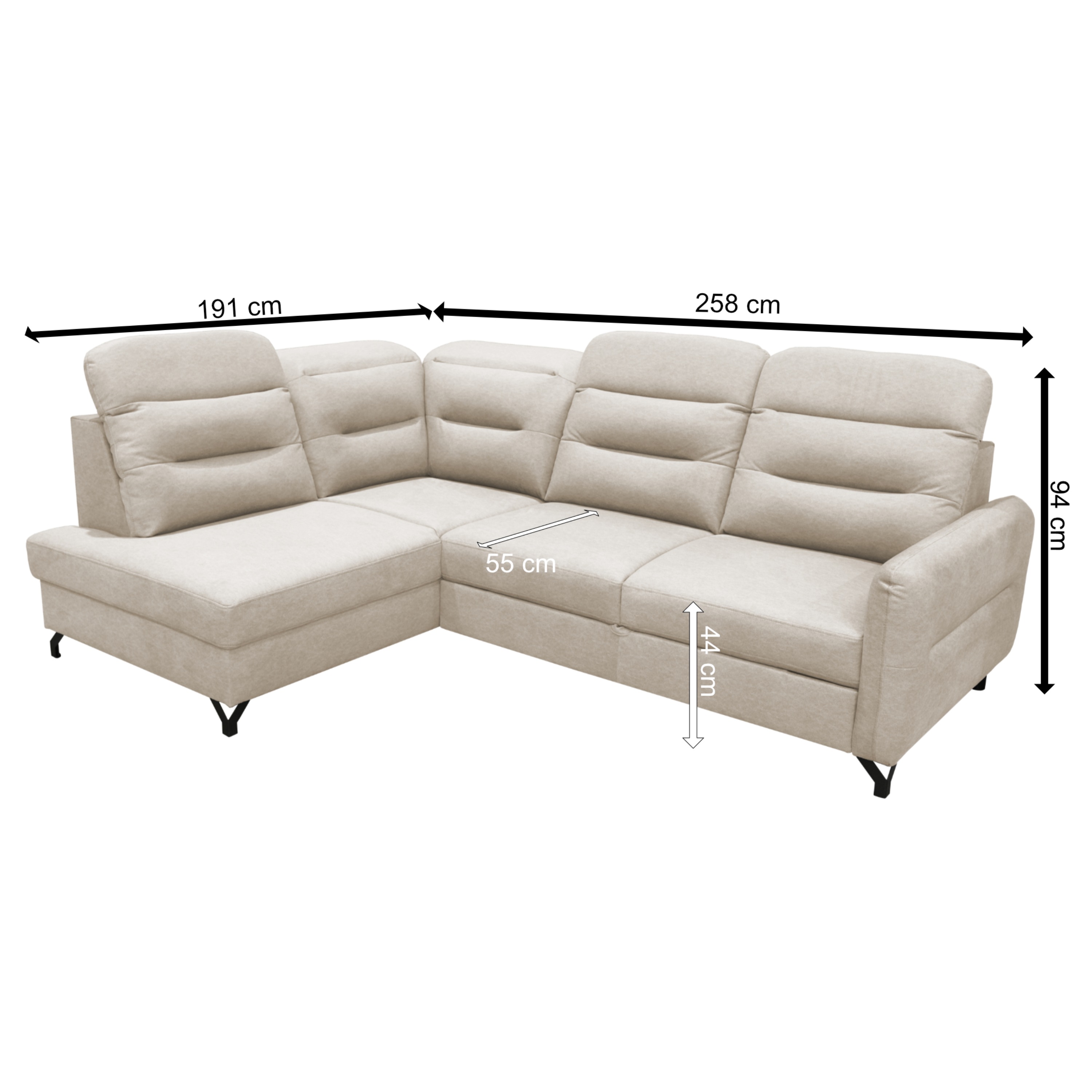 Sedák je tvořen pěnovým jádrem, které vám poskytne měkké sezení. Oblé tvary v kombinaci s polohovacími podhlavníky zase umocní příjemný pocit z relaxace. Gauč zvládne nejen hosty usadit, ale v případě potřeby lze sedačku rozložit na lůžko pro příležitostné spaní. Integrovaný úložný prostor v otomanu poskytne útočiště nejen pro lůžkoviny, které budete mít hned po ruce, ale můžete ho využít variabilně podle potřeby. Celočalouněné provedení vám poskytne luxus, zvolit si sami kam ji postavíte, jestli ke stěně nebo do otevřeného prostoru.