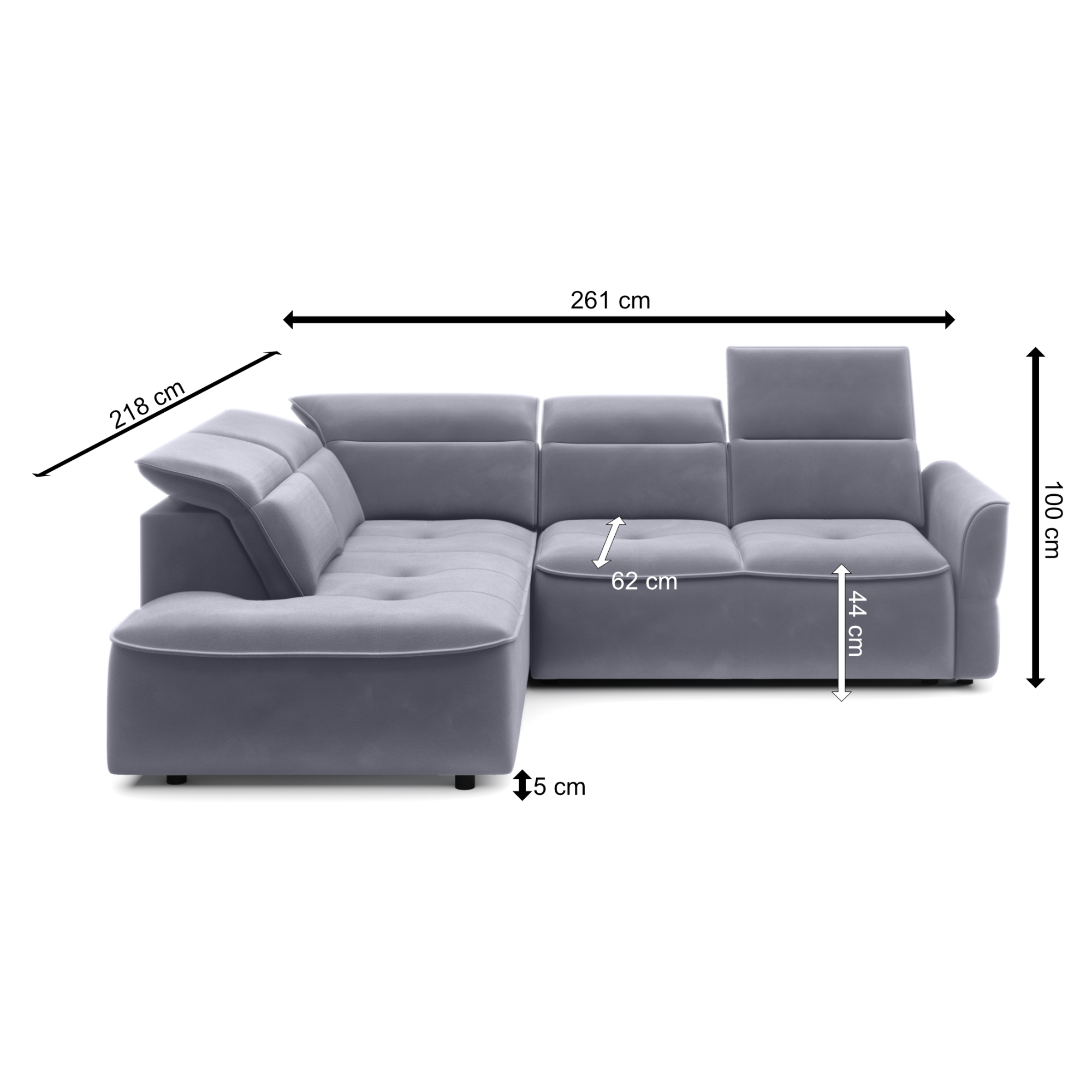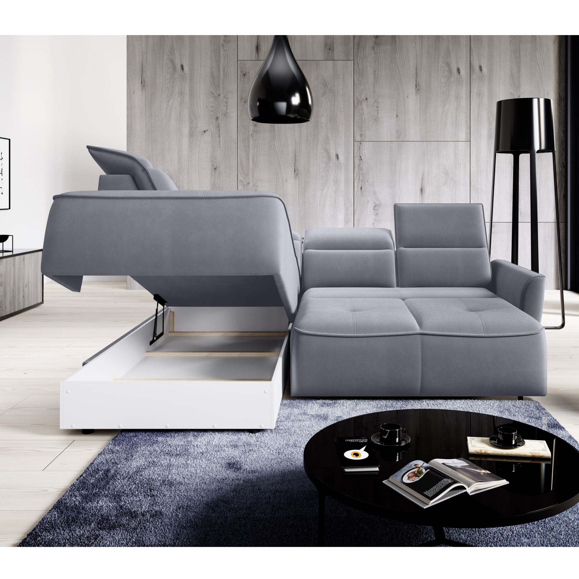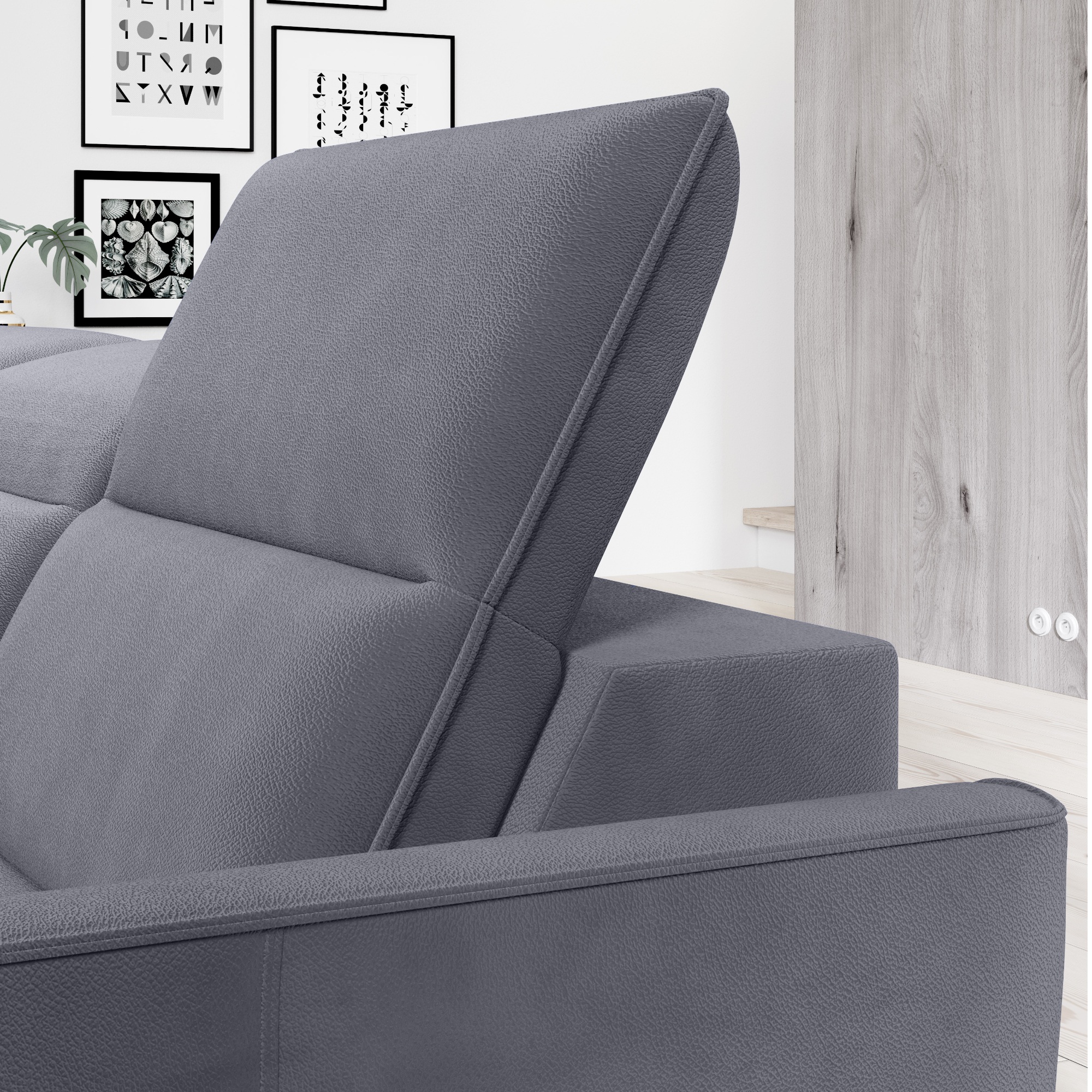 - Další funkce: Elektricky nastavitelná hloubka sedu, Polohovatelná opěrka hlavy, Rozkládání do lůžka, Úložný prostor