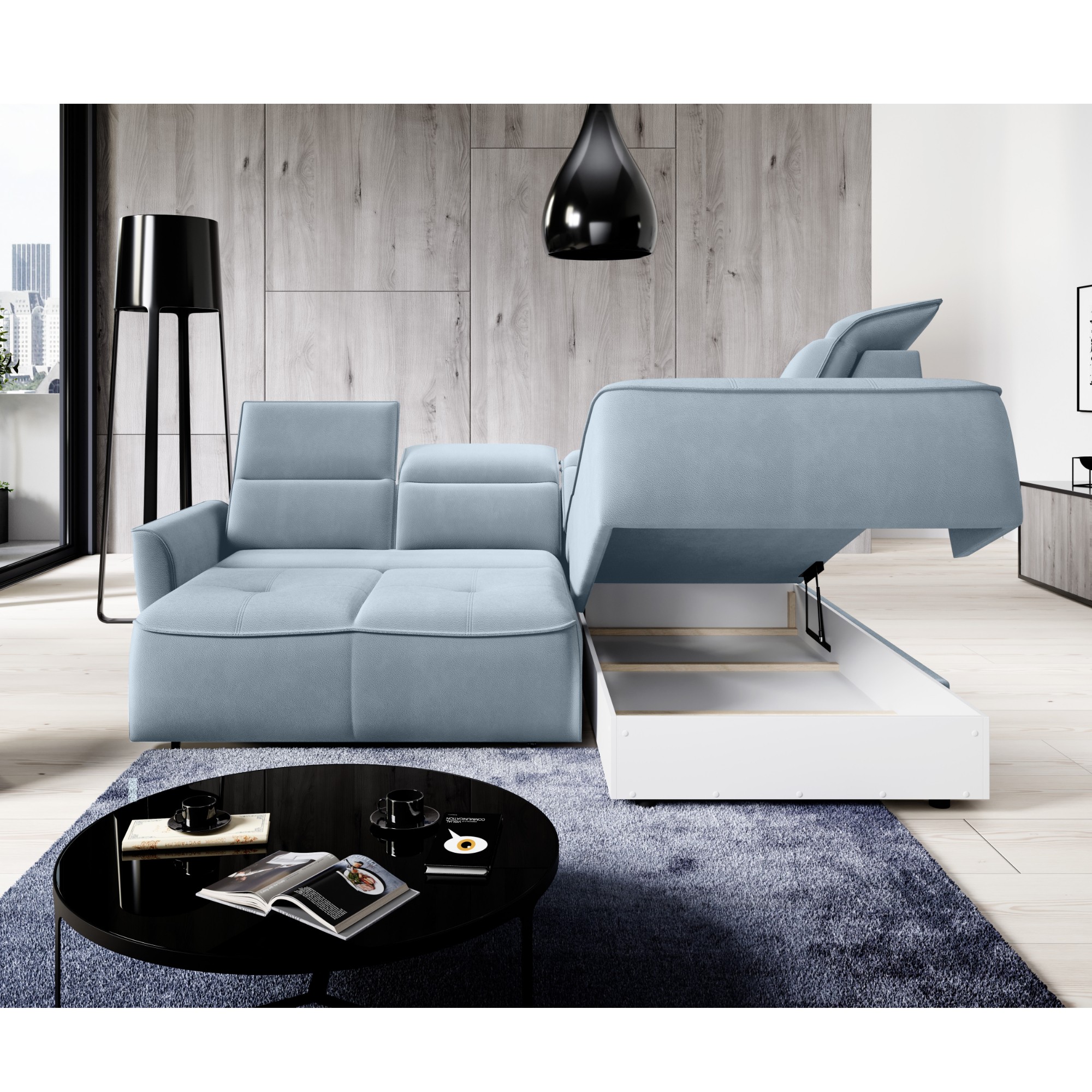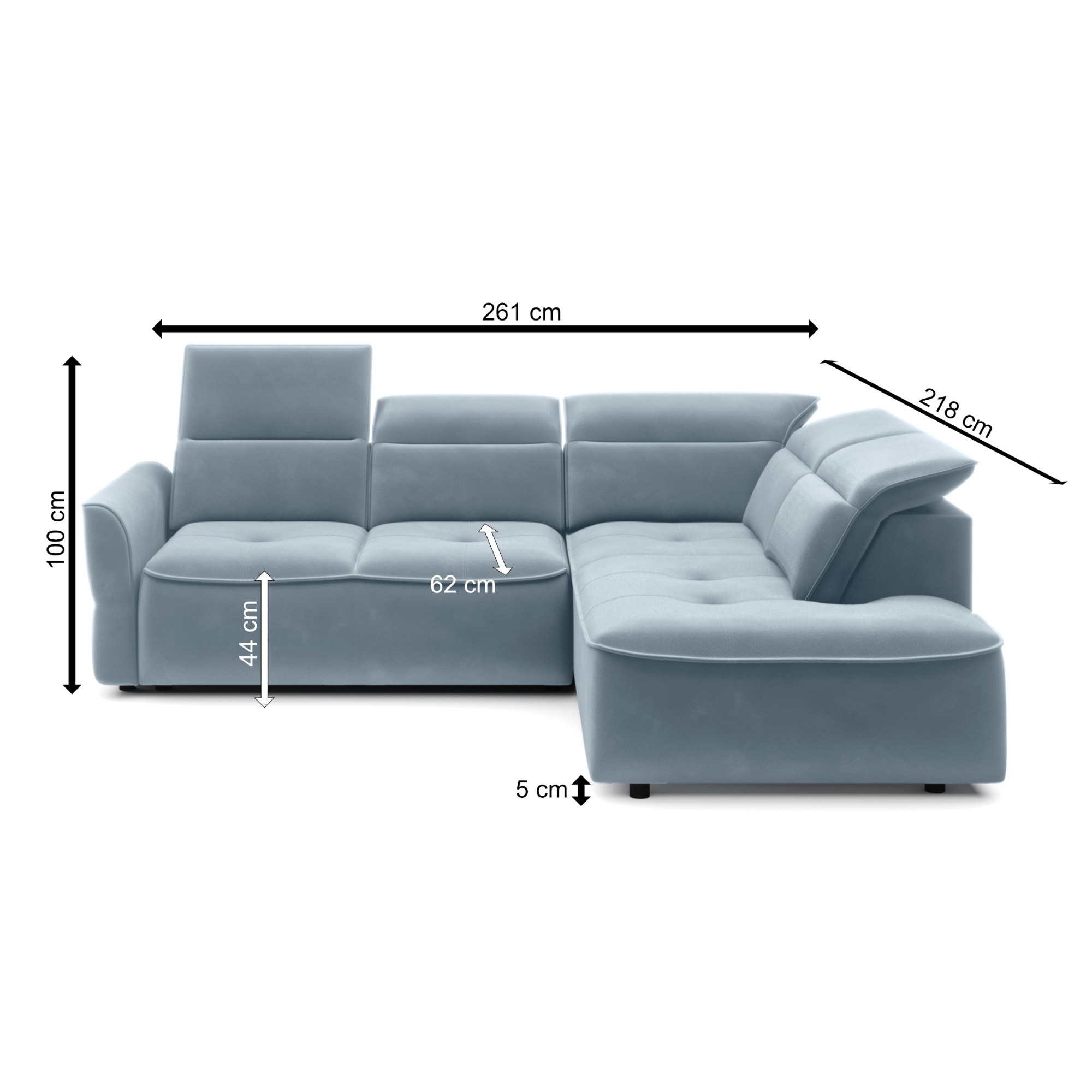 O maximální pohodlí se postarají nastavitelné opěrky hlavy a možnost upravit si hloubku sedáku až o 60 cm. Sedák tvoří pružinové jádro s polyuretanovou pěnou. Oblé tvary gauče a sofistikované funkce vytváří elegantní kout pro relaxaci a odpočinek. Pouhým stisknutím tlačítka přenastavíte gauč na plochu pro příležitostné přespání. Integrovaný úložný prostor v otomanu poskytuje místo pro lůžkoviny, ale díky snadné dostupnosti lze využít i pro různé účely. Tkanina s povrchovou úpravou na bázi nanočástic vám umožní odstranit i obtížně odstranitelné skvrny bez potřeby čisticích prostředků. Díky technologii Easy Clean vám k tomu bude stačit jen voda s trochou mýdla. Snadné čistění jen pomocí vody ocení nejen rodiče a milovníci zvířat. Celočalouněné provedení nabízí variabilitu umístění sedačky.
