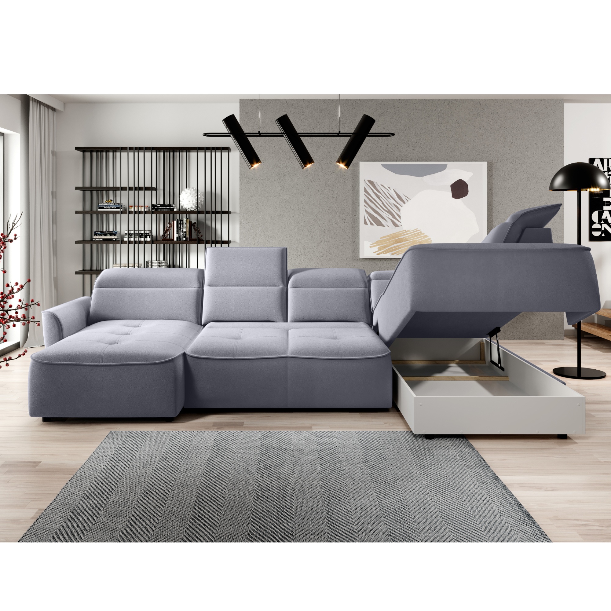 - Další funkce: Elektricky nastavitelná hloubka sedu, Polohovatelná opěrka hlavy, Rozkládání do lůžka, Úložný prostor