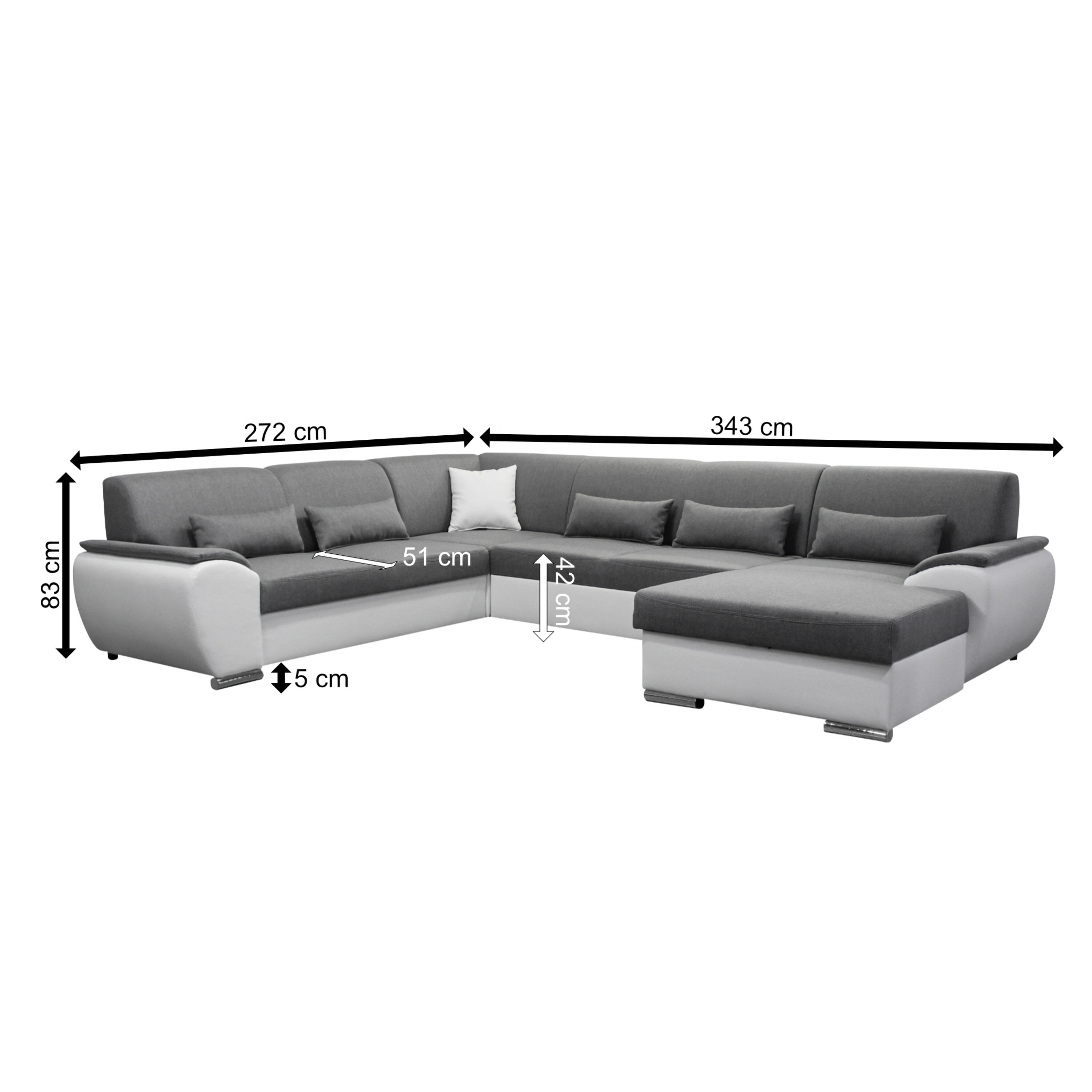 Sedací souprava ROYAL U - pravá, šedá/bílá