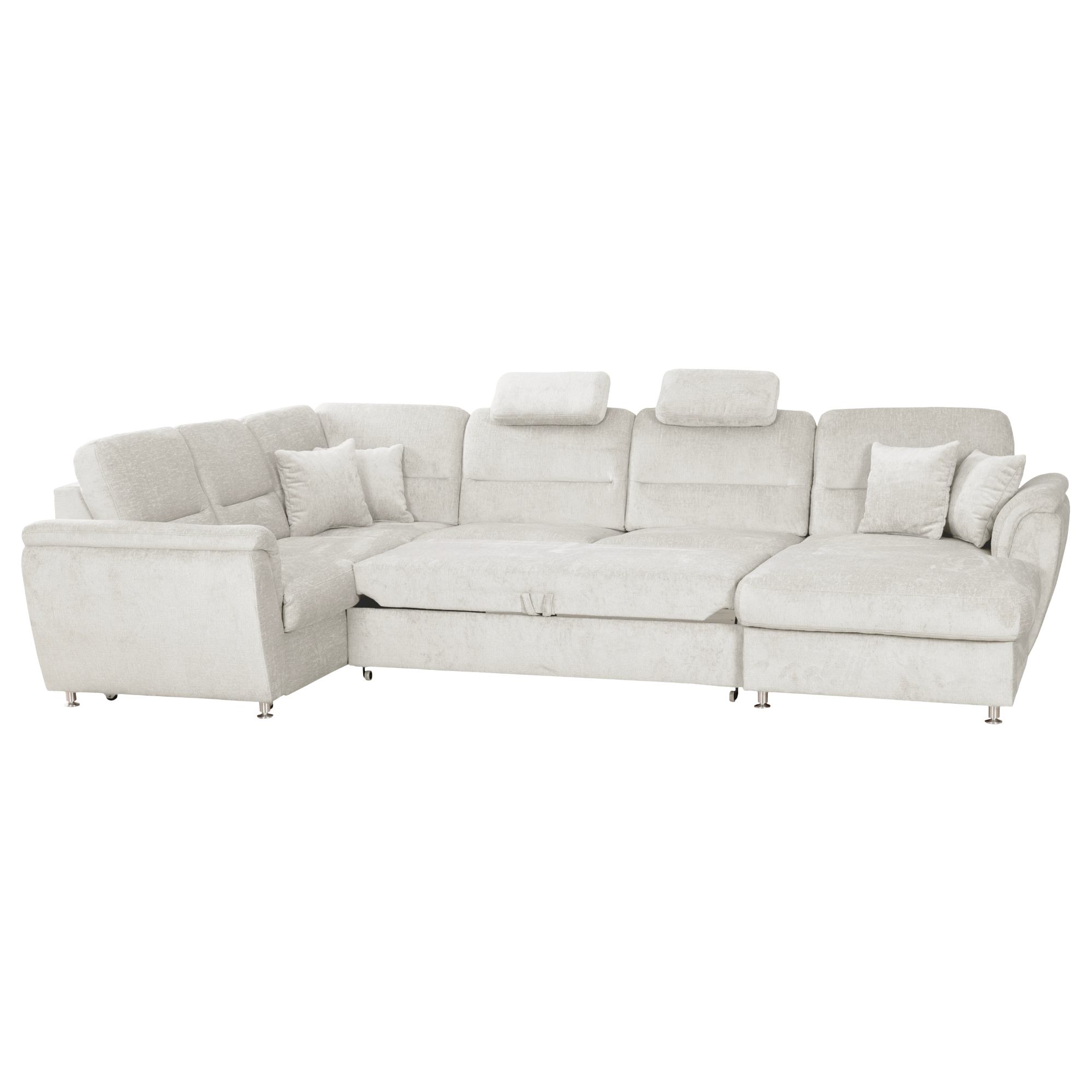 Sedačku lze v případě potřeby rozložit na lůžko, které se dá využít k občasnému přespání. Funkční konstrukce obsahuje i skryté úložné prostory se snadným přístupem, kam uschováte nepoužívané lůžkoviny. Potřebnou stabilitu potom zajišťují kovové nohy v barvě kovu. Celočalouněné provedení vám umožňuje sedací soupravu umístit i volně do prostoru.
