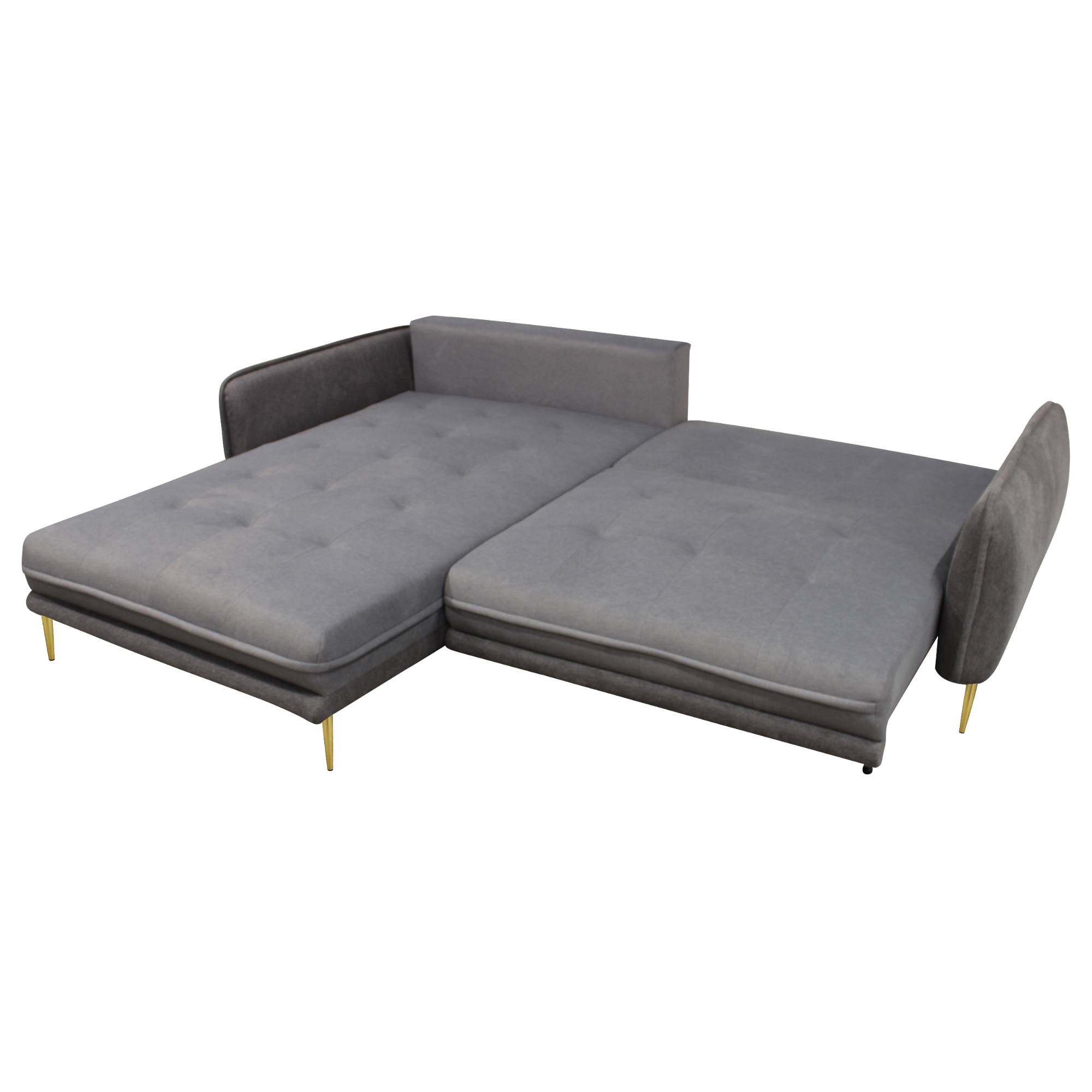 Oblé tvary a polštáře různých velikostí vám poskytnou měkkou oporu těla při sezení. Kombinace hladké tkaniny a tkaniny sametového vzhledu vytváří příjemný kontrast. V případě potřeby lze sedačku využít také jako příležitostné lůžko. Integrovaný úložný prostor si hravě poradí s rozměrnými textiliemi, jako jsou peřiny, deky a polštáře. Kovové nožky usnadní udržení pořádku pod sedačkou.