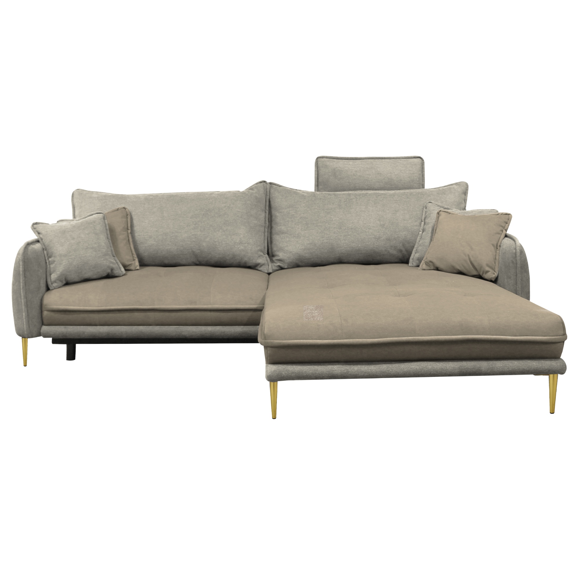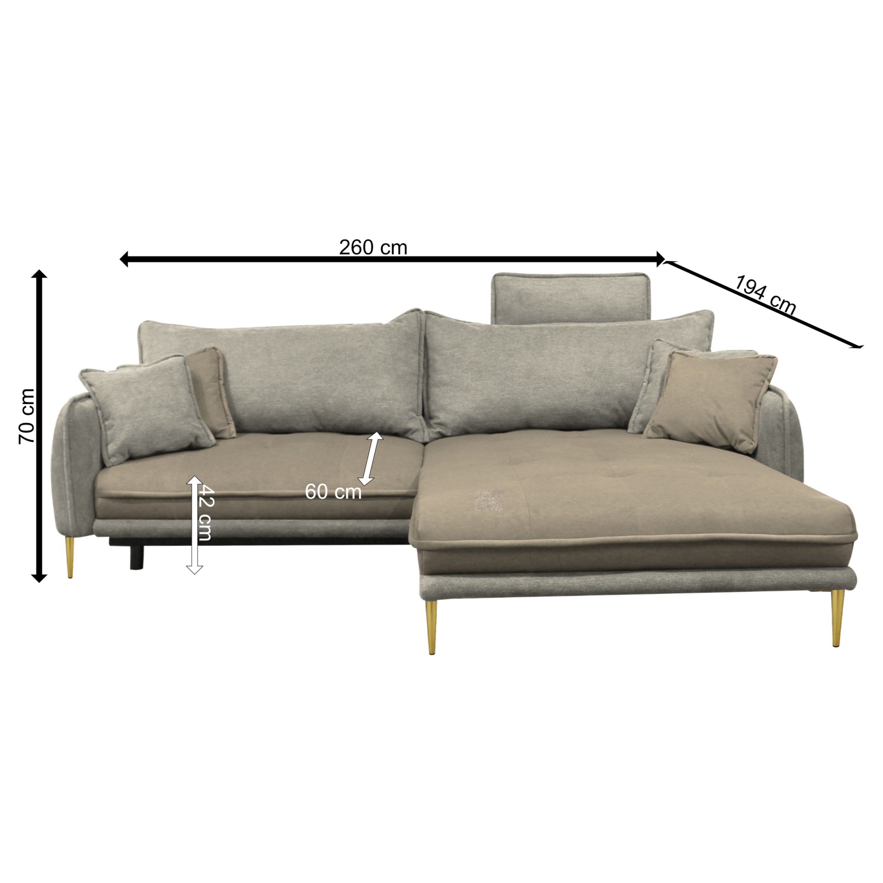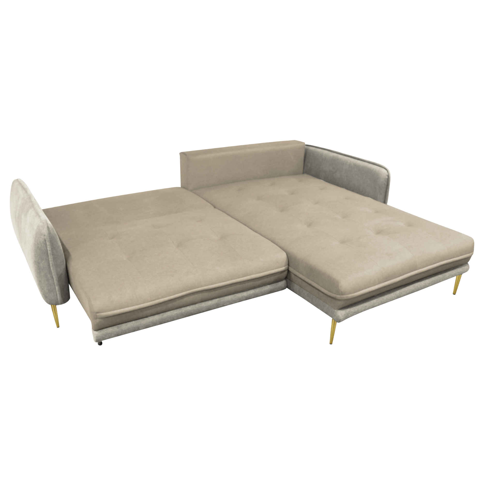 Oblé tvary a polštáře různých velikostí vám poskytnou měkkou oporu těla při sezení. Kombinace hladké tkaniny a tkaniny sametového vzhledu vytváří příjemný kontrast. V případě potřeby lze sedačku využít také jako příležitostné lůžko. Integrovaný úložný prostor si hravě poradí s rozměrnými textiliemi, jako jsou peřiny, deky a polštáře. Kovové nožky usnadní udržení pořádku pod sedačkou.