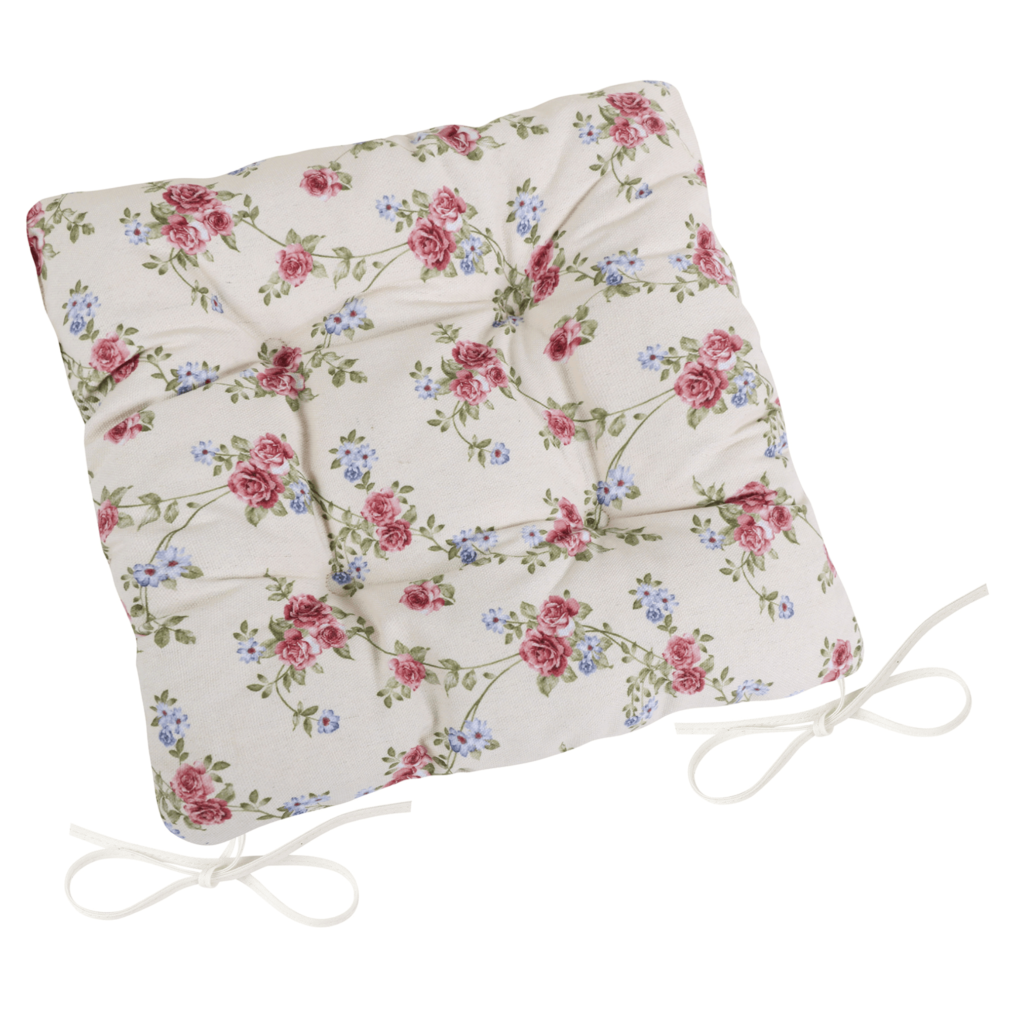 Sedák PNOUCÍ RŮŽIČKA o velikosti 40x40 cm je vyveden v elegantním provedení v kombinaci bílé a růžové barvy a je doplněn o jemný květinový motiv. Plátěný potah je složen z 90% bavlny a z 10% polyesteru. Výplň ze 100% polyuretanové pěny vám zpříjemní sezení ať sedák využijete doma, na balkoně či na zahradě. Praktické šňůrky na stranách umožňují snadné připevnění sedáku k židli.