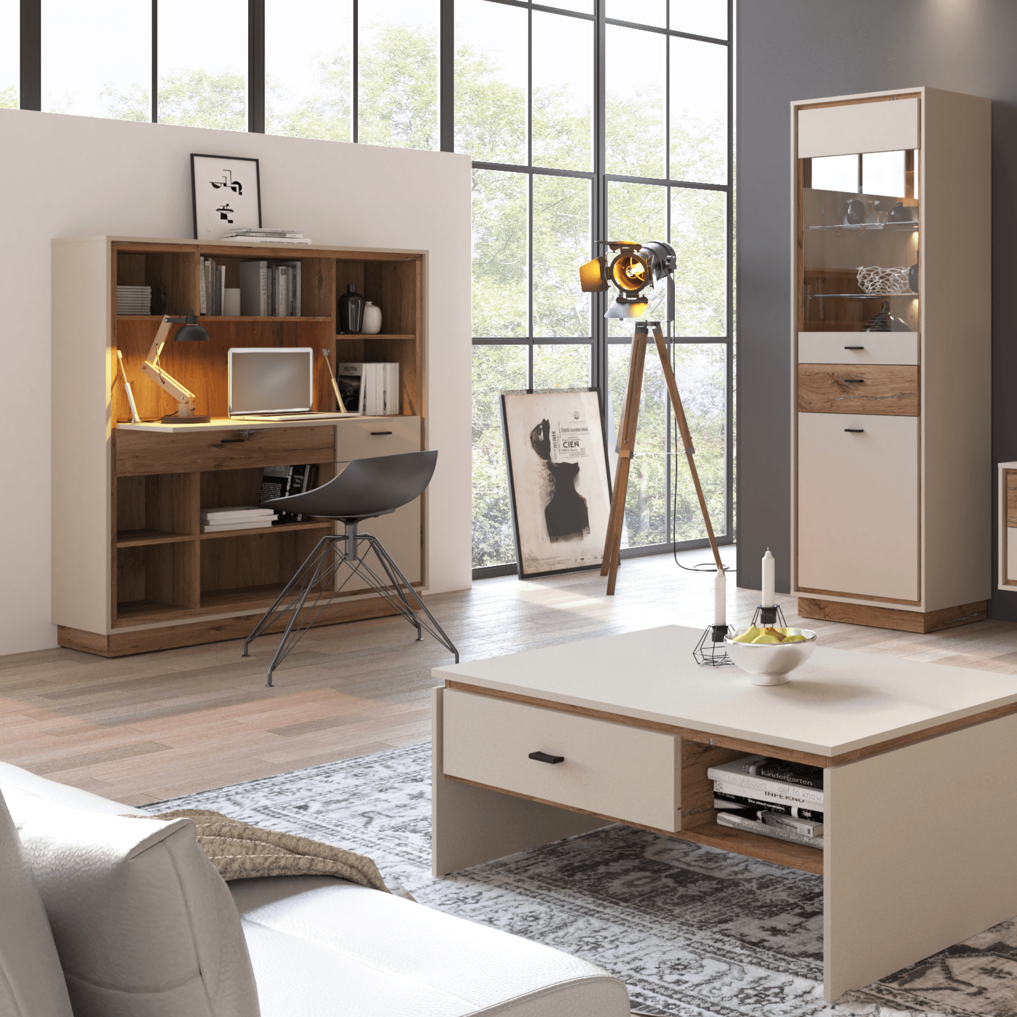 Sekretář RIVERO RIVB02 dodá obývacímu pokoji styl a díky bohatému úložnému prostoru udrží v místnosti řád a pořádek.