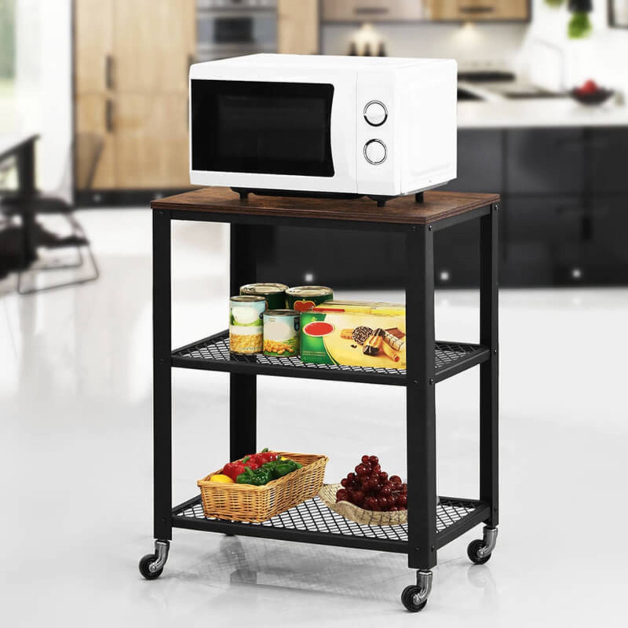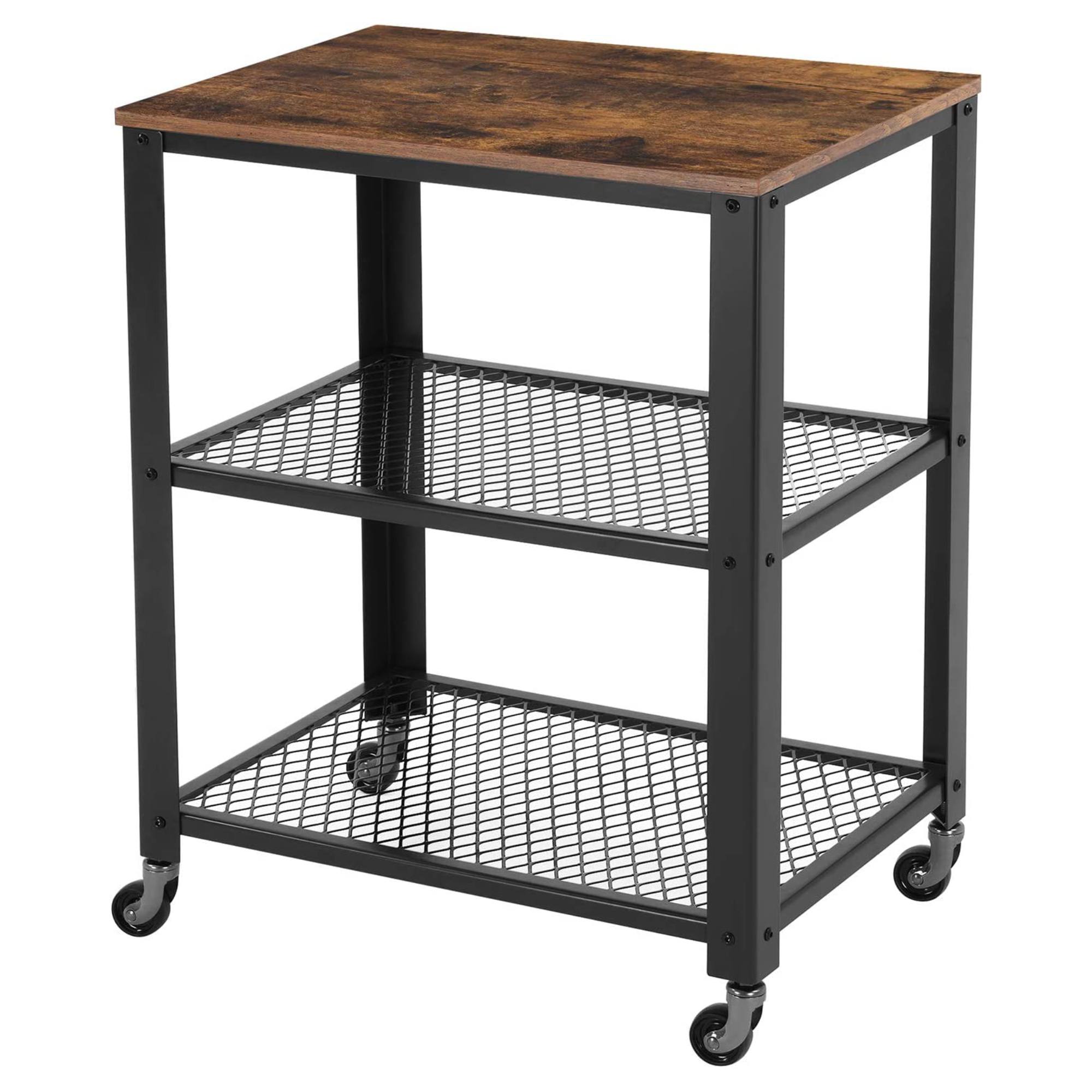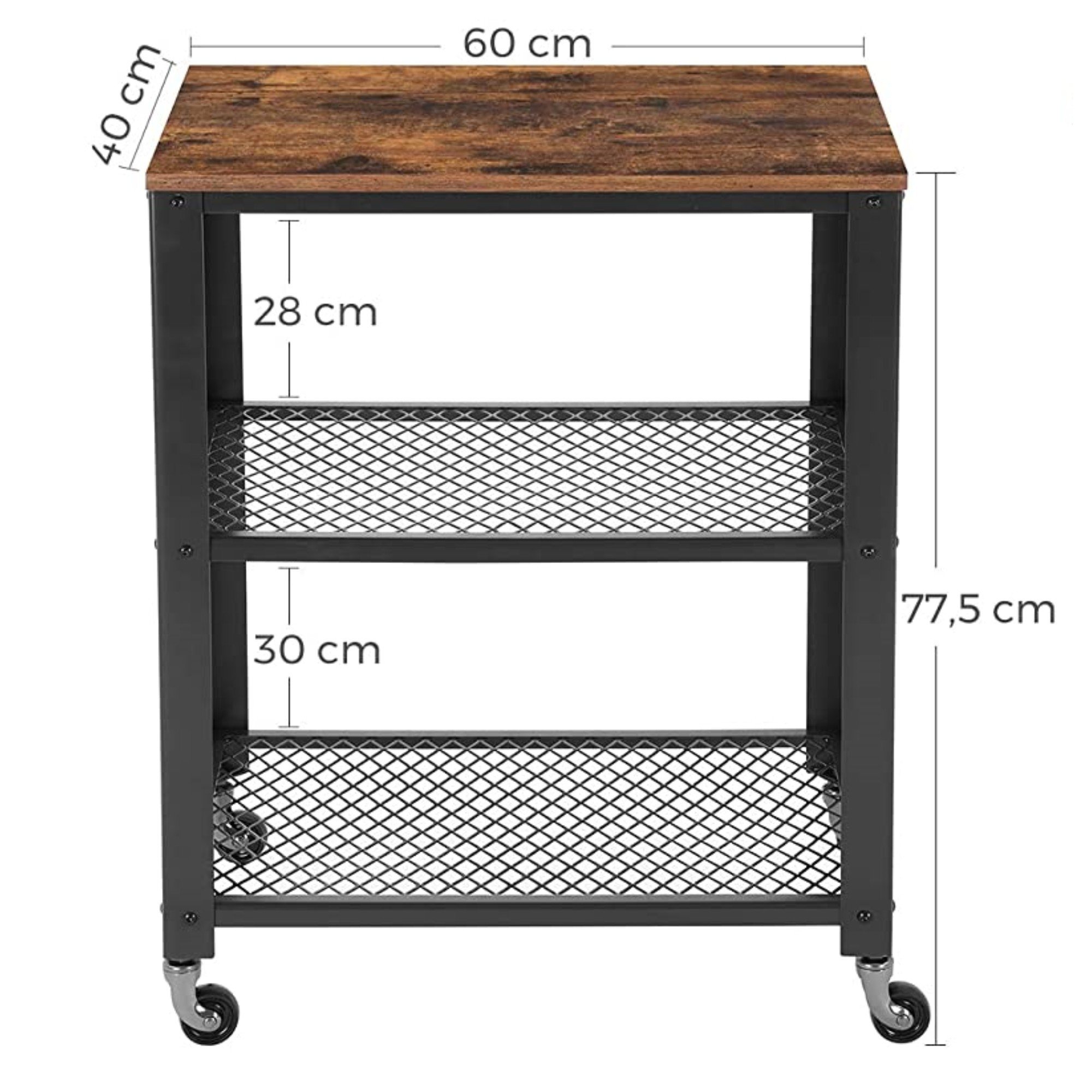 Atraktivní a multifunkční servírovací stolek TAVIRA v průmyslovém designu je skvělým doplňkem do kuchyní, jídelen a všude tam kde najde svoje využití. Nespornou výhodou stolku je také snadná mobilita zajištěná kolečky. Kovová stabilní konstrukce doplněná o dvě síťované police a horní desku z dřevotřísky v dekoru tmavého dřeva, disponuje velkým úložným prostorem a slibuje, že ke svému umístění nepotřebuje příliš mnoho místa. Designový servírovací vozík je ideálním řešením do menších interiérů.