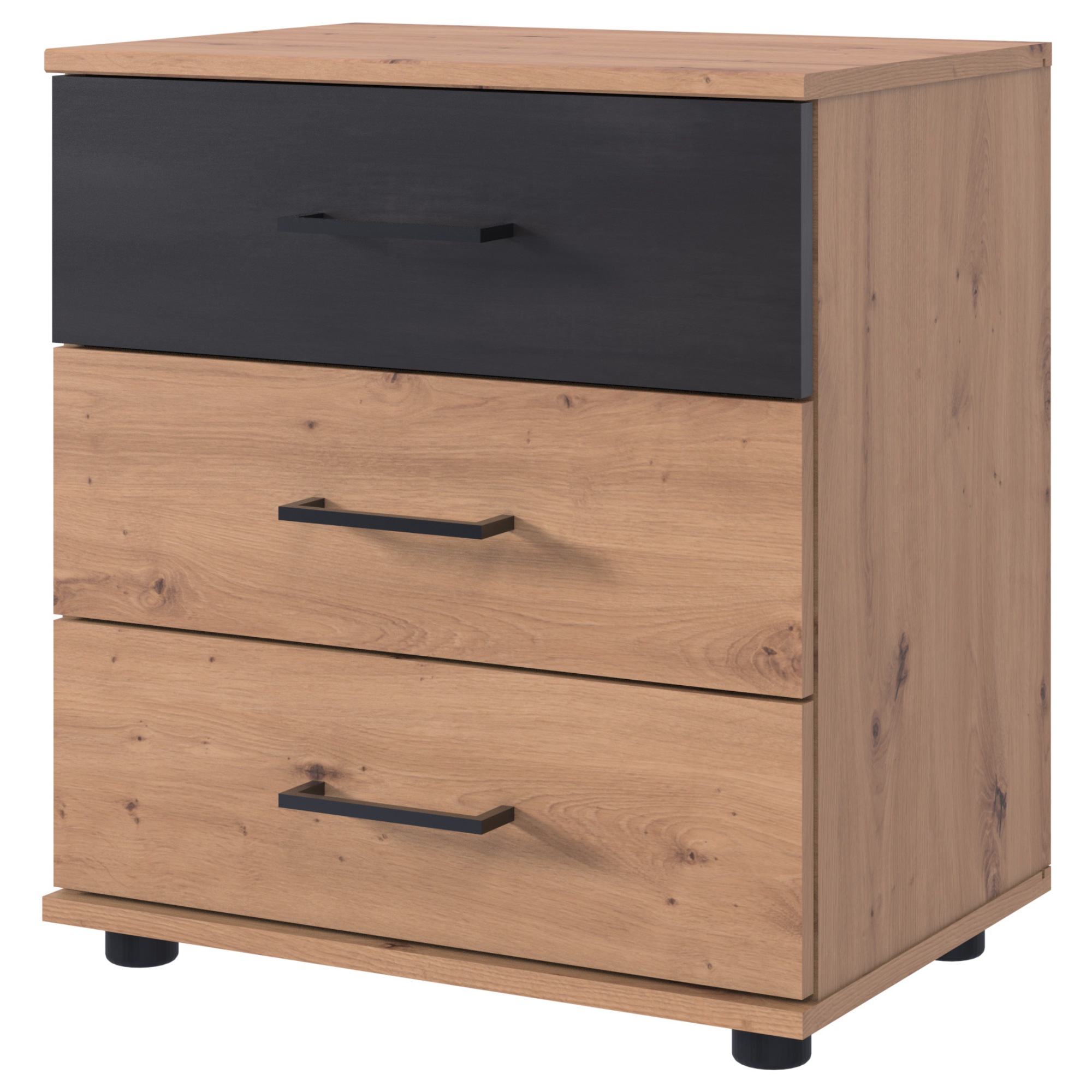 Set nočních stolků STACIE se stanou praktickou součástí vaší ložnice. Kombinace přírodního dekoru dubu artisan s grafitovou barvou vytváří moderní atmosféru v celé místnosti.