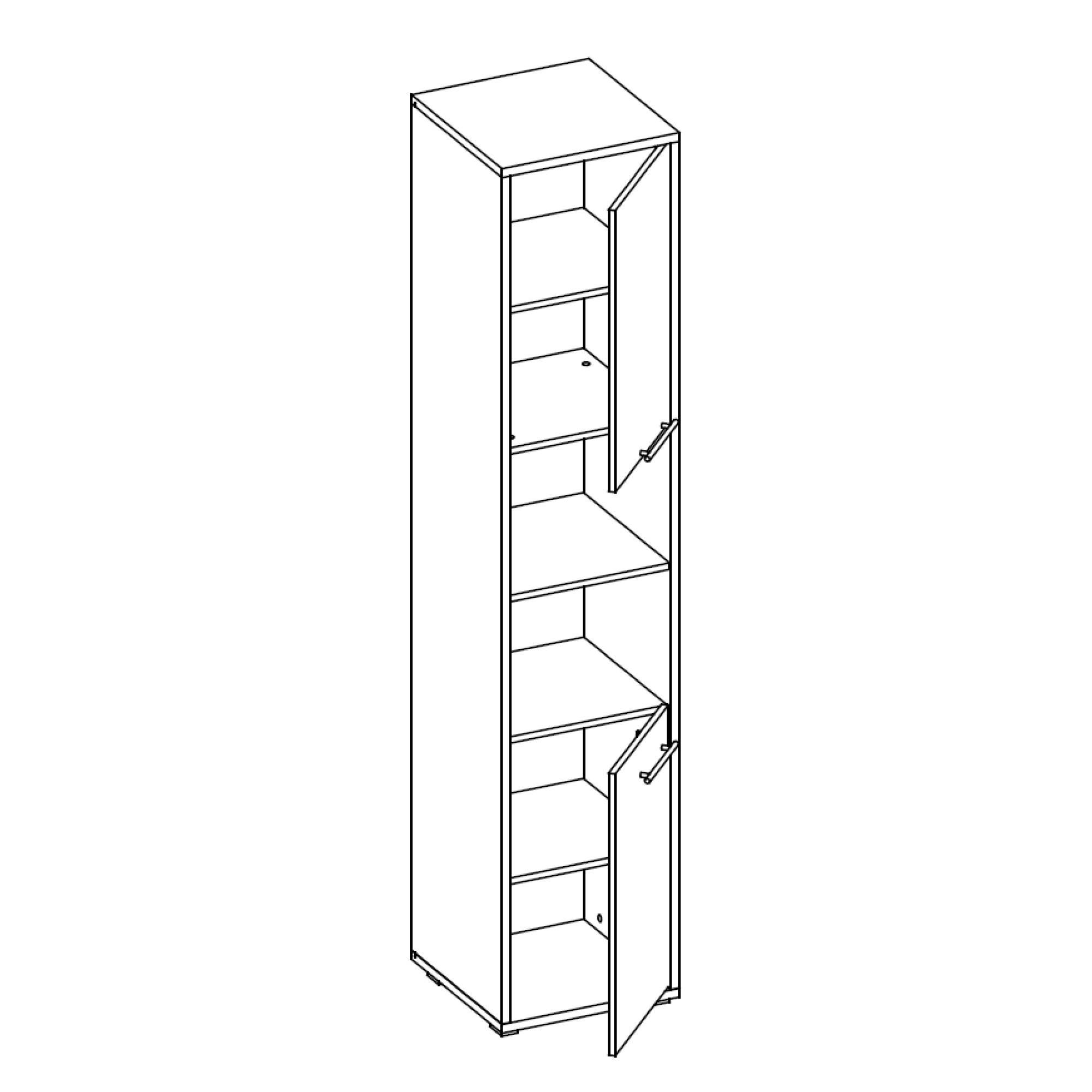 Tato moderní šatní skříň z programu CONCEPT PRO je vyrobená ze snadno udržovatelného laminovaného materiálu s ABS hranami. Dvířka jsou vybavená decentním kovovým úchytem. Za dvířky, v horní i dolní části, najdete uvnitř vloženou polici a zároveň prostřední část skříně tvoří otevřený úložný prostor také v podobě jedné police. Program CONCEPT PRO je ideální do garsonek, studentských bytů či menších prostorů.