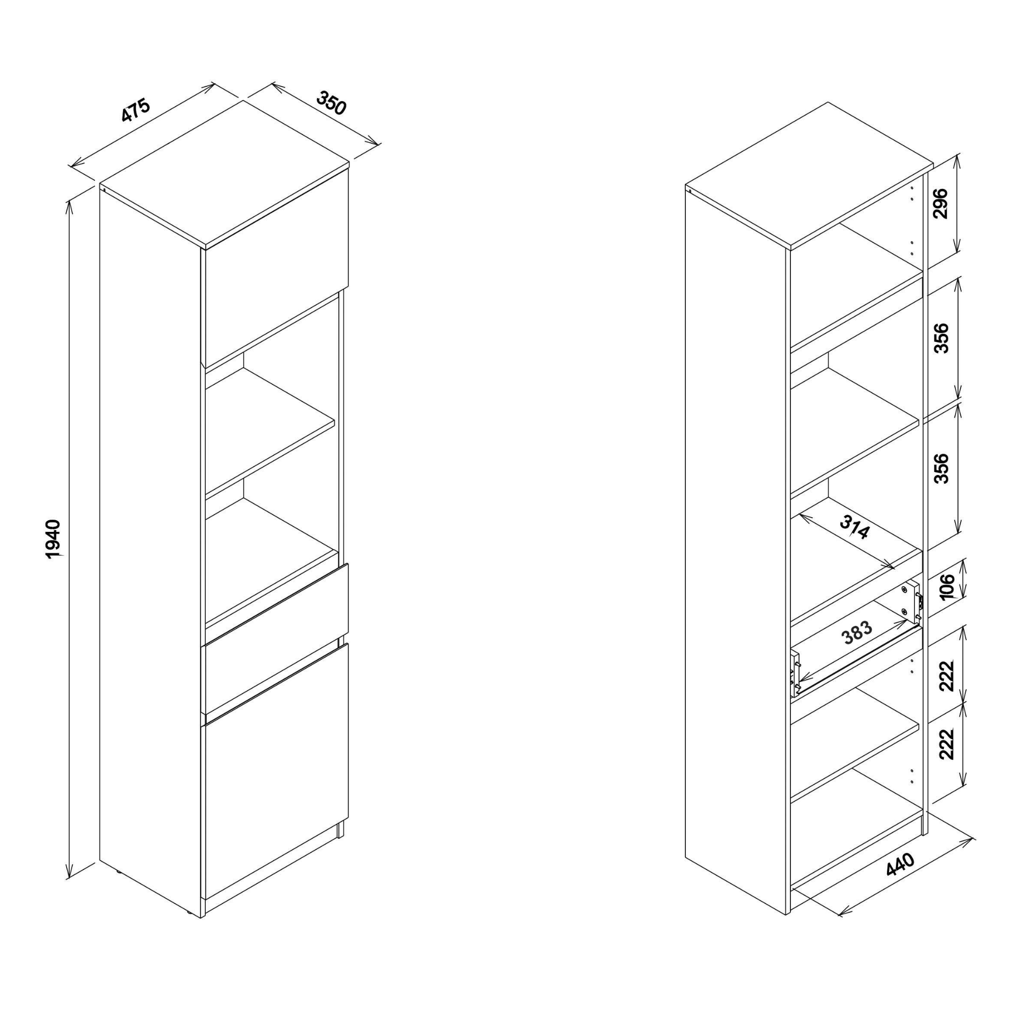 - 2 vložené police, 1 zásuvka