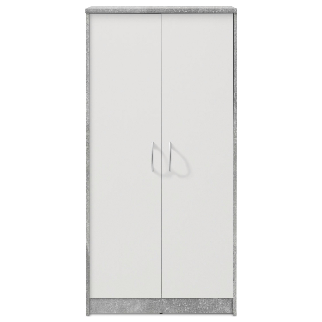 Skříň má 2 otočné dveře, za nimiž se nachází vnitřní vybavení, které je sestaveno z 4 vložených polic. Decentní úchytky usnadňují otevírání otočných dveří. Skříň je vyrobena z laminovaného dřevěného materiálu, který je odolný a nenáročný na údržbu.