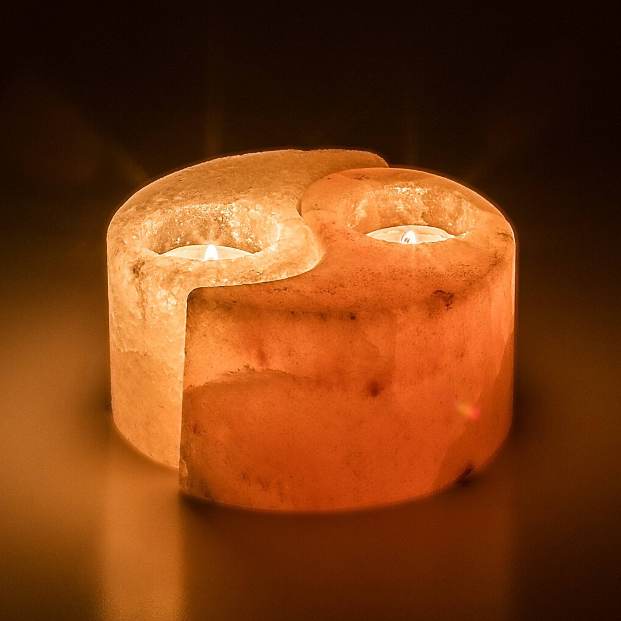 Je vyrobena ze solného kamene, který při zahřívání přispívá ke zlepšení kvality vzduchu v místnosti a pomáhá snižovat stres. Lampa je určena pro 2 čajové svíčky. Je vyvedena ve tvaru symbolu jin-jang, který je rozdělen na dvě části. Lze ji tedy rozdělit a použít samostatně v různých místnostech.