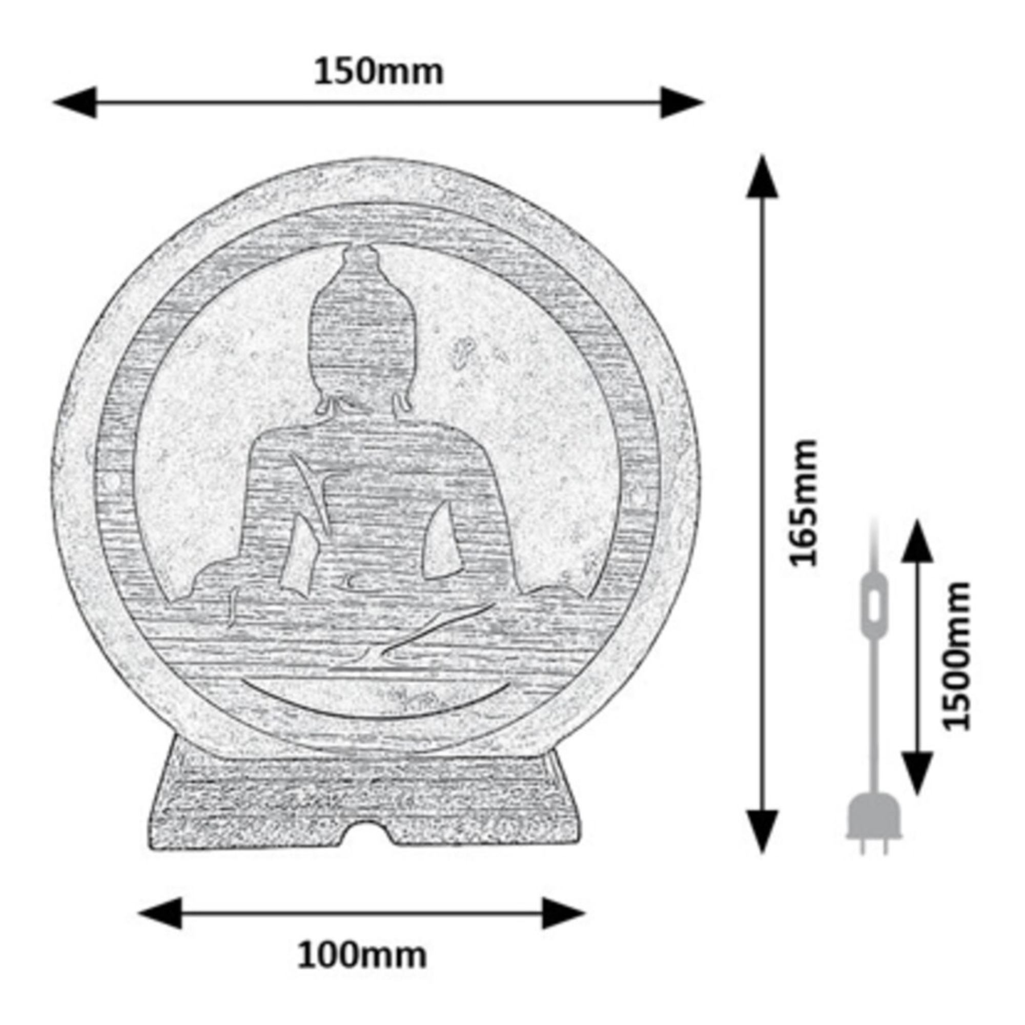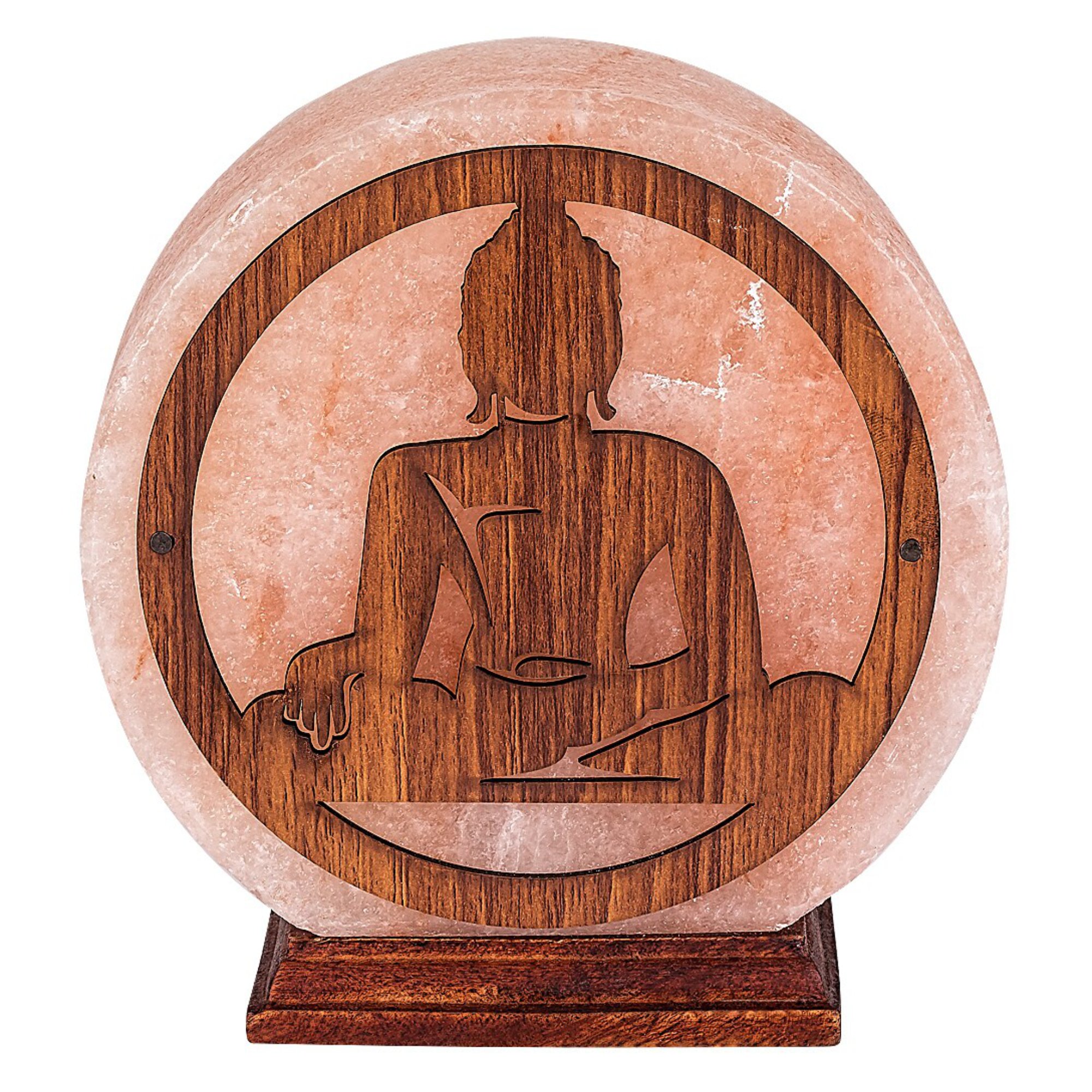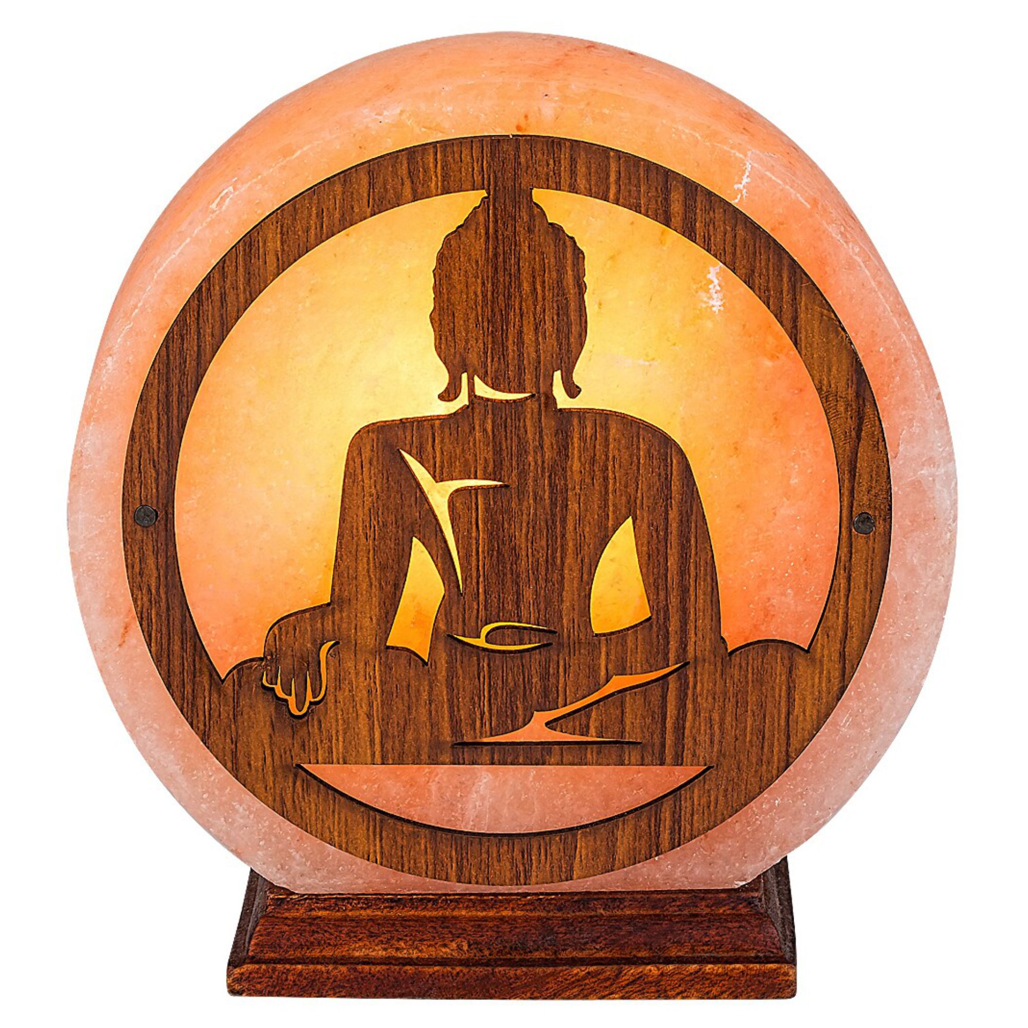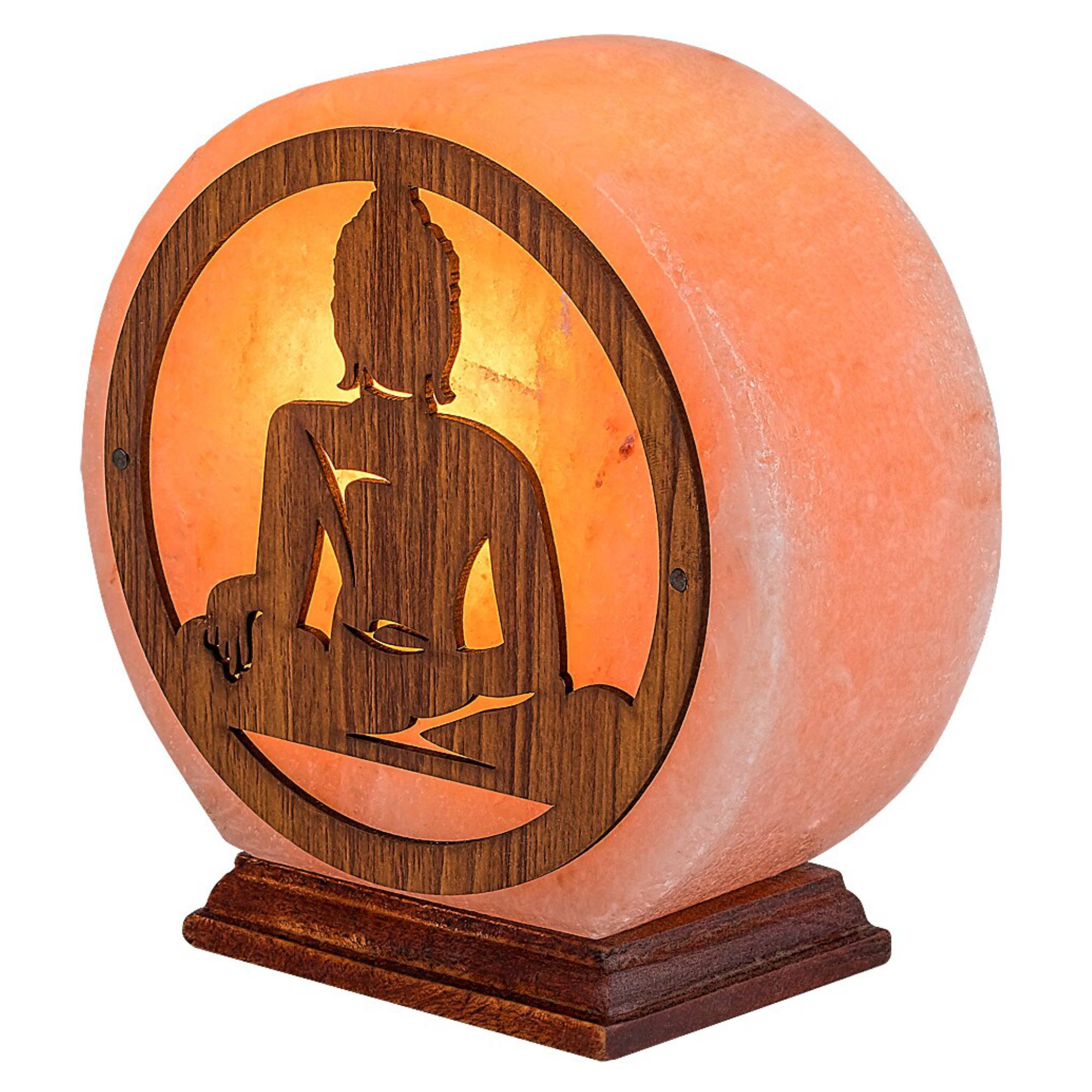 Stínidlo lampy je vyrobeno ze solného kamene a ozdobeno výřezem ve tvaru Buddhy z dřevěného materiálu. Dřevěný podstavec dodává stabilitu a dotváří celkový přírodní vzhled. Je vybavena vypínačem na kabelu o délce 150 cm.