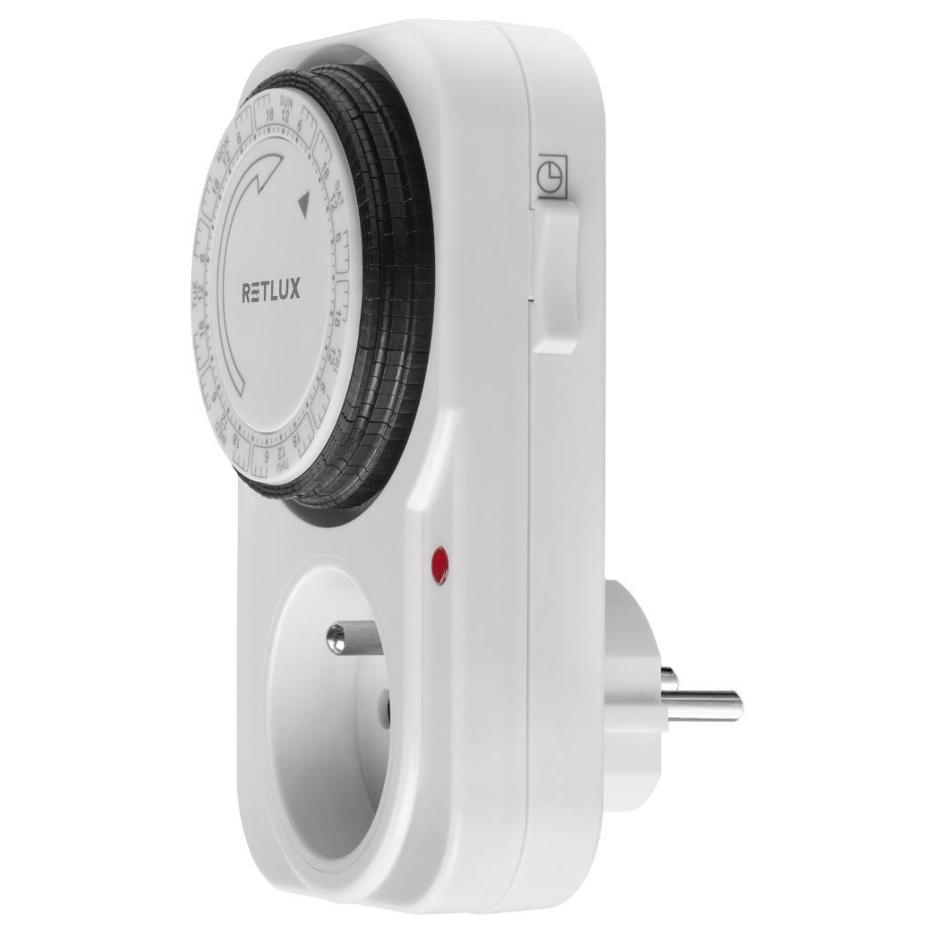 Spínací zásuvka mechanická RST11MW - bílá, týdenní