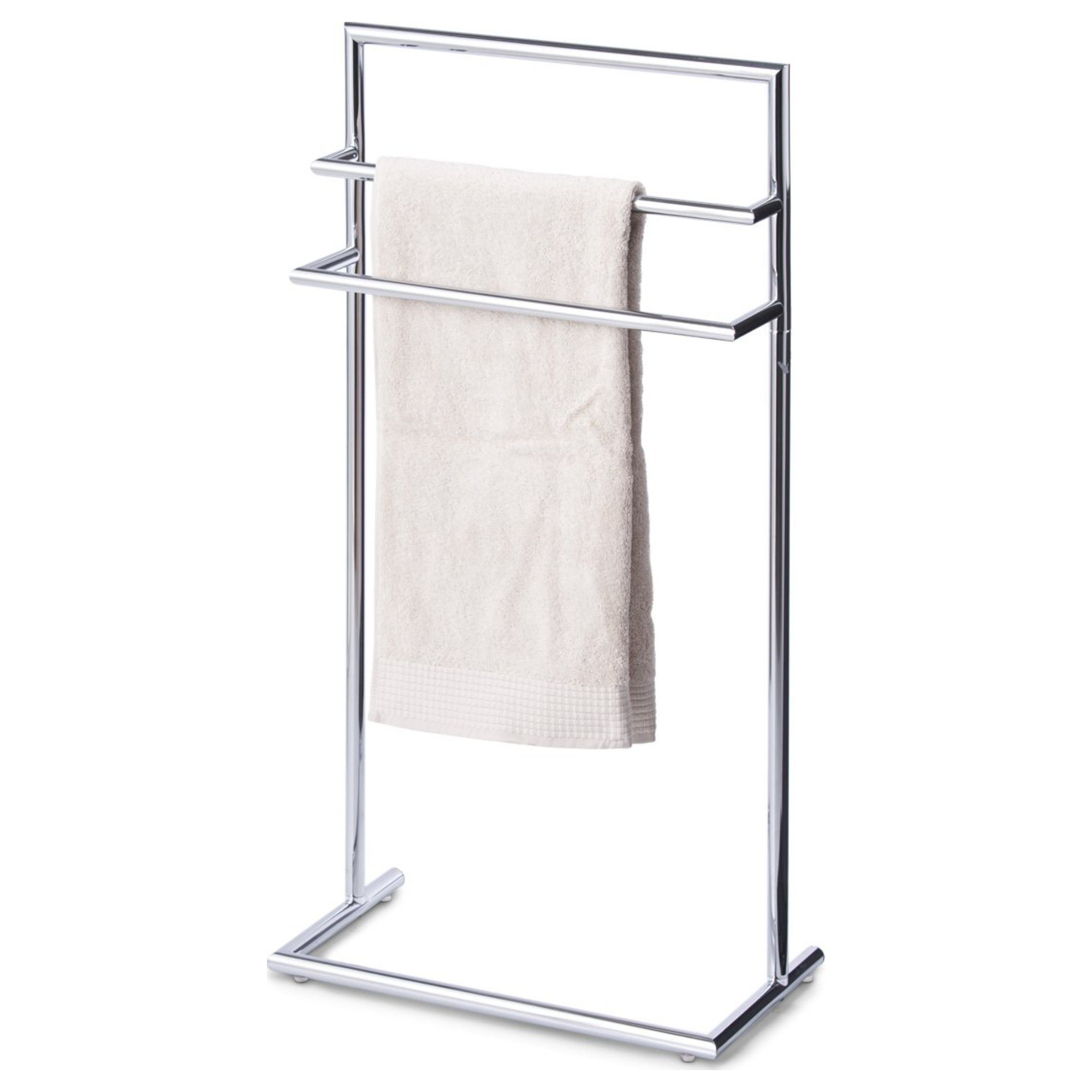 Čistá a organizovaná koupelna? S trojramenným stojanem na ručníky CHROMO získáte stylového, nenápadného společníka, který navíc bez nutnosti vrtání poskytne místo pro vaše ručníky. Ty na stojanu krásně proschnou a budou opět suché a voňavé. Kovová, pochromovaná konstrukce působí elegantně a je odolná vůči vlhkosti, což je pro koupelnu ideální. Pozvěte k vám domů decentní, minimalistický design, který je jako stvořený pro moderně zařízené koupelny.