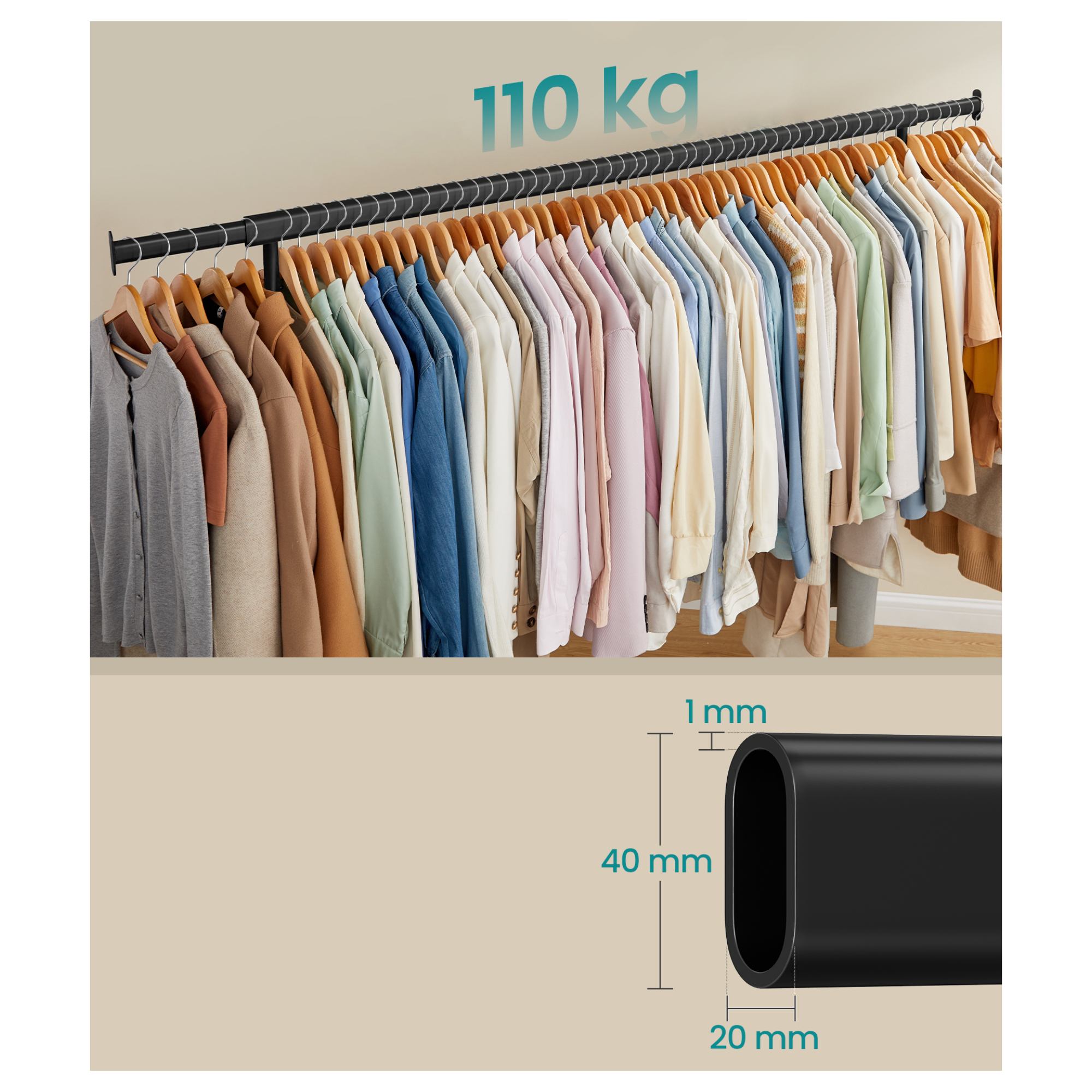 - Nastavitelná šířka šatní tyče