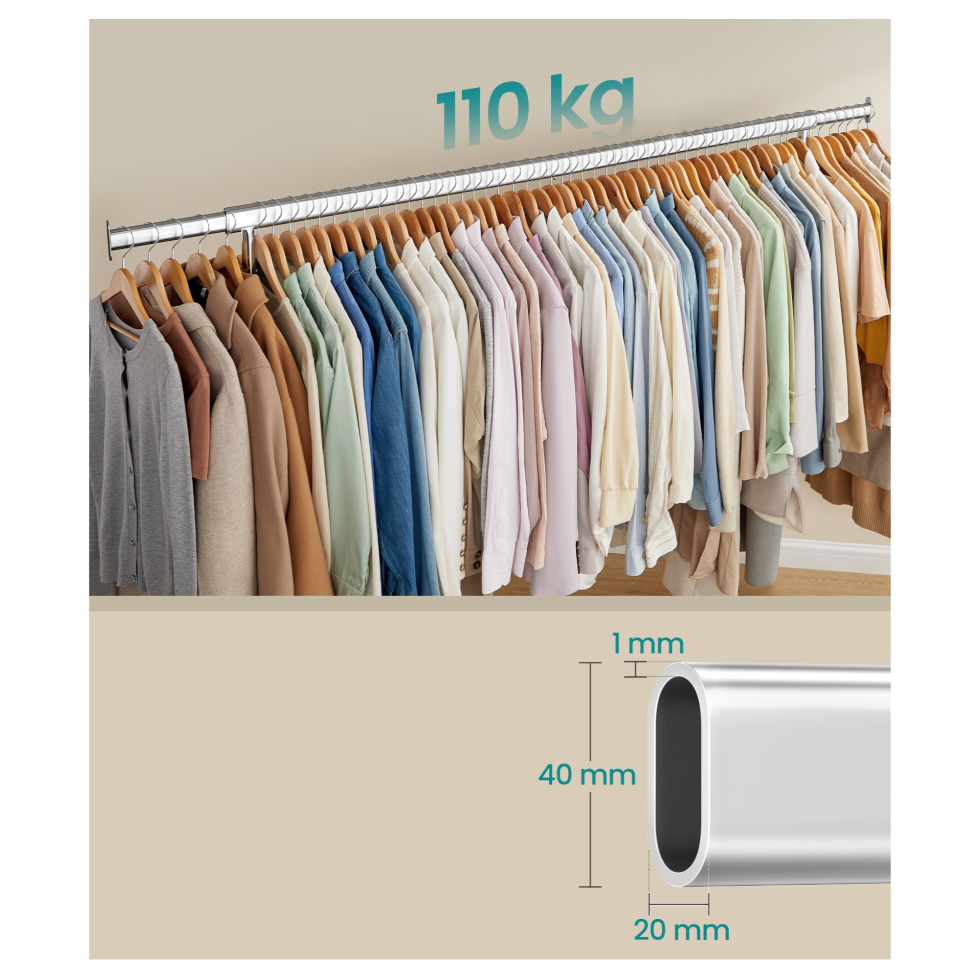 - Nastavitelná šířka šatní tyče