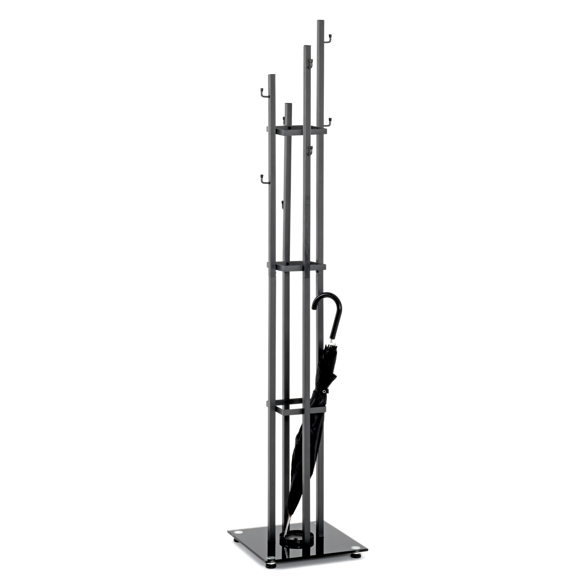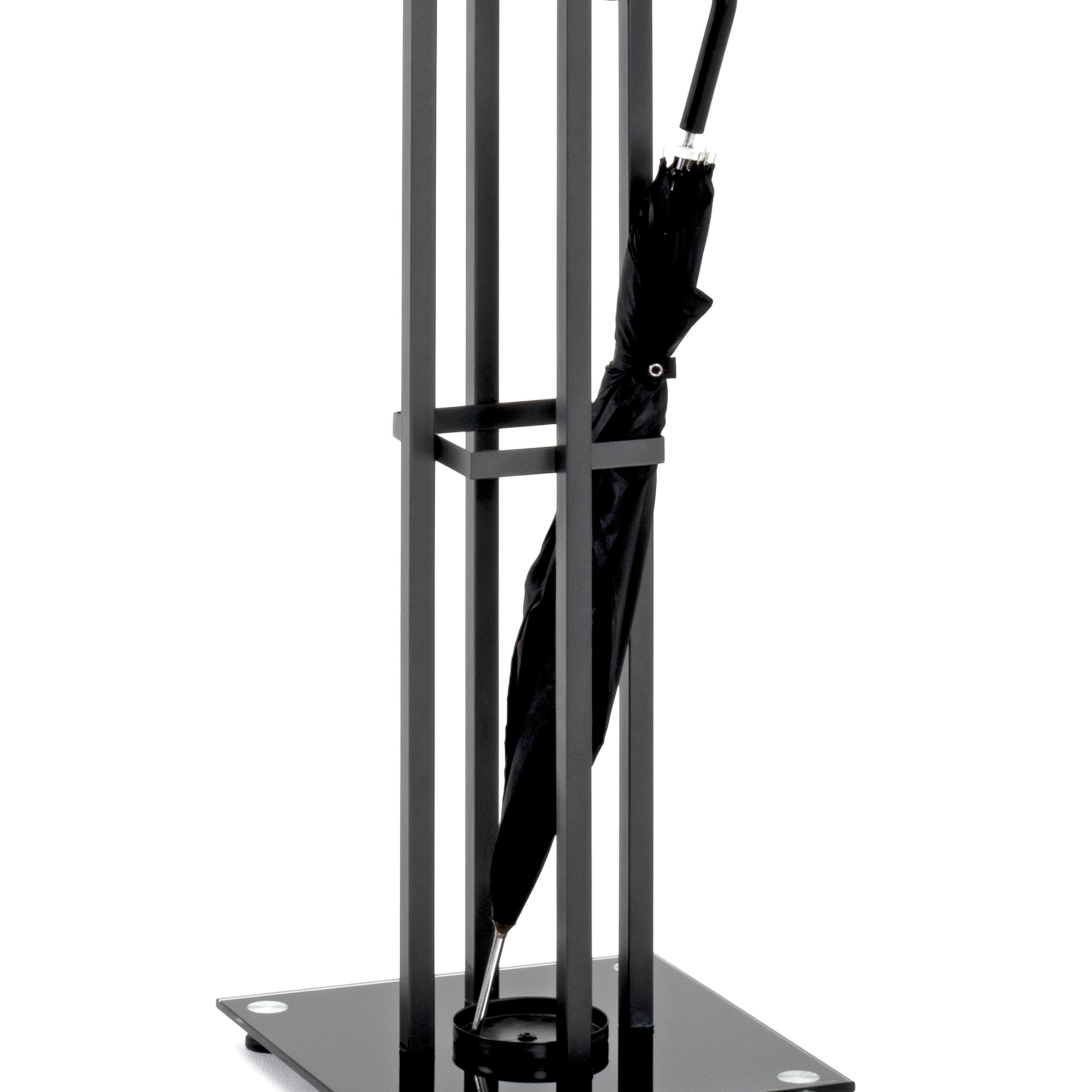 Vyjímat se bude ve větší předsíni či na chodbě, ale v případě potřeby ho snadno přesunete na jakékoli místo. Lehká kovová konstrukce zajistí stabilitu. Stojan nabízí také prostor pro odložení deštníků. Vyjmutelná odkapávací nádoba na podnoži z tvrzeného skla uchrání vaši podlahu od vlhkosti a mokrých skvrn.