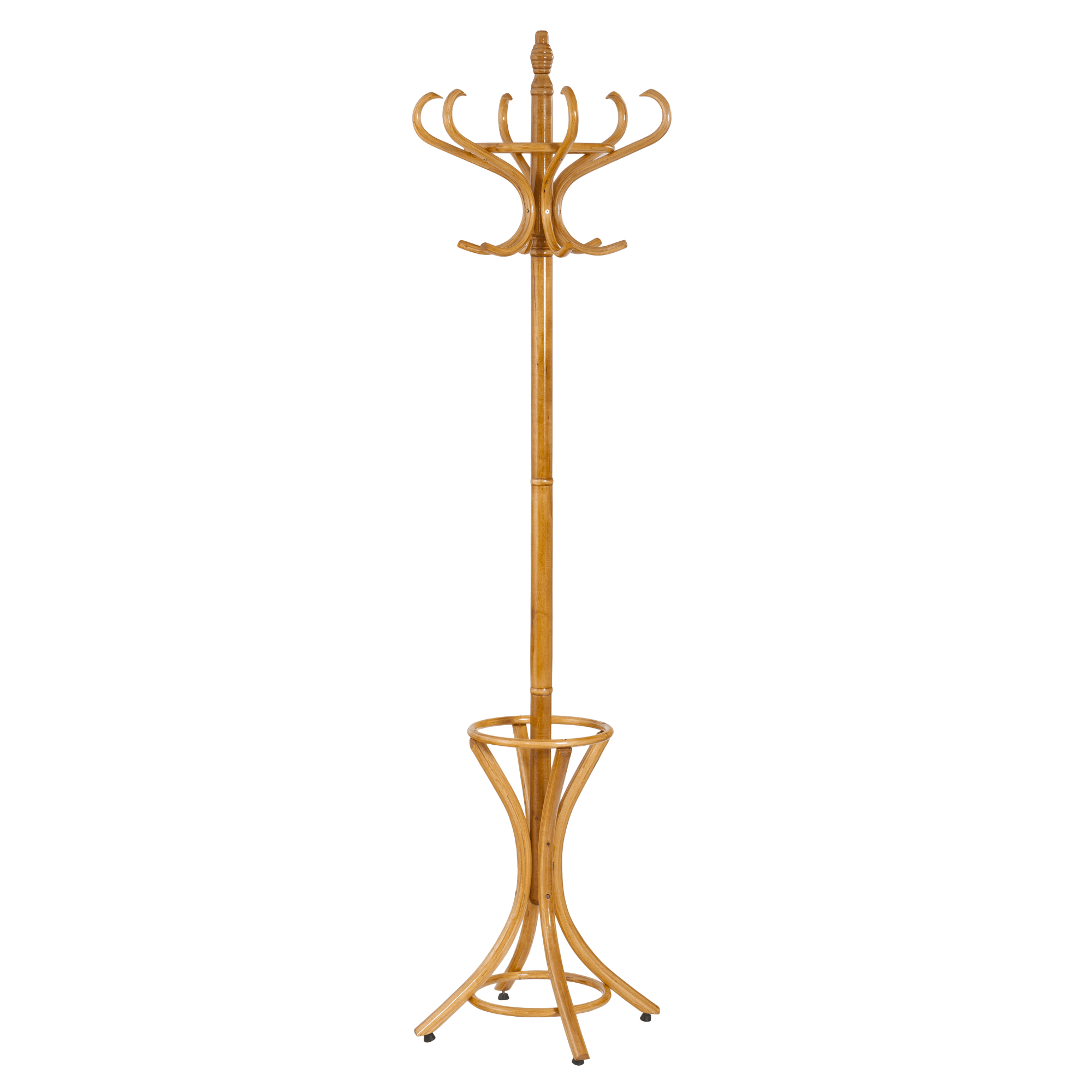 Konstrukce je vyrobena z lakovaného masivního dřeva v kombinaci s kovem. Disponuje závěsnými háčky ve 2 výškových úrovních, které nabízí dostatek odkládacího místa pro vaše svršky a doplňky. Ve spodní části je prostor přizpůsoben pro pohodlné odložení deštníků. Pevná základna zajišťuje stabilitu proti možnému převrácení.