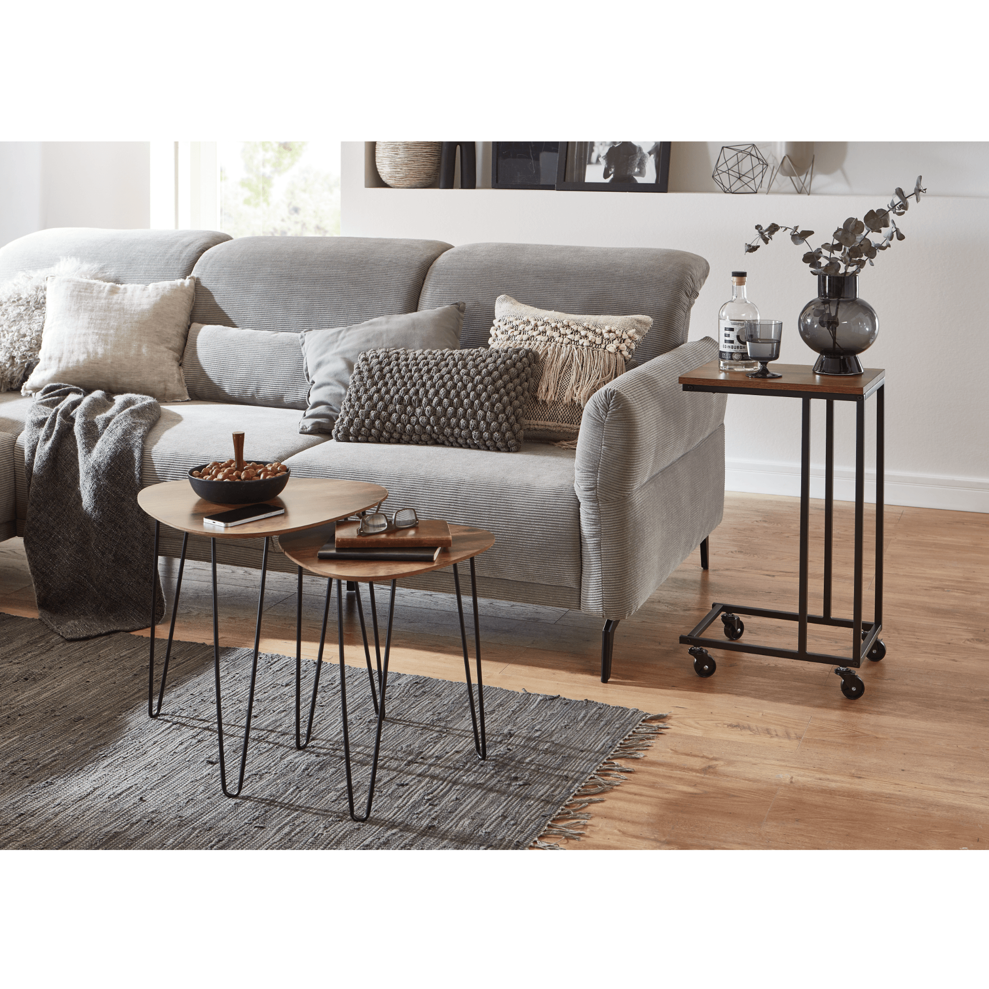 Přístavný stolek VERONA se bude vyjímat v industriálně laděném interiéru.