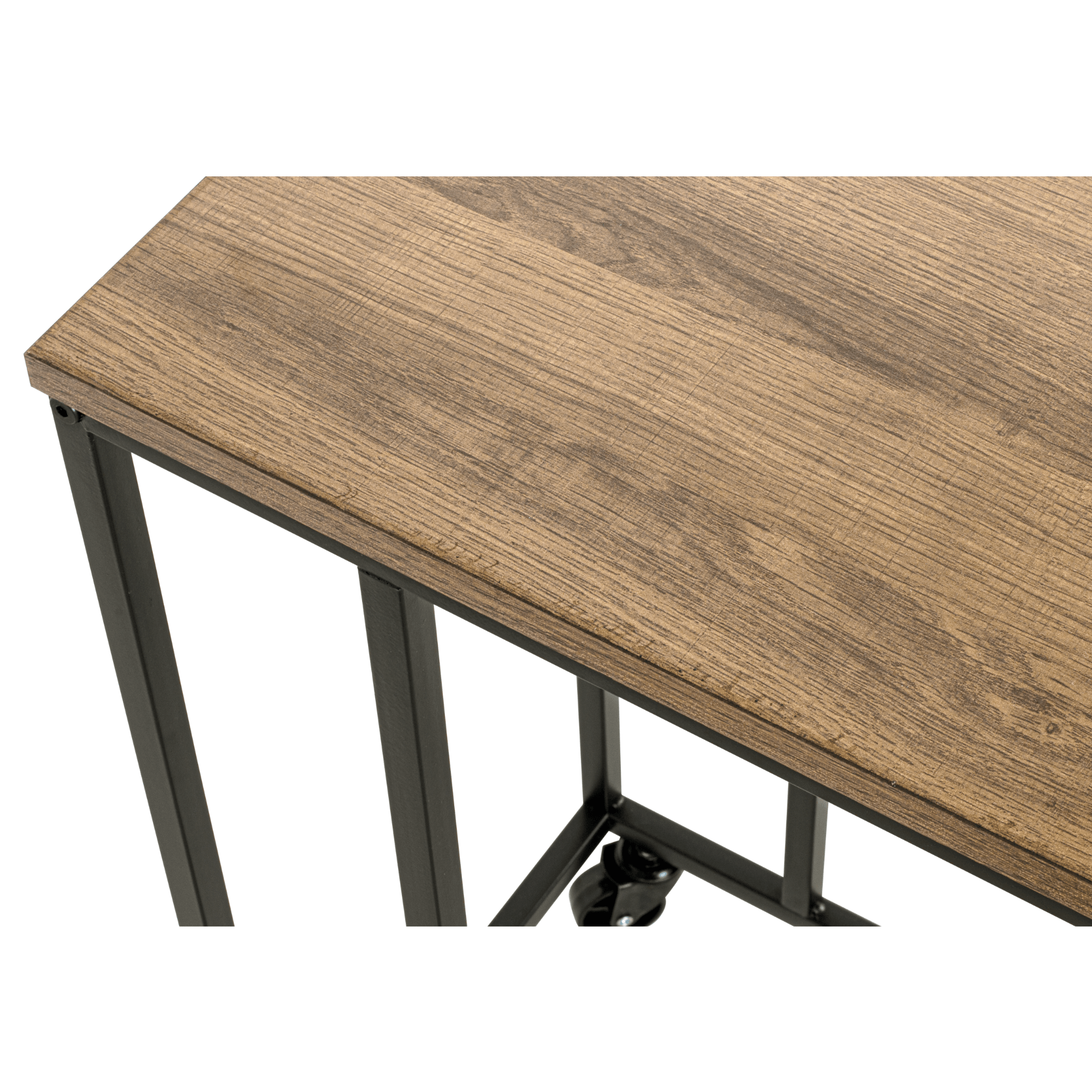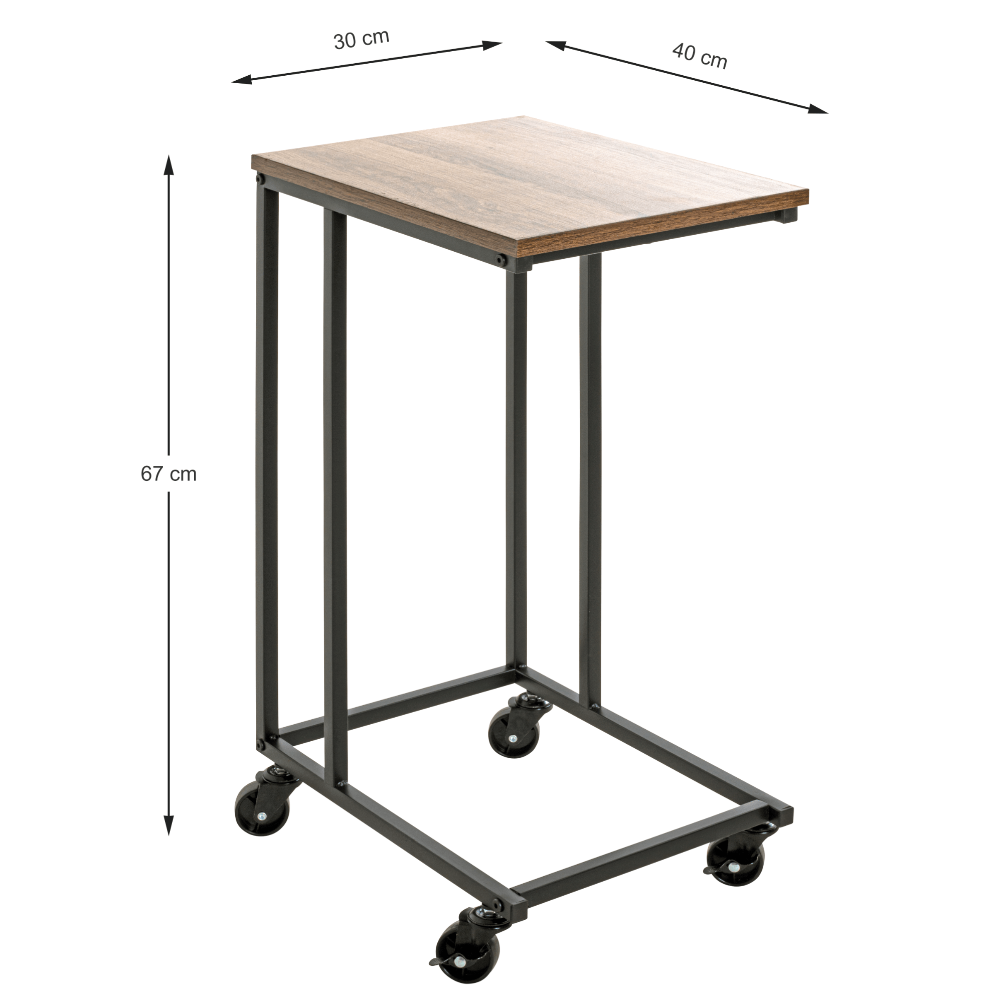 Odkládací deska je vyrobena z dřevovláknitého materiálu MDF, pro který je typická snadná udržovatelnost i dlouhá životnost. Laděna je pak do dekoru dubu Bologna v přírodním odstínu a výraznou kresbou dřeva. Stabilitu zajišťuje kovová konstrukce v černé barvě. Konstrukce je navíc vybavena praktickými kolečky, která usnadňují manipulaci.