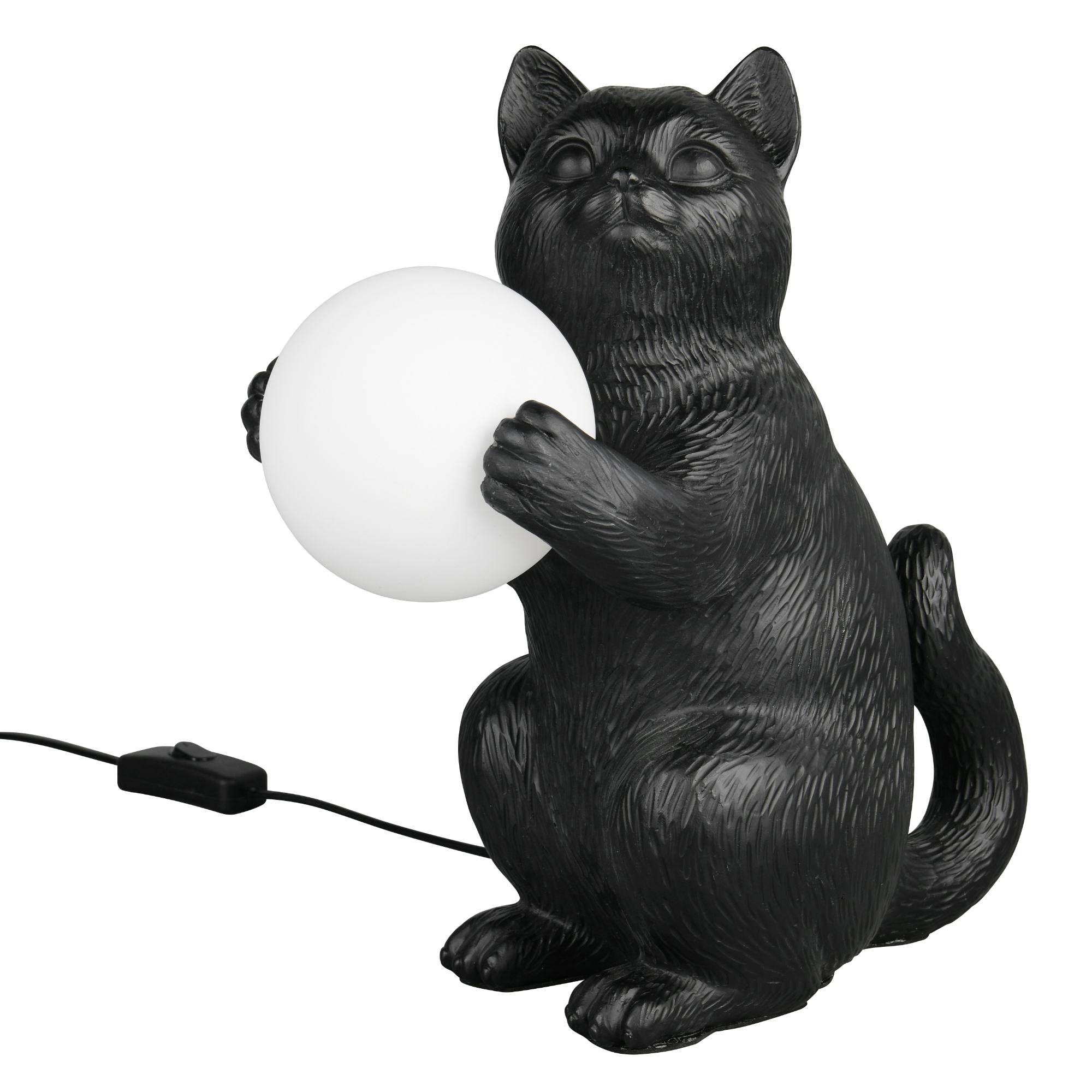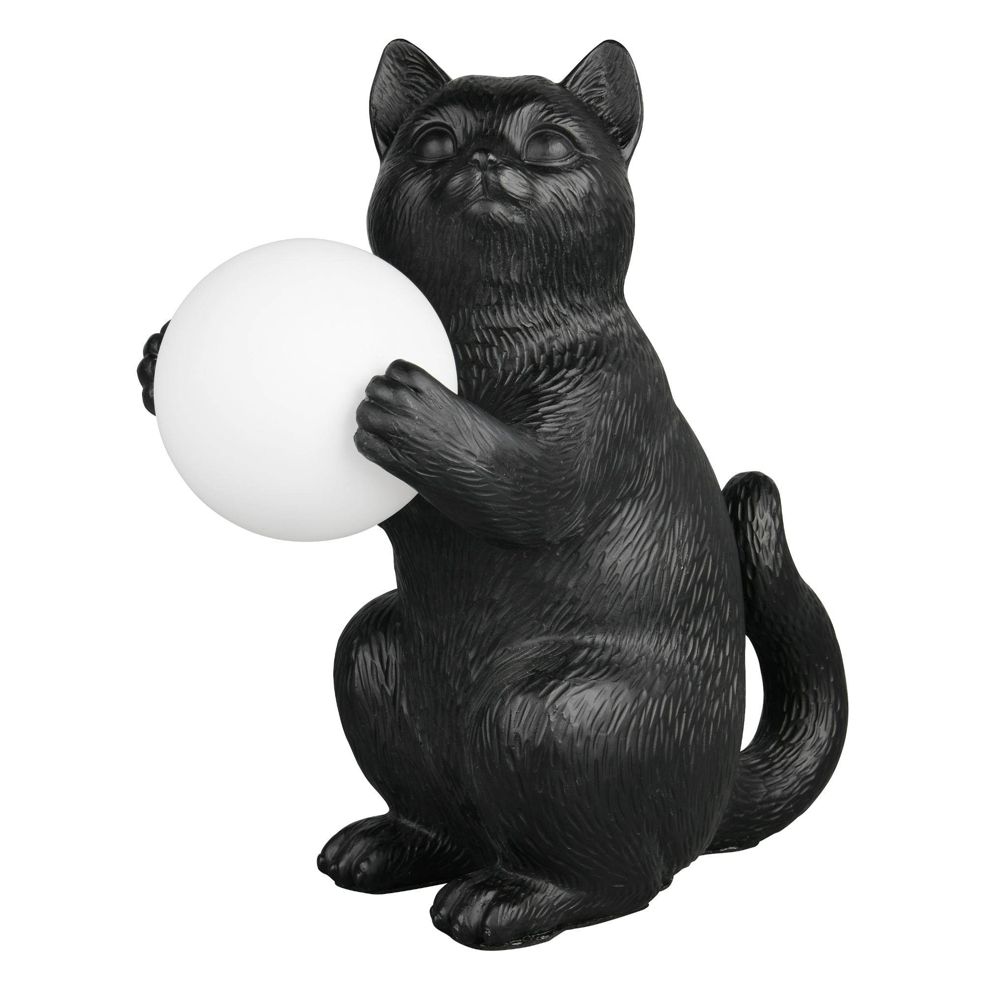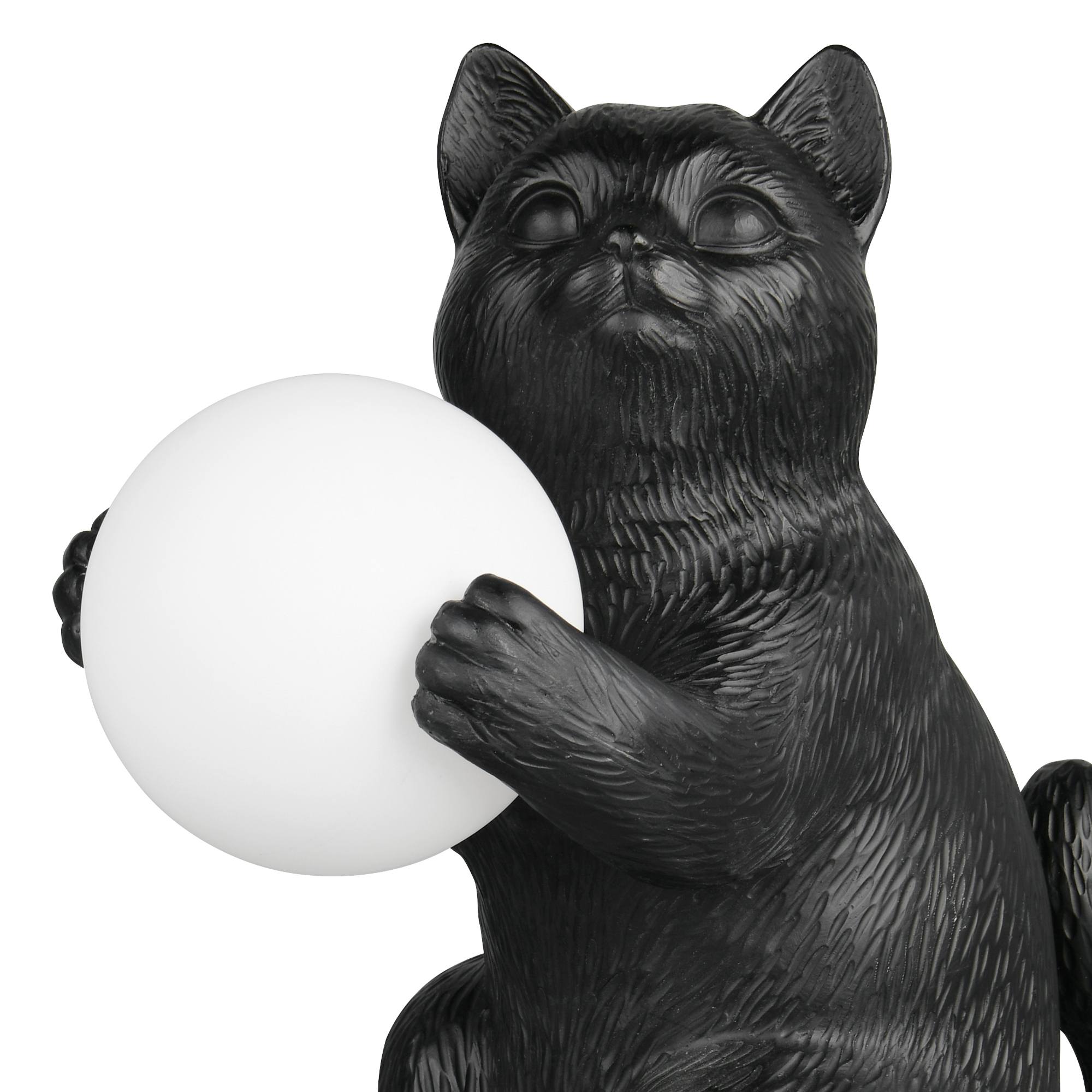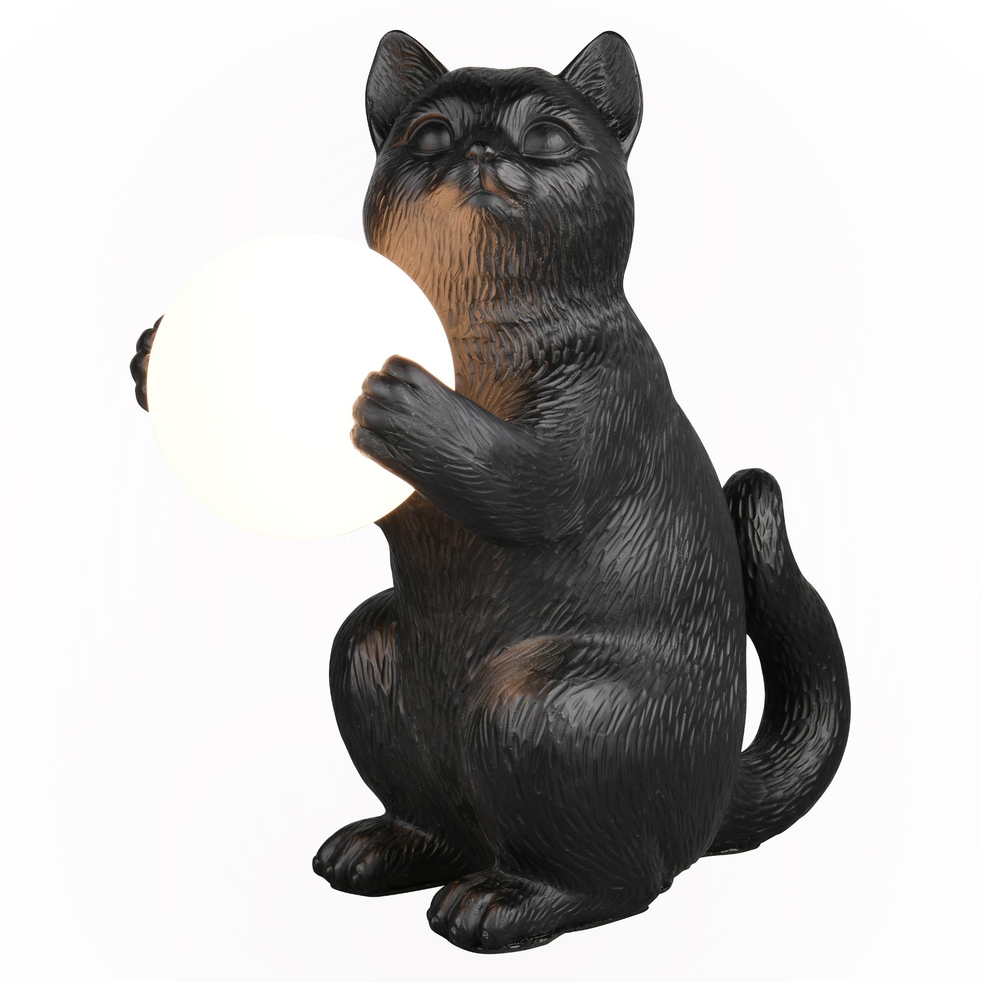 Svítidlo je vyrobeno z polyresinu ve tvaru kočky, která v tlapkách drží kulaté stínidlo z opálového bílého skla. To rovnoměrně rozptýlí světlo po místnosti a vytvoří útulné osvětlení. Tento roztomilý a zároveň praktický doplněk bude zajímavým designovým prvkem do ložnice či obývacího pokoje.