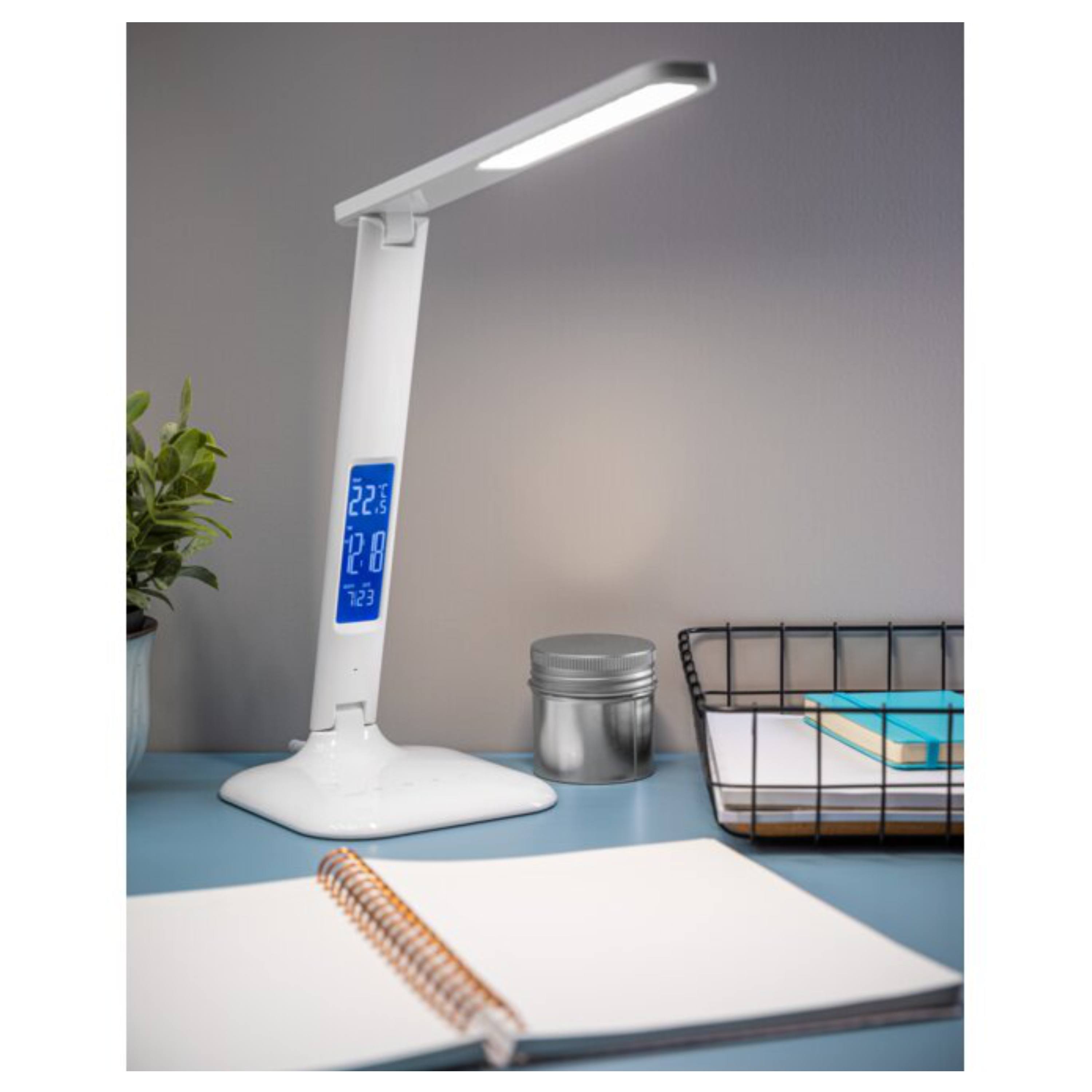Lampa disponuje LCD displejem se zobrazením času, data a teploty. Nabízí také možnost nastavení budíku s výběrem z 8 různých vyzváněcích tónů. Lampa má 2 pohyblivé klouby pro snadné přizpůsobení úhlu světla.
